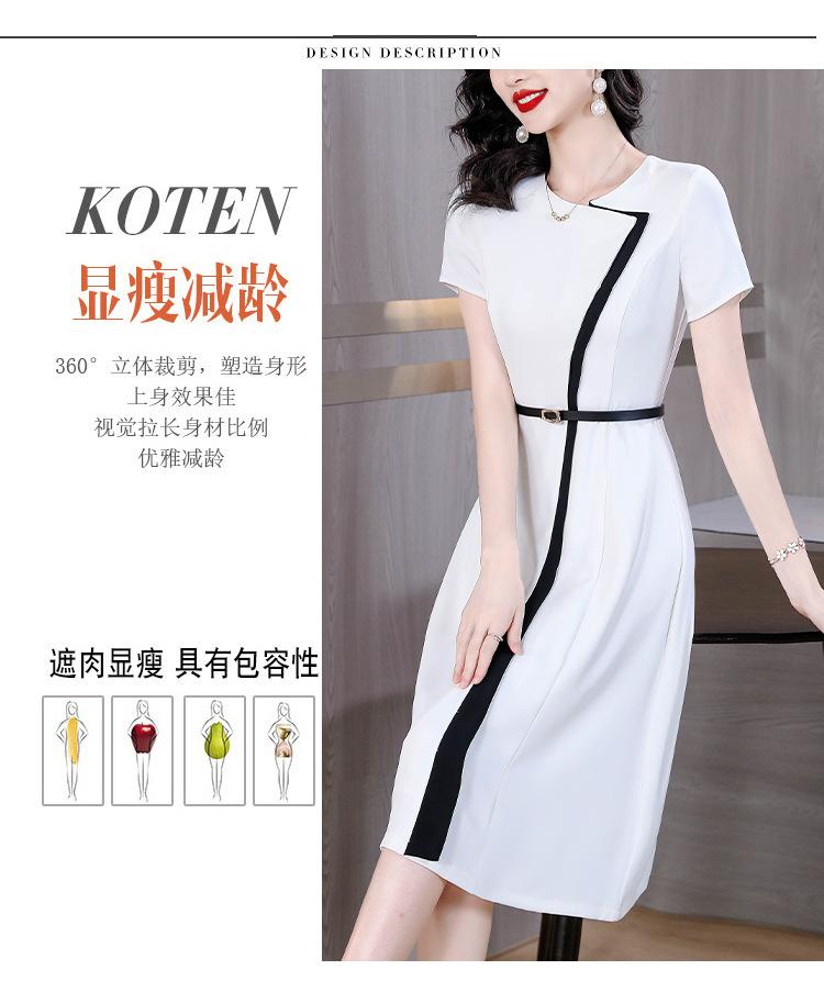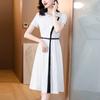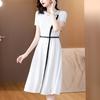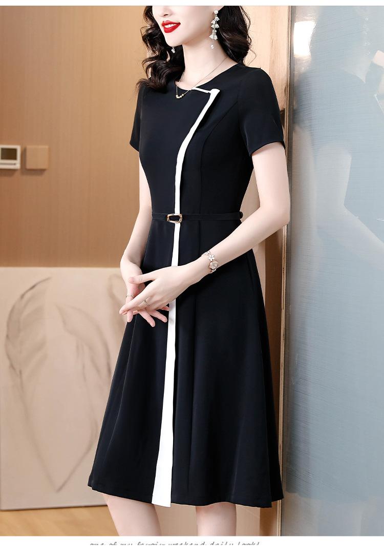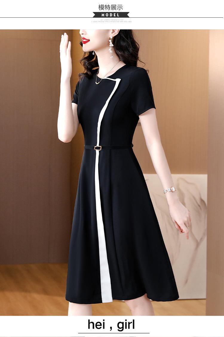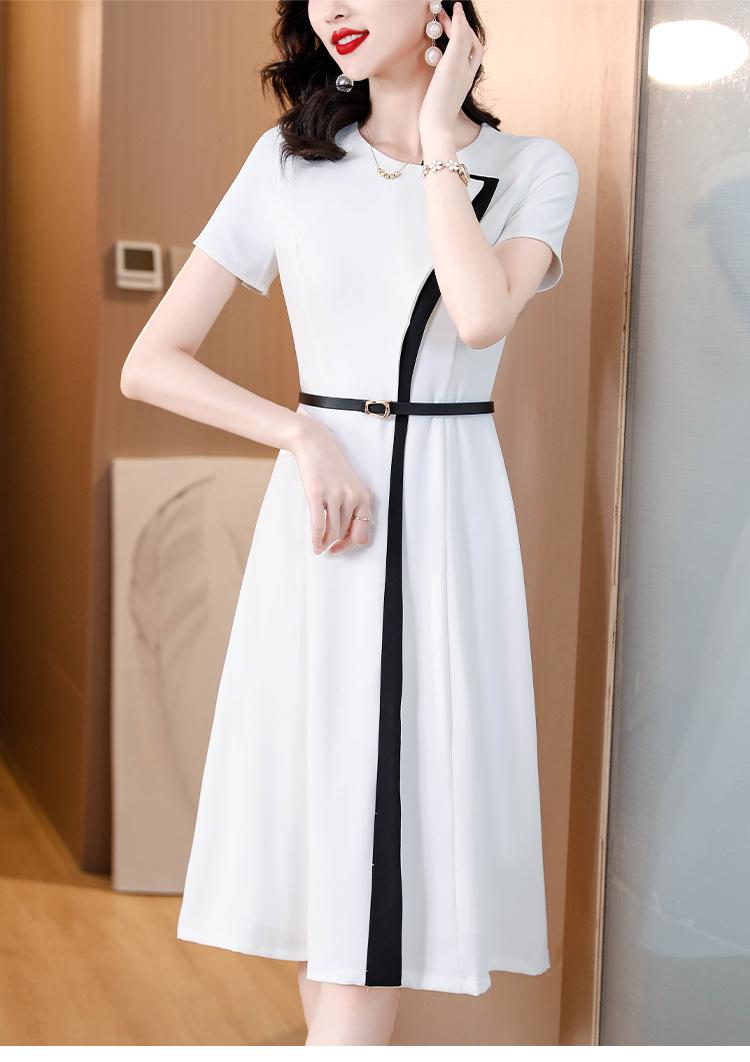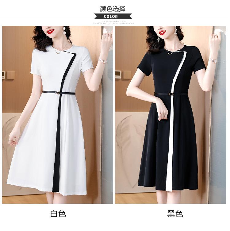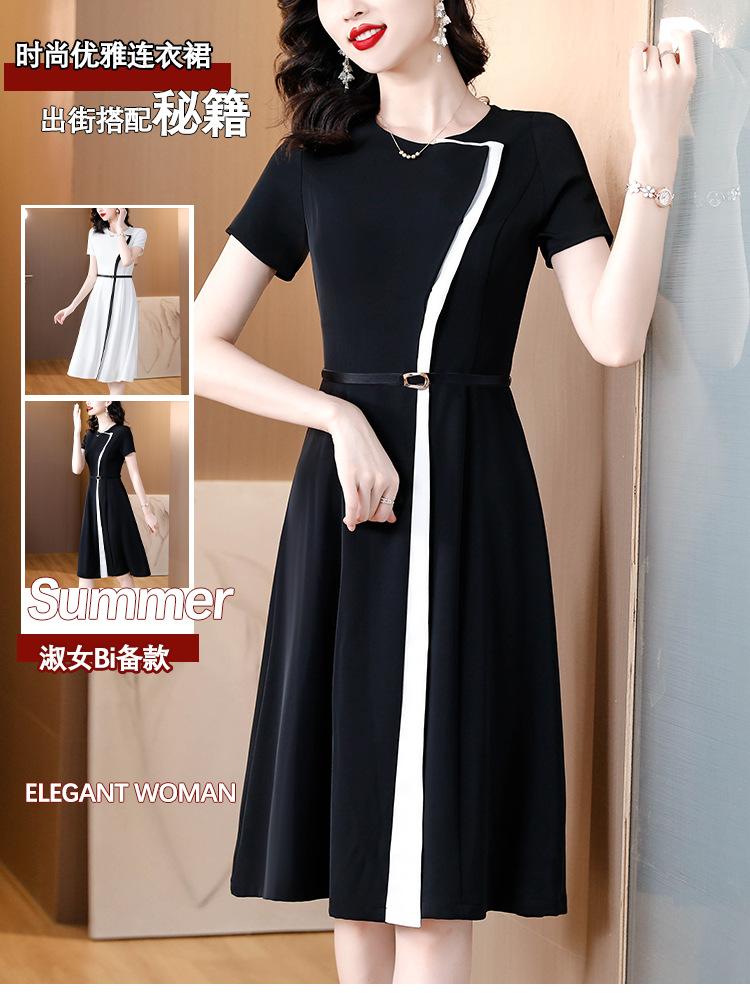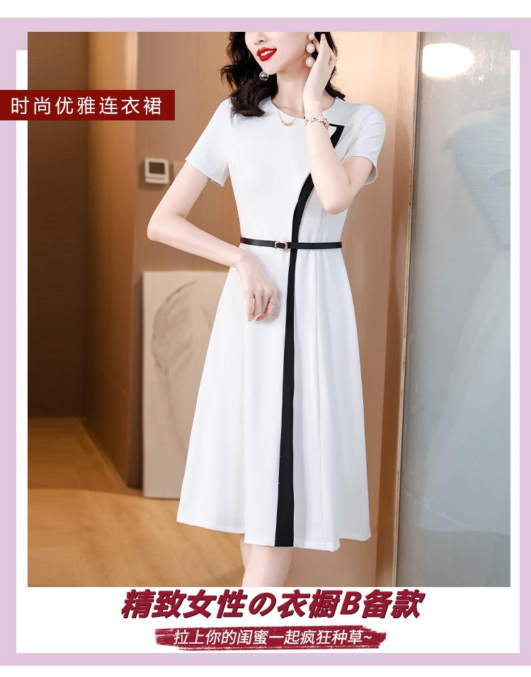 Vestido de Moda para Madres con Bloques de Color para Mujer Verano 2024 Nuevo Elegante Versátil Blanco Manga Corta Falda Larga para Personas Pequeñas