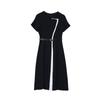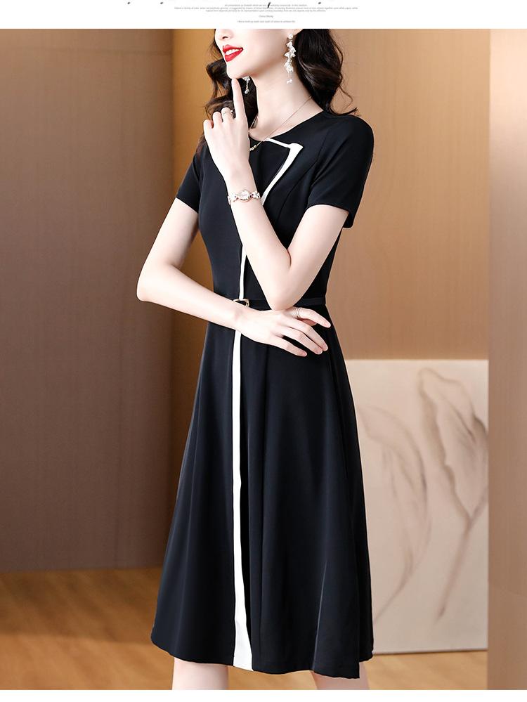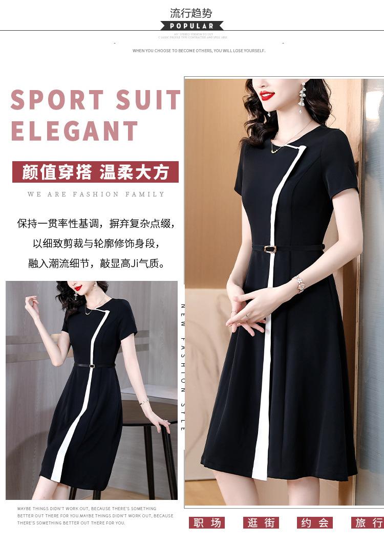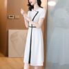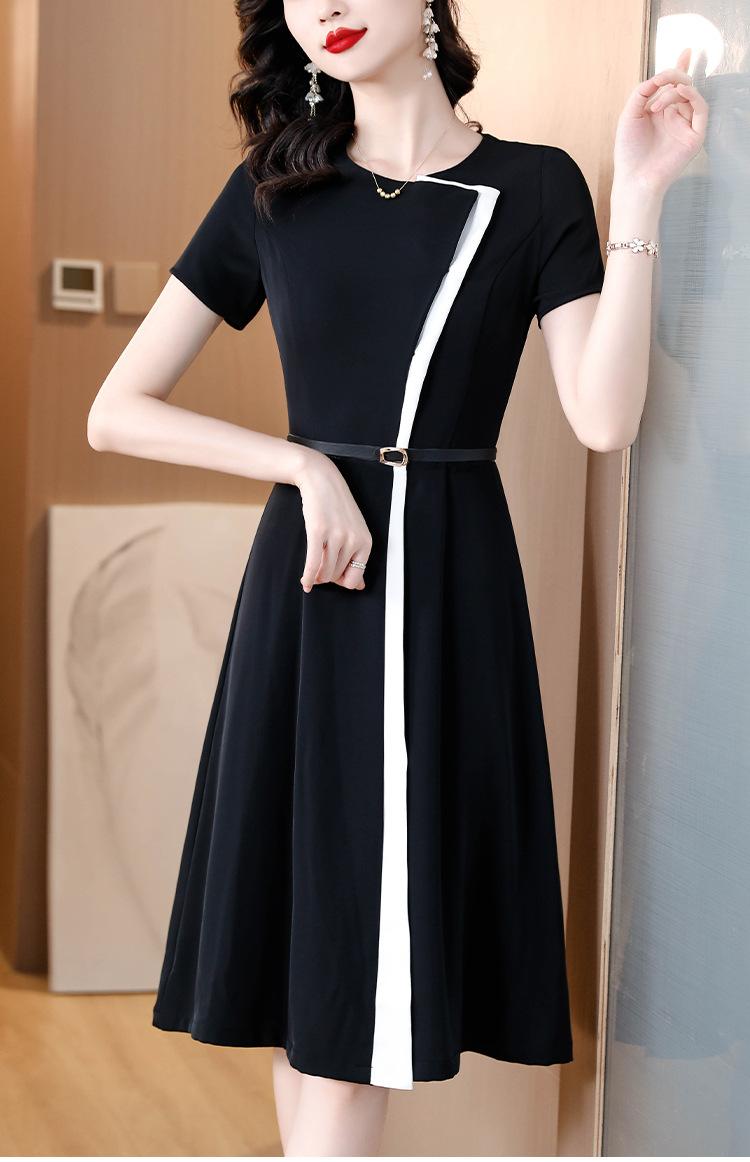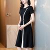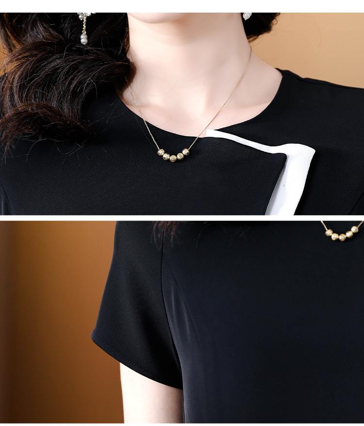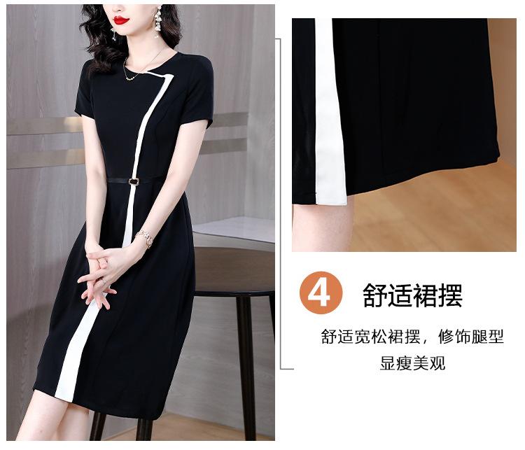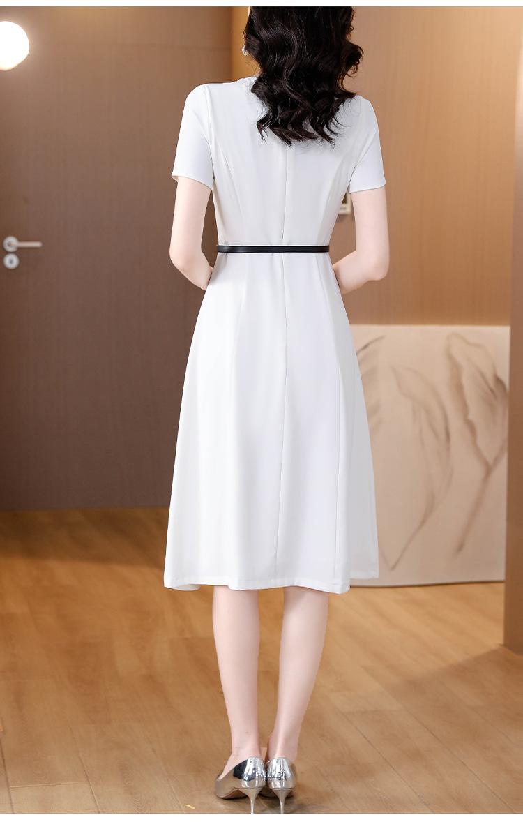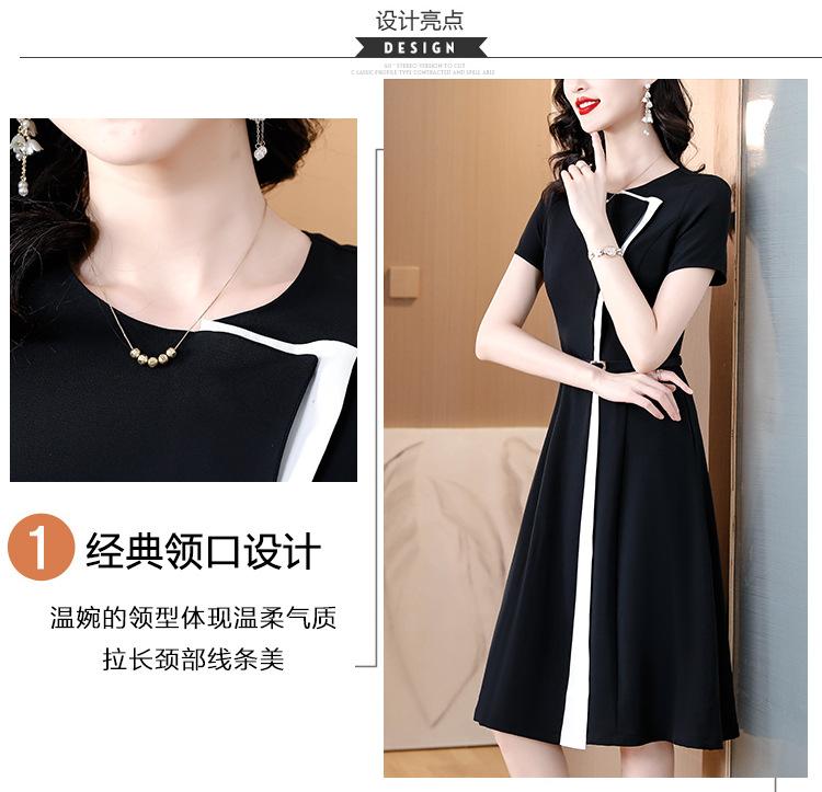 Vestido de Moda para Madres con Bloques de Color para Mujer Verano 2024 Nuevo Elegante Versátil Blanco Manga Corta Falda Larga para Personas Pequeñas