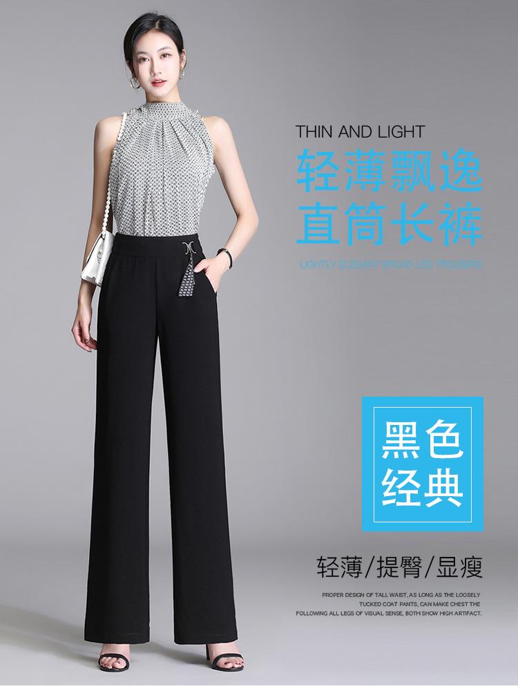 Pantalones anchos de pierna ancha para mujer, pantalón informal, holgado, de cintura alta, adelgazante, para mujer de mediana edad.