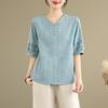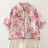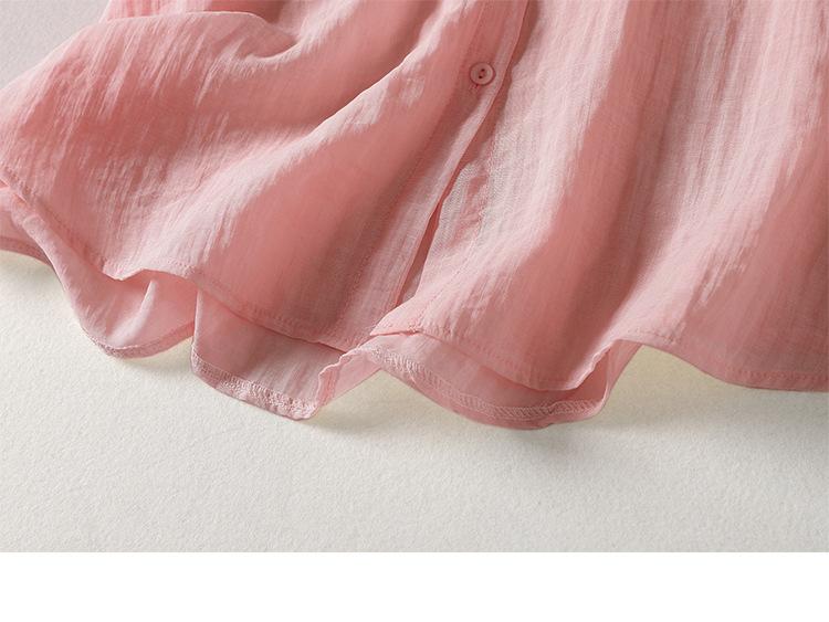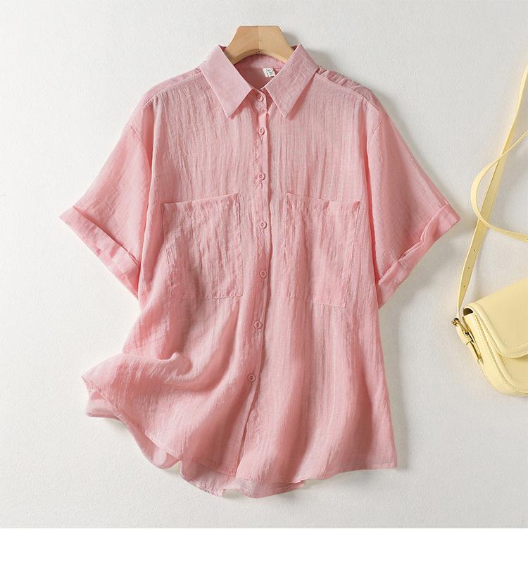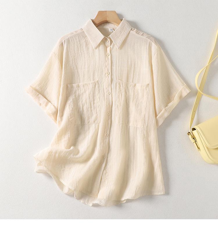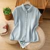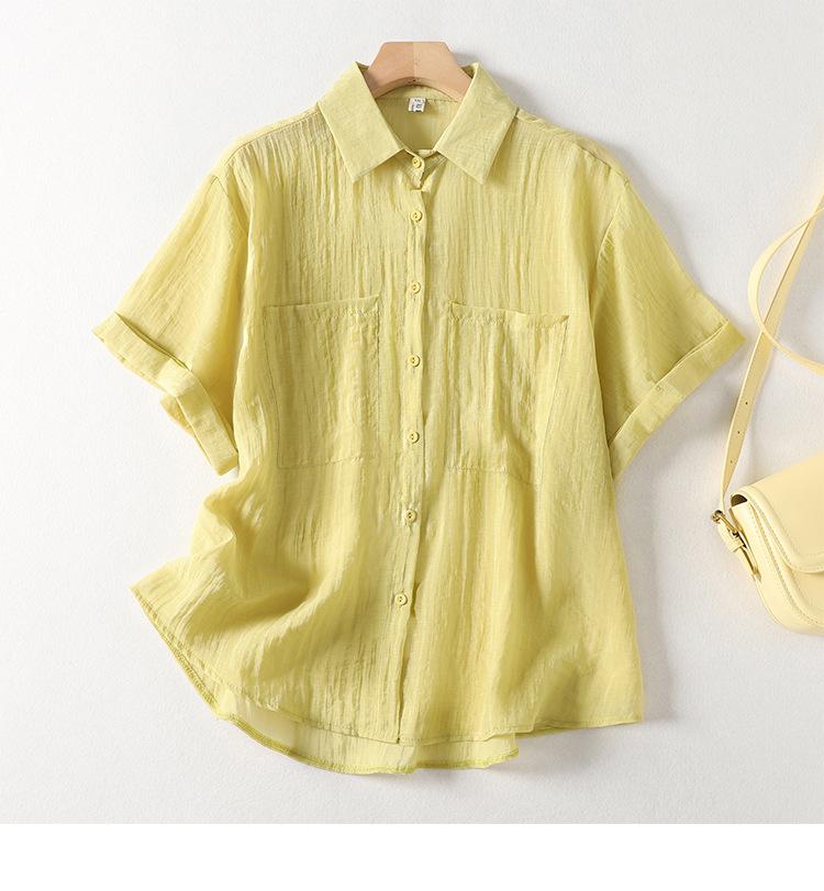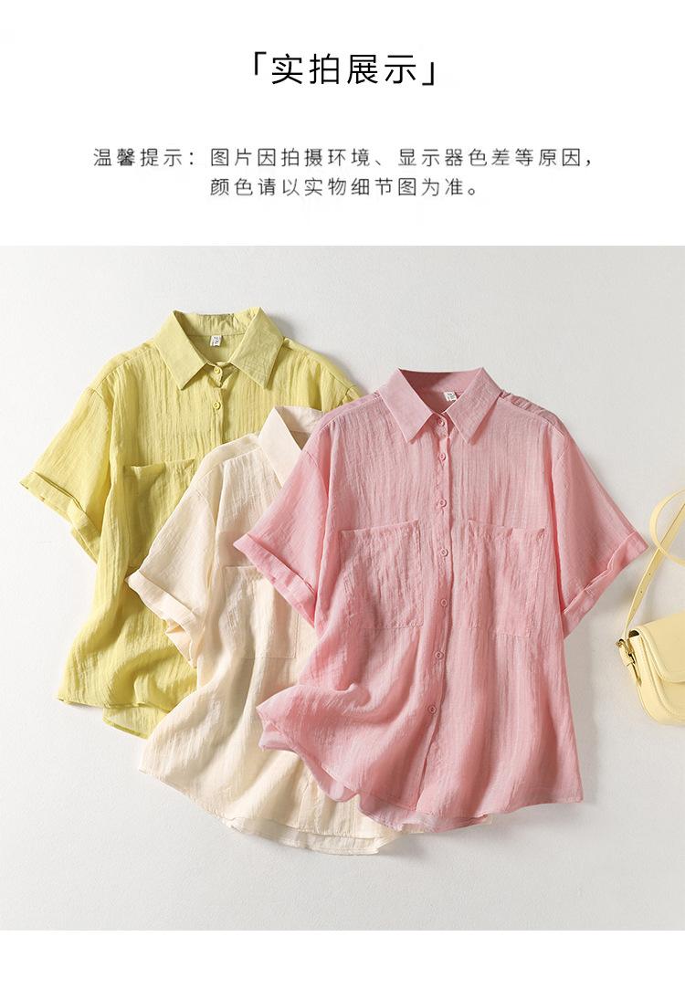 Foto real de 2025 Camisa de verano nueva prefabricada delgada y transpirable de solapa de manga corta enrollada con pliegues suelta casual