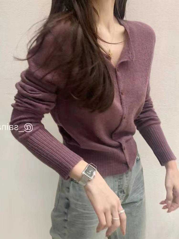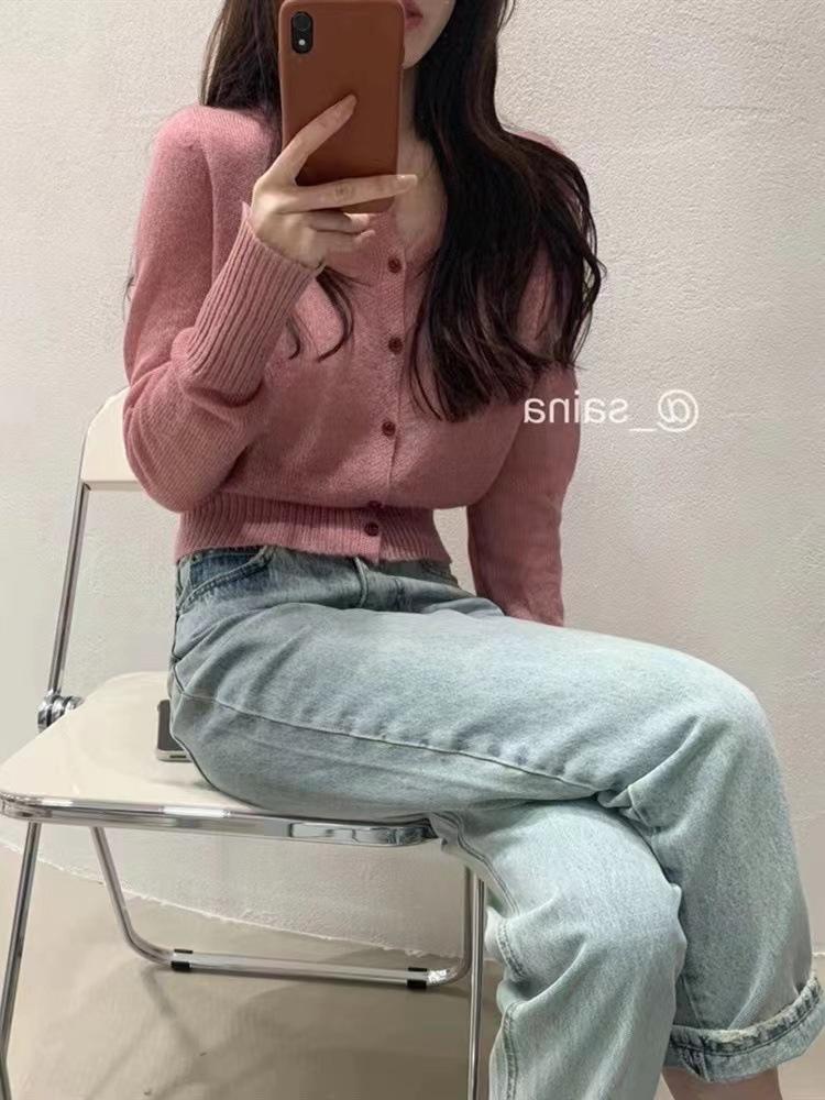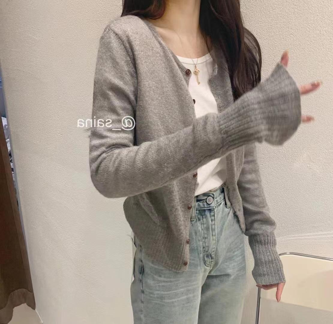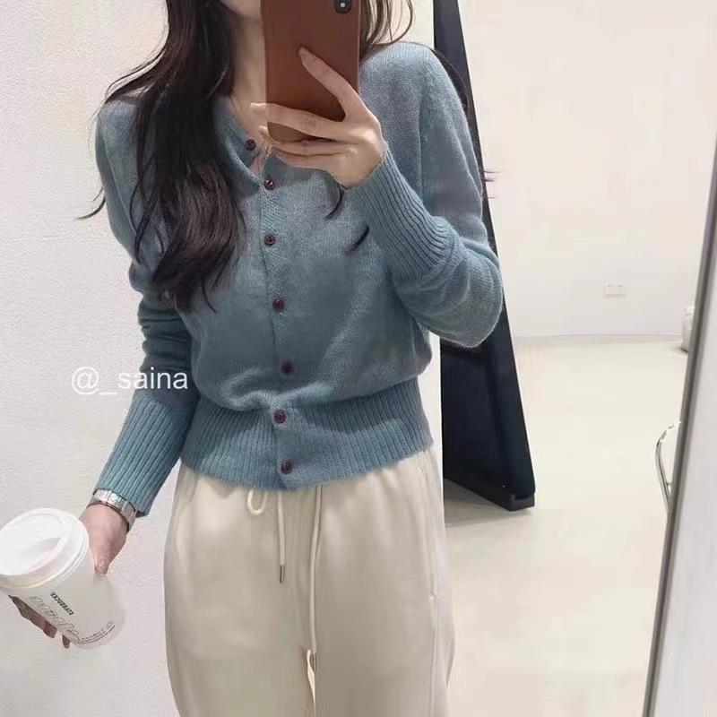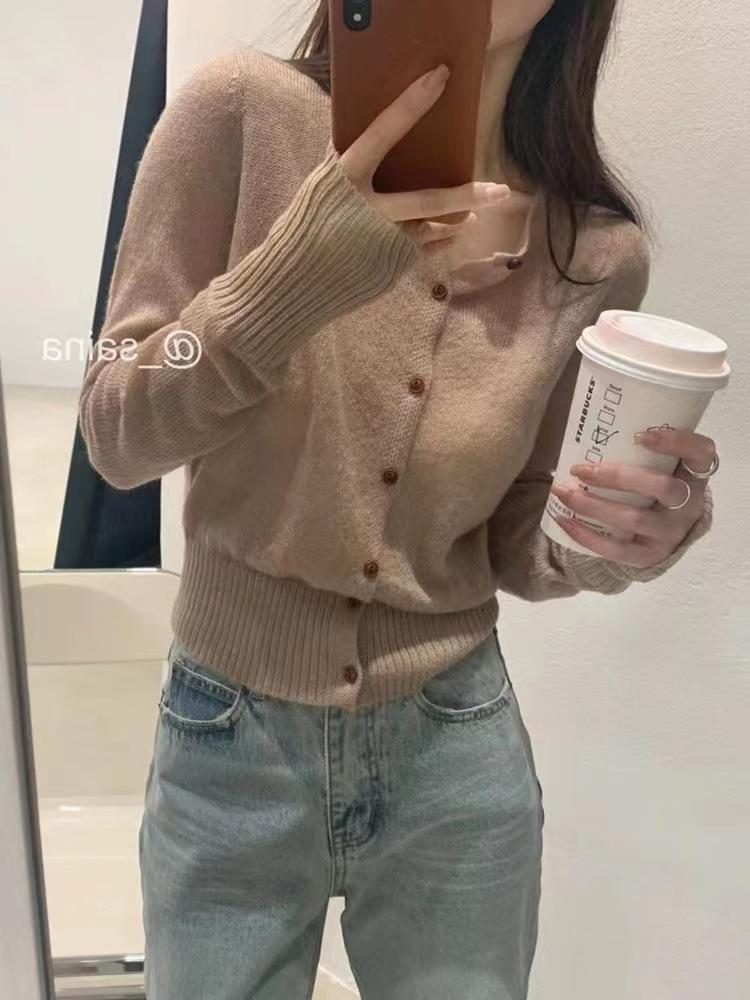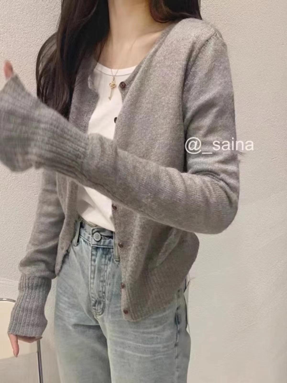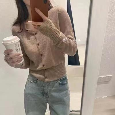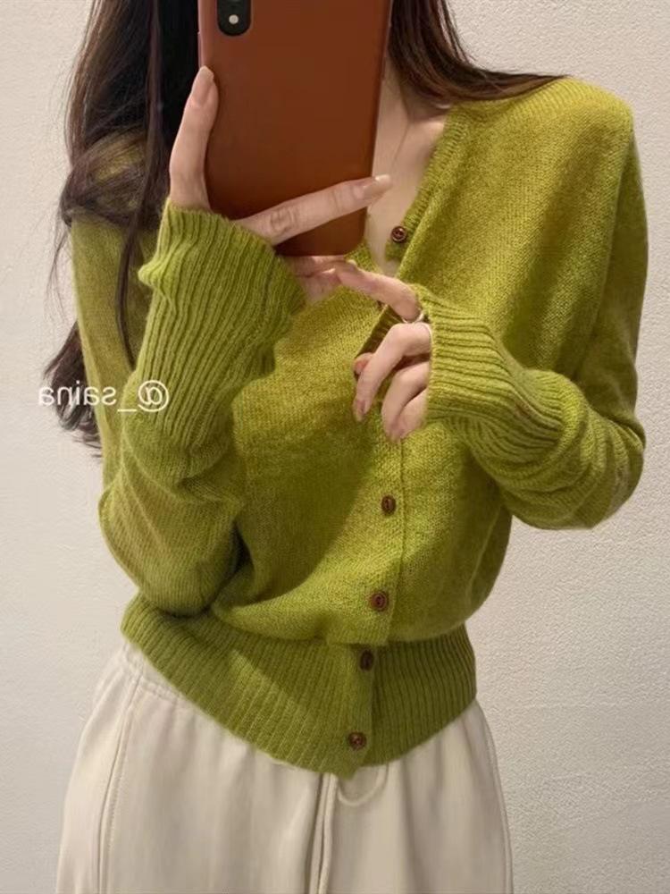 Chaqueta tipo cárdigan de lana pura para mujer, de un solo pecho, holgada, con cuello redondo, informal, elegante, sencilla, de manga larga