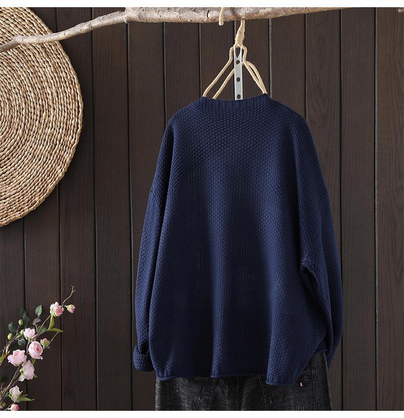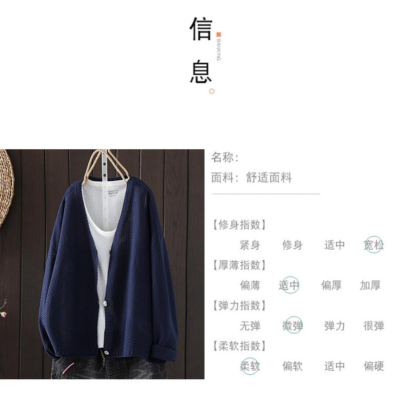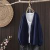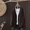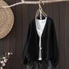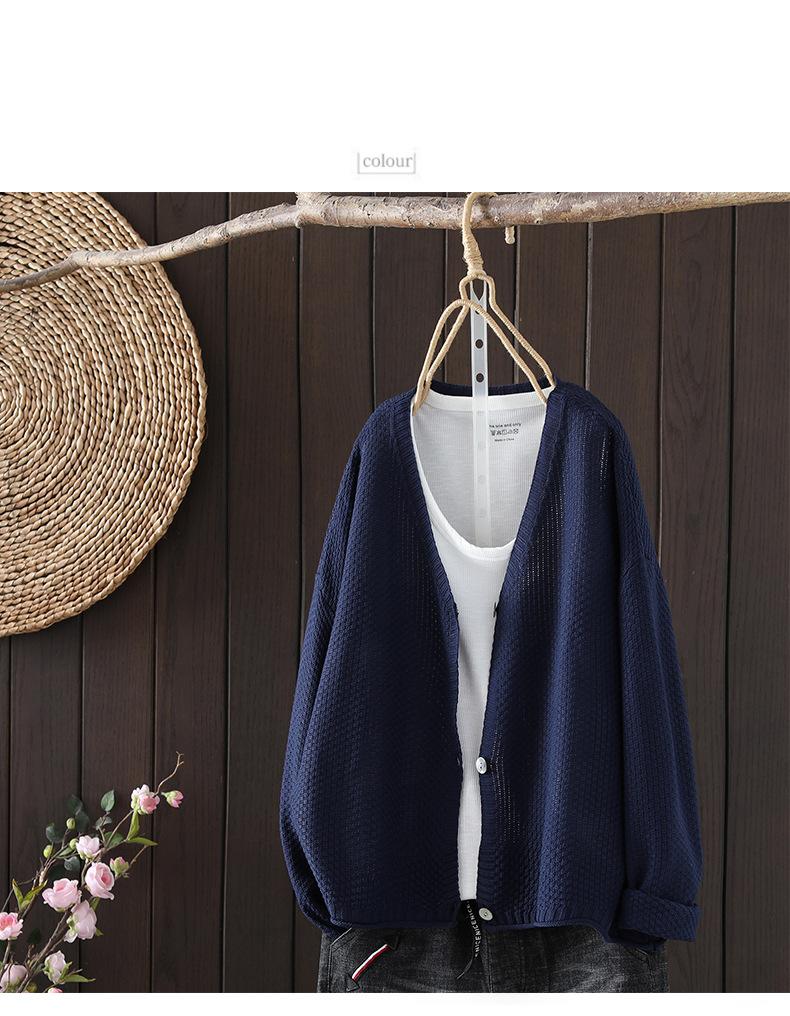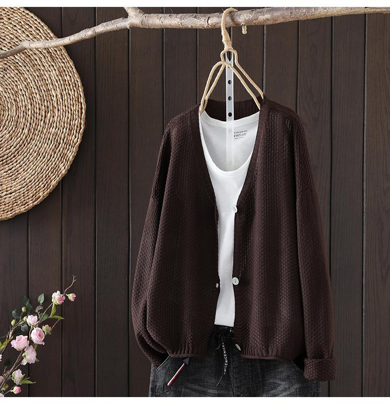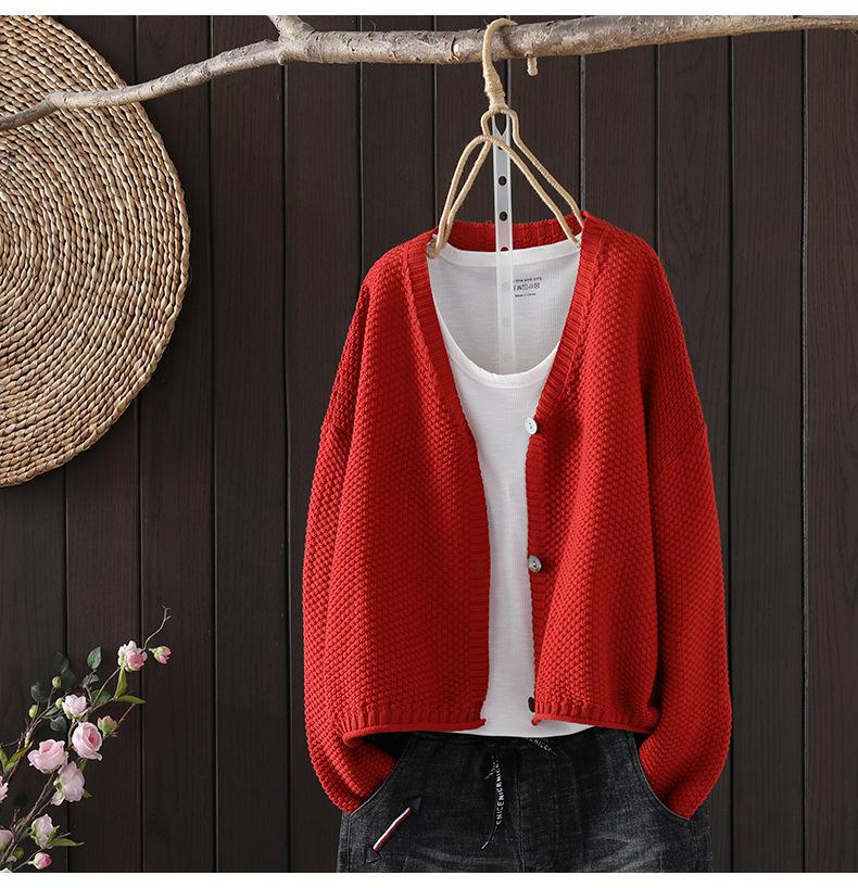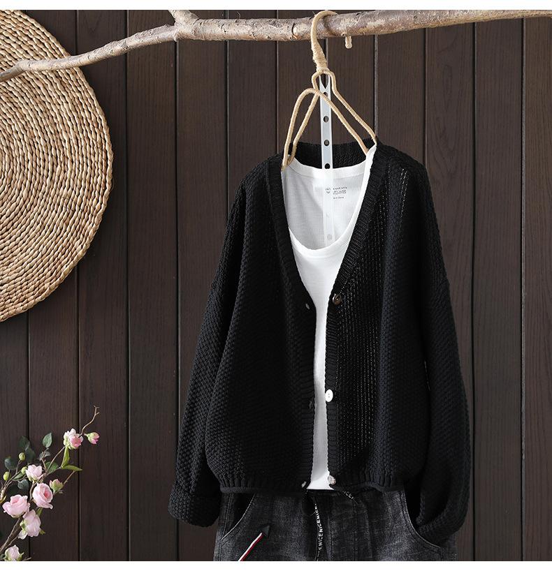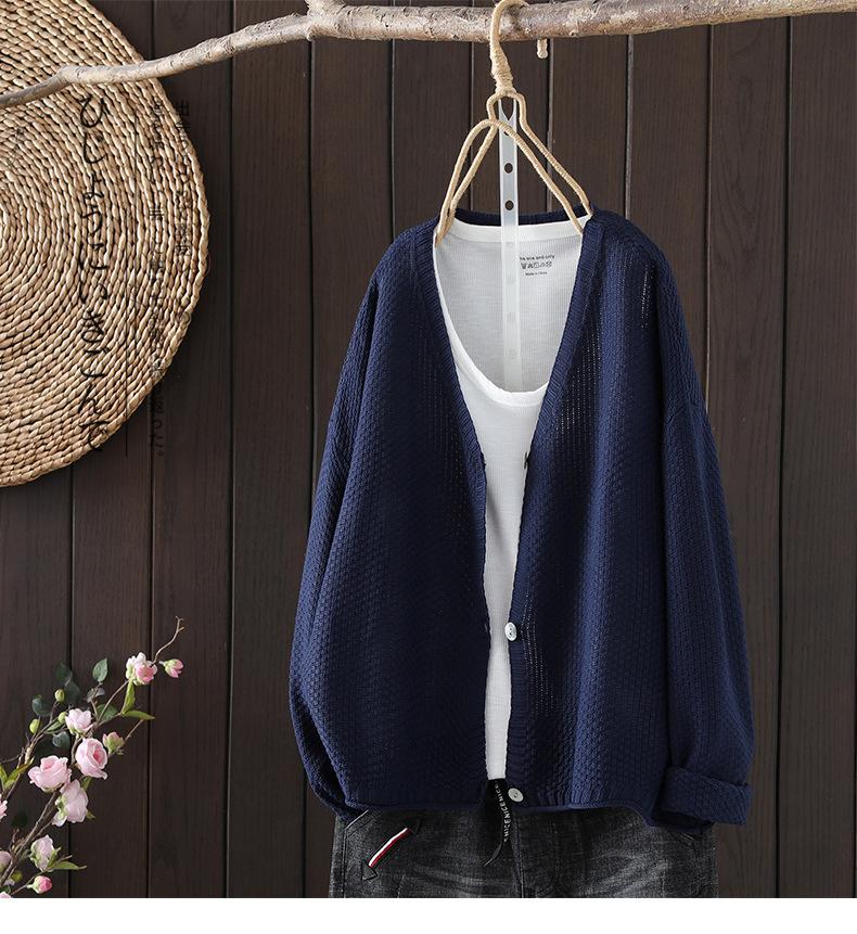 Cárdigan de Punto de Algodón Puro con Cuello en V Artístico Chaqueta para Mujer Holgada Perezosa Primavera y Otoño Manga Larga Frente Corto Espalda Larga Top