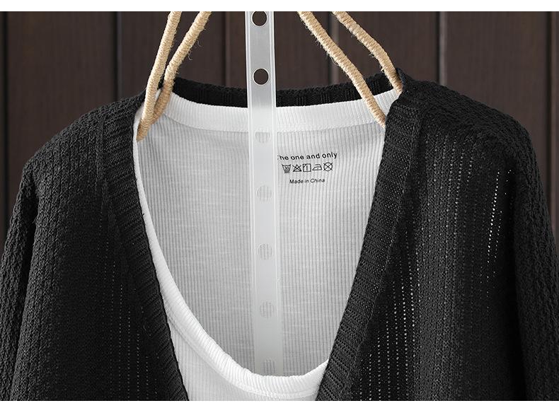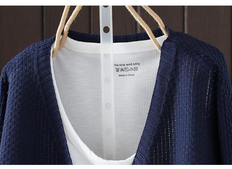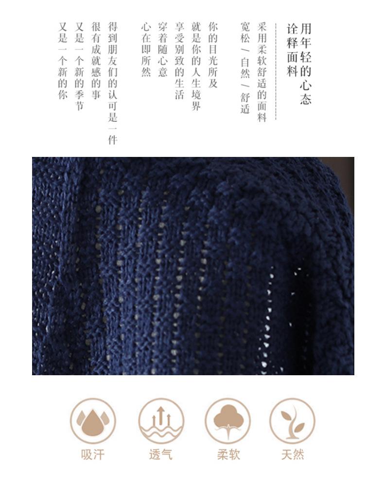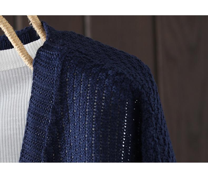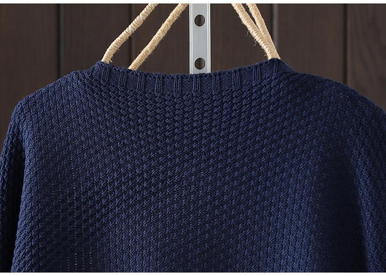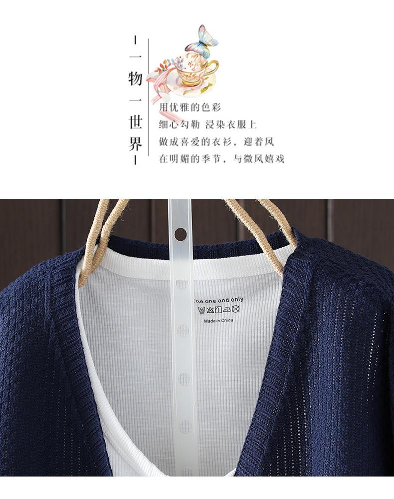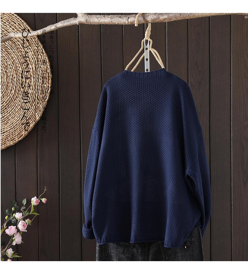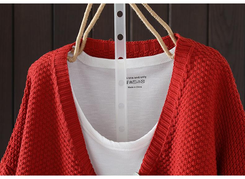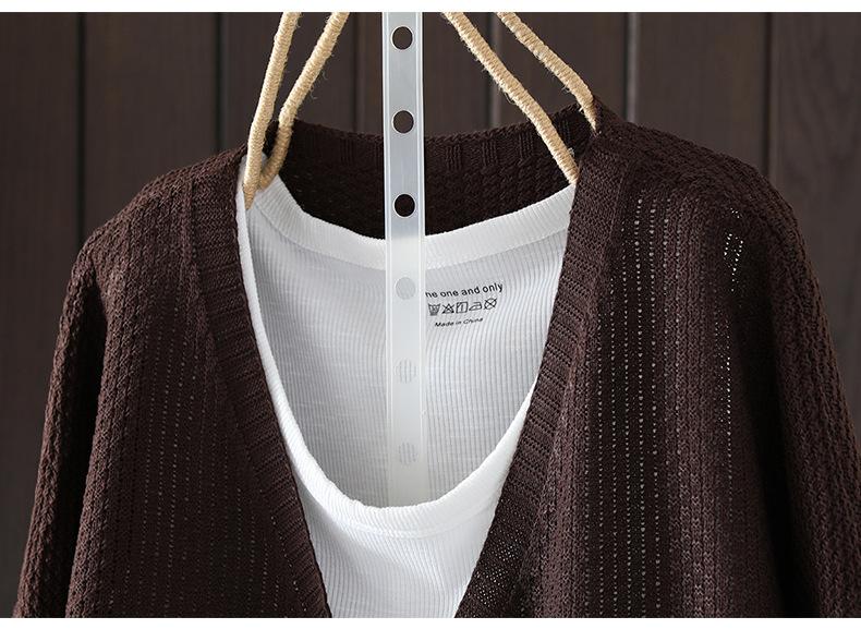 Cárdigan de Punto de Algodón Puro con Cuello en V Artístico Chaqueta para Mujer Holgada Perezosa Primavera y Otoño Manga Larga Frente Corto Espalda Larga Top