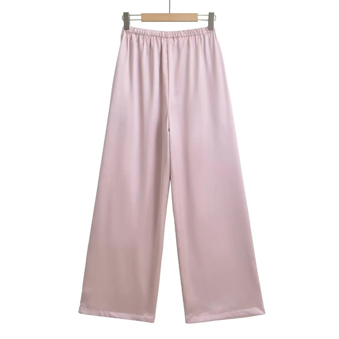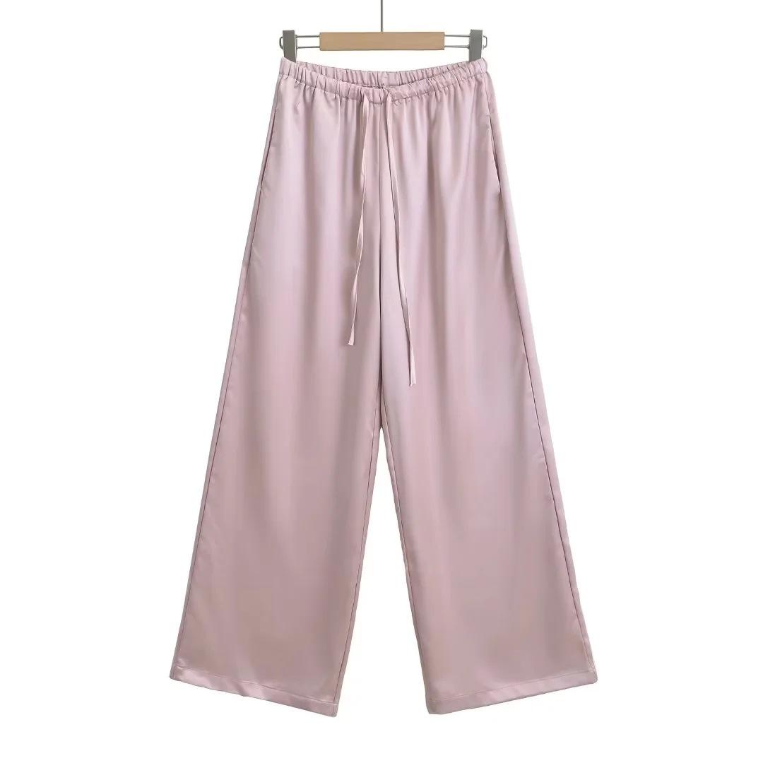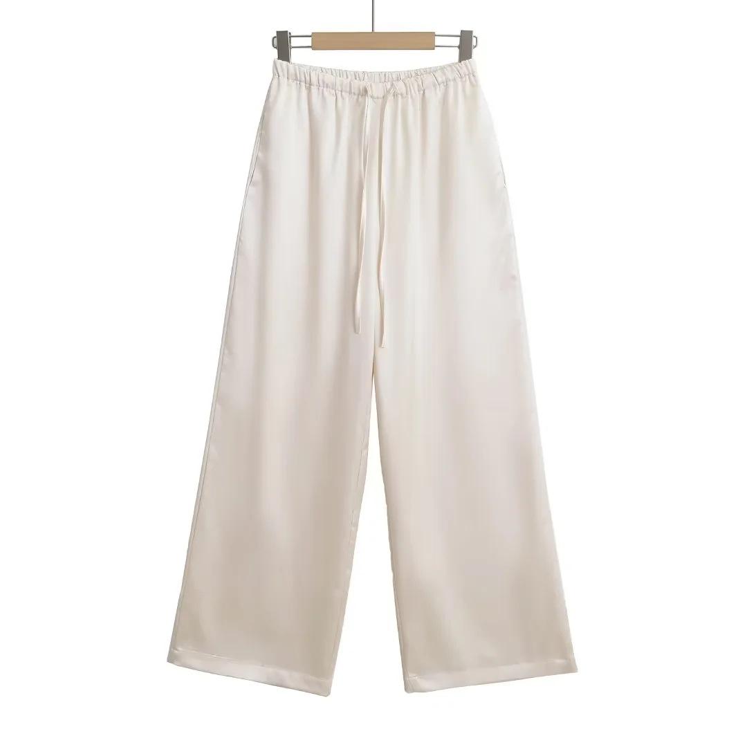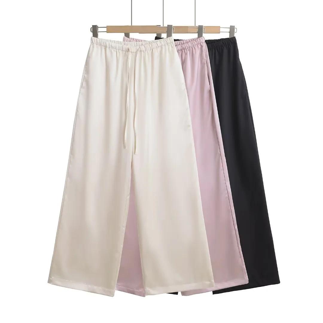 Pantalones anchos y holgados de verano 2024 para mujer, con cintura elástica y satén sedoso, informales.