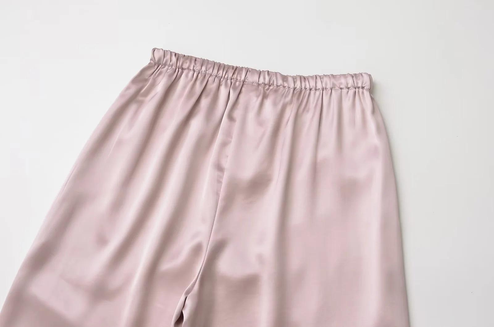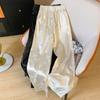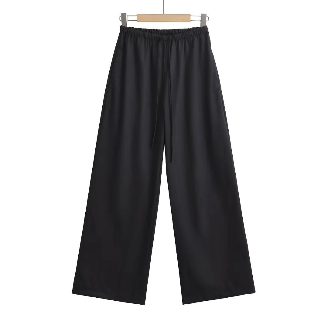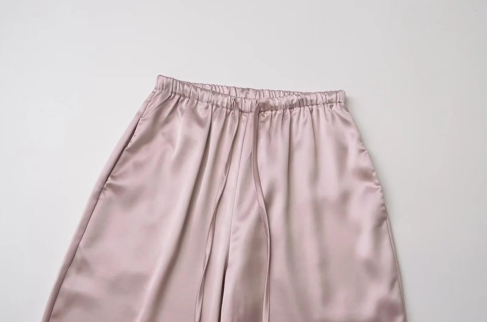 Pantalones anchos y holgados de verano 2024 para mujer, con cintura elástica y satén sedoso, informales.
