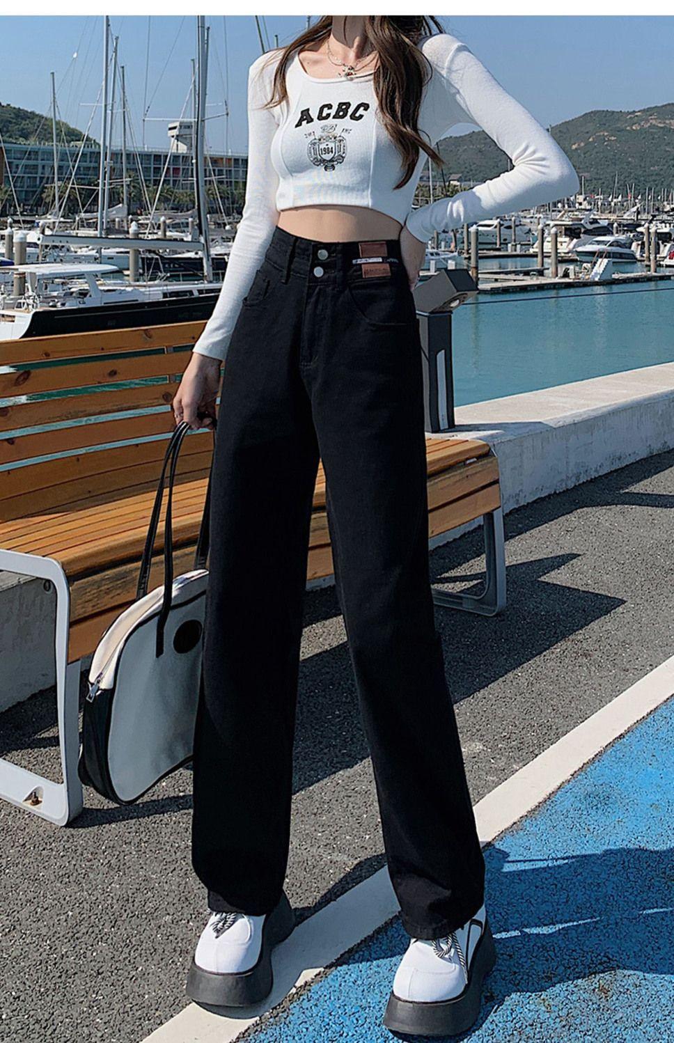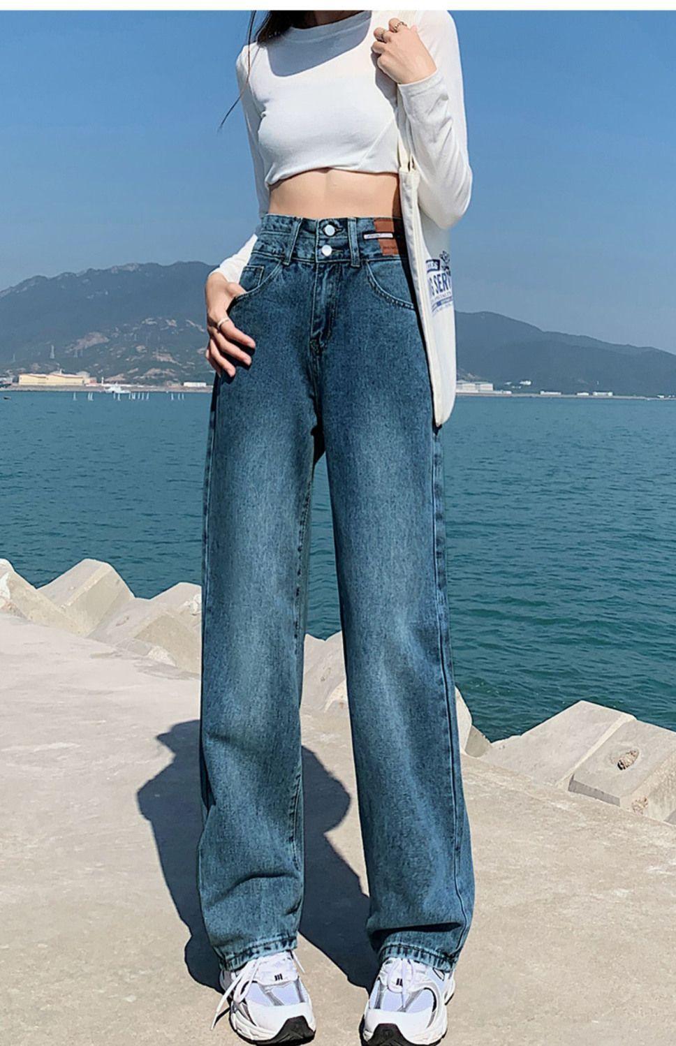 Pantalones rectos holgados con diseño de moda 2024, nuevos jeans de pierna ancha y cintura alta que combinan con todo, moda femenina