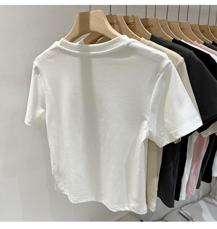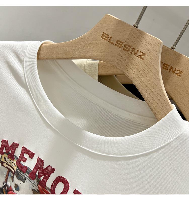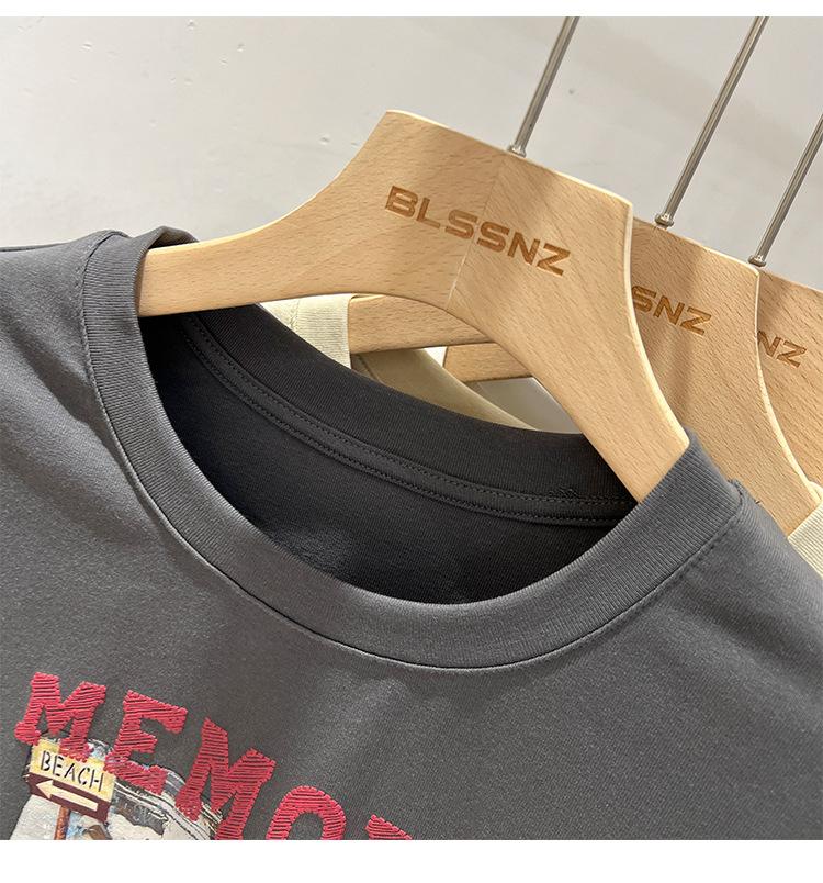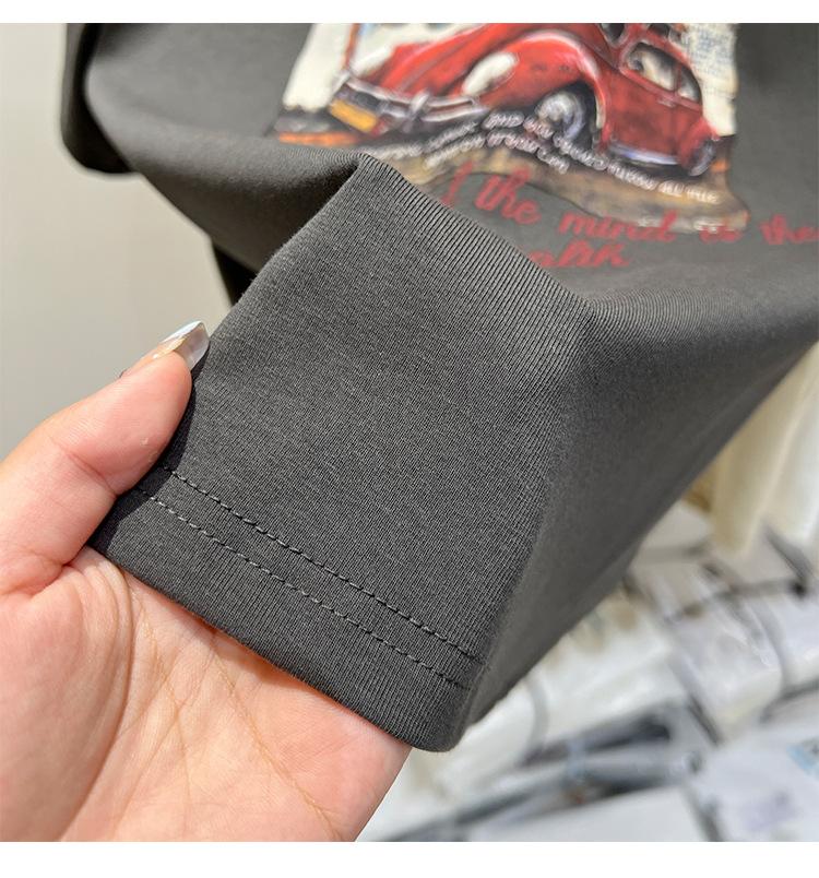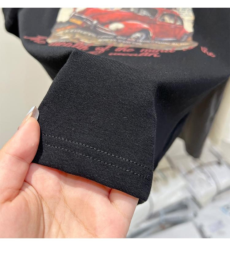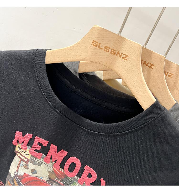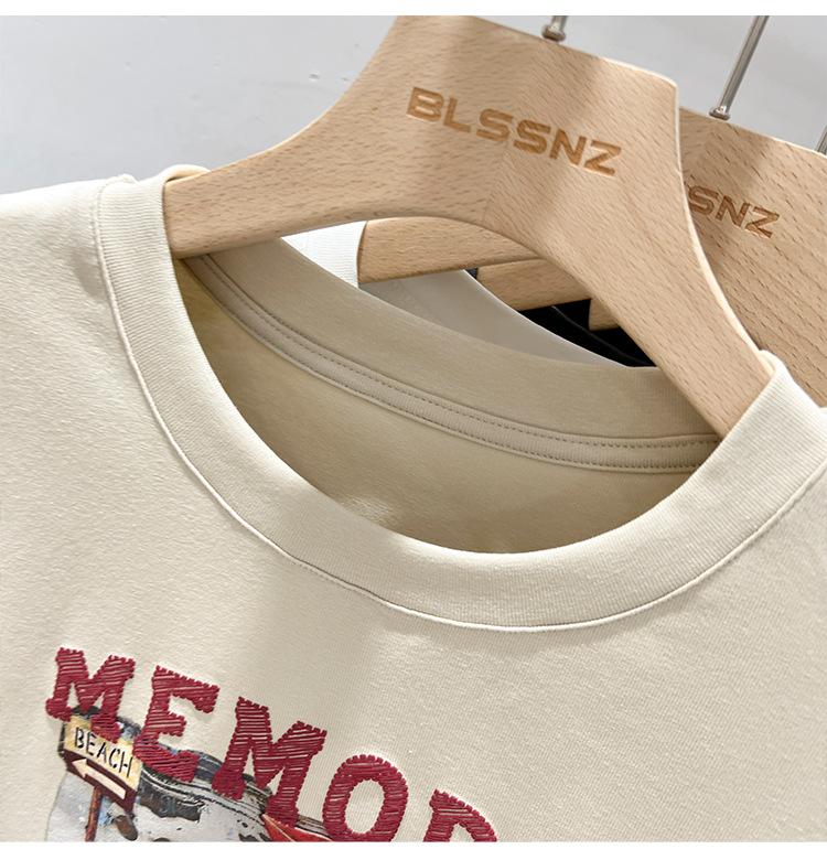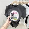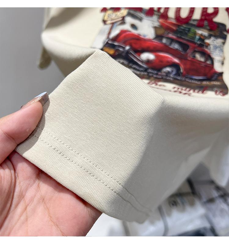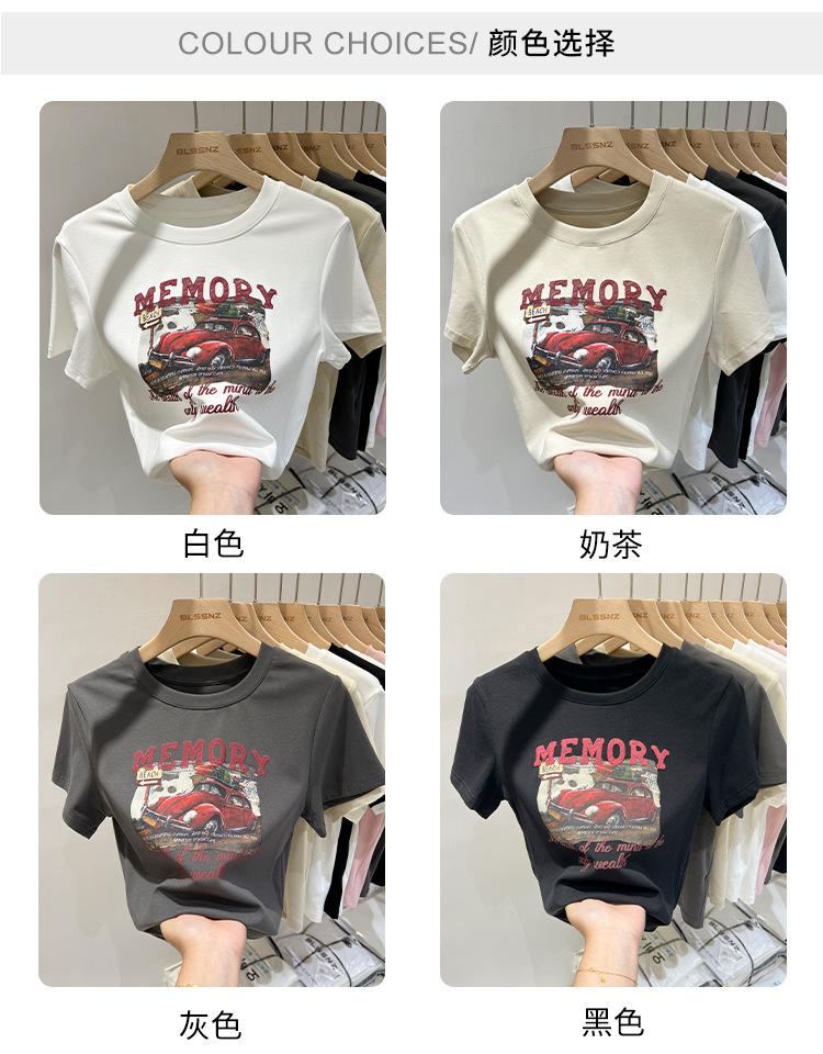 Camiseta de manga corta con hombros descubiertos y estampado retro estilo americano para mujer, verano 2024, nuevo diseño Sense Niche Short Top