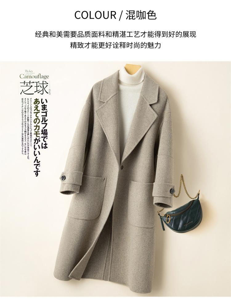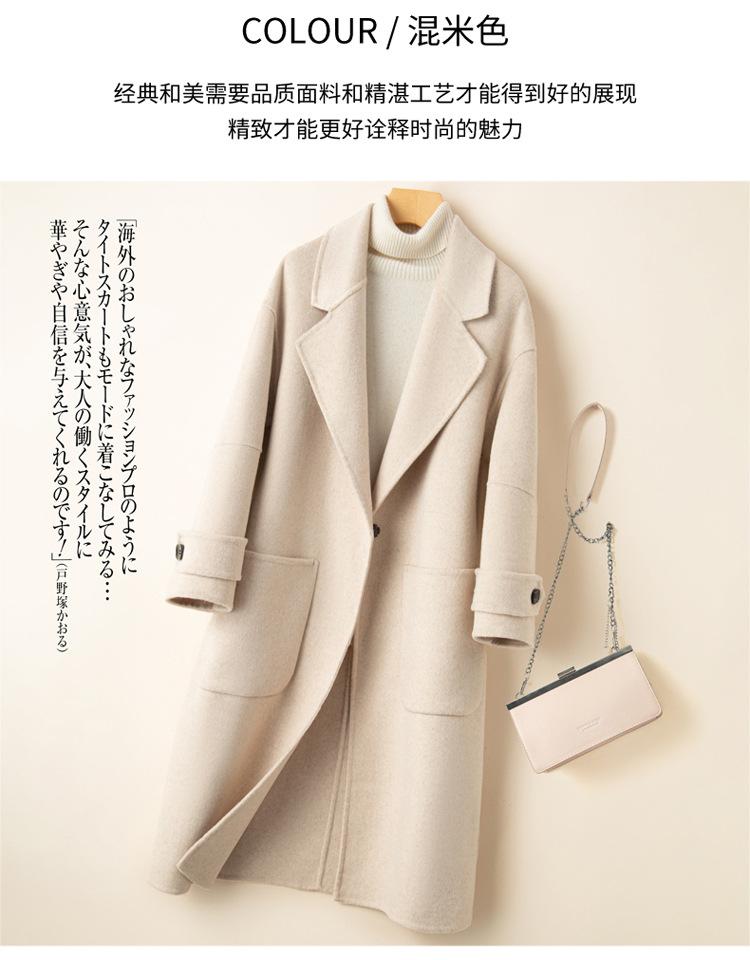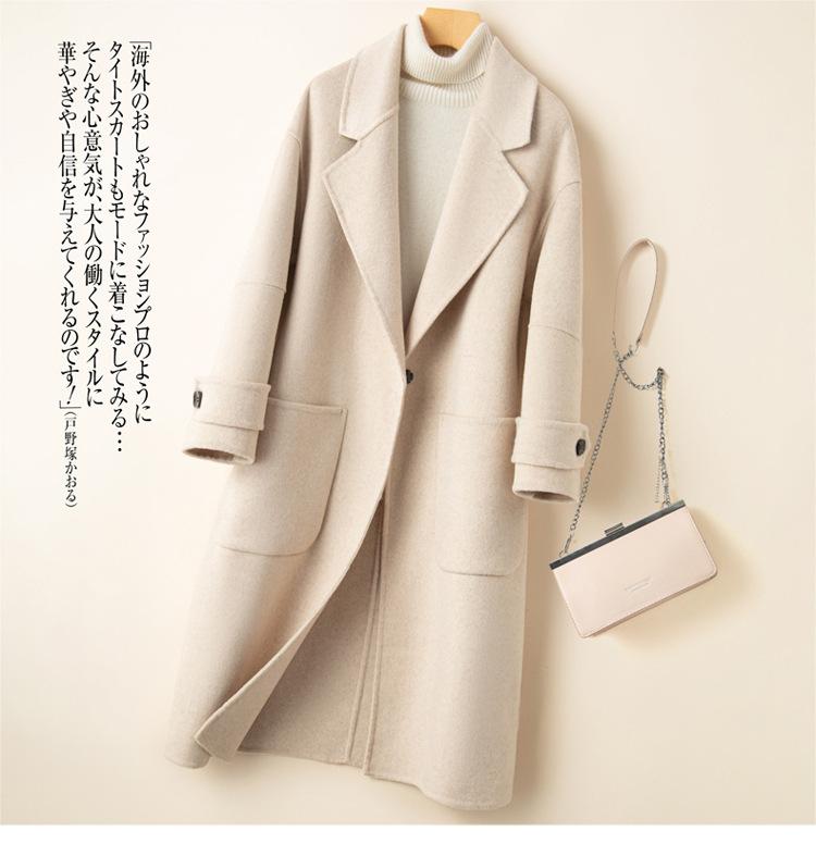 25 Nuevo Otoño e Invierno Puro Hecho a Mano Doble Cara Lana Abrigo Solapa Largo Estilo Coreano Alta Gama Abrigo Cárdigan para Mujer
