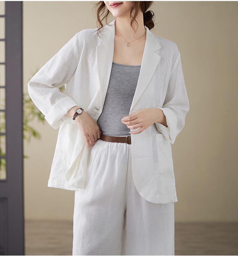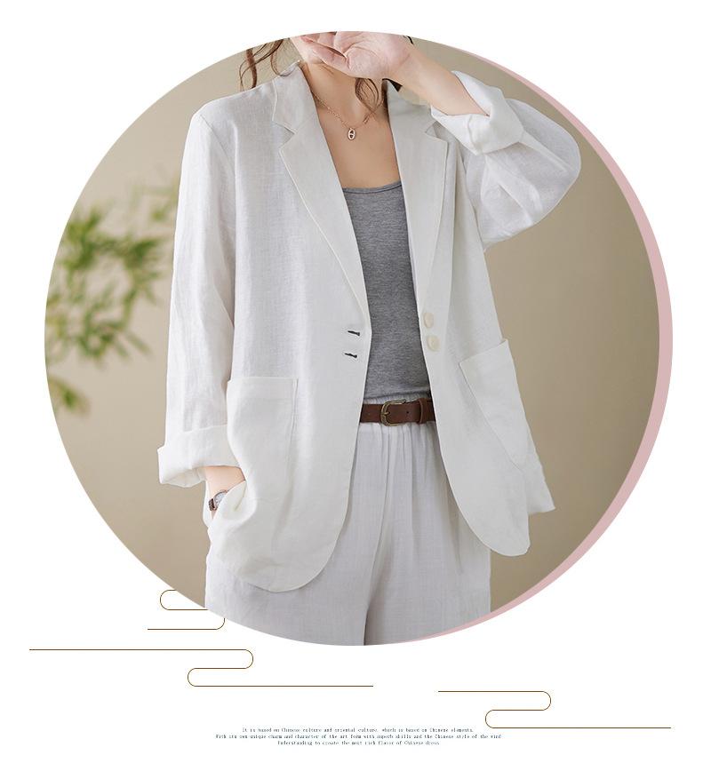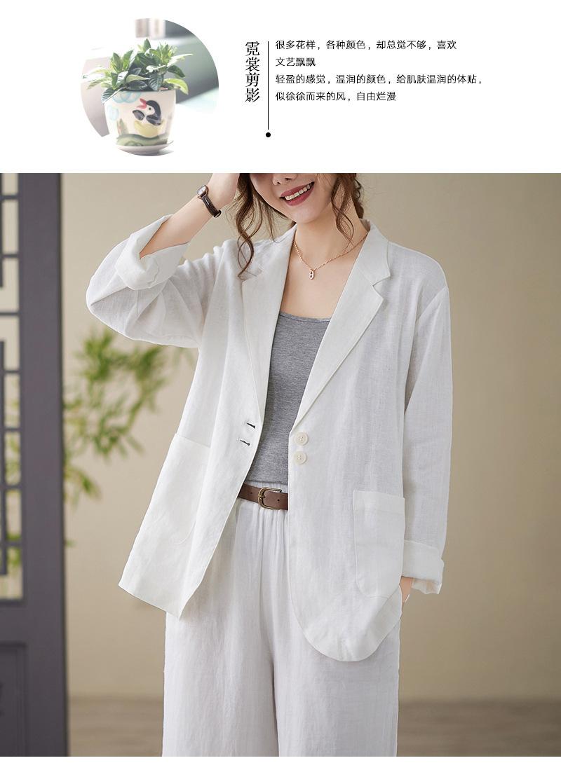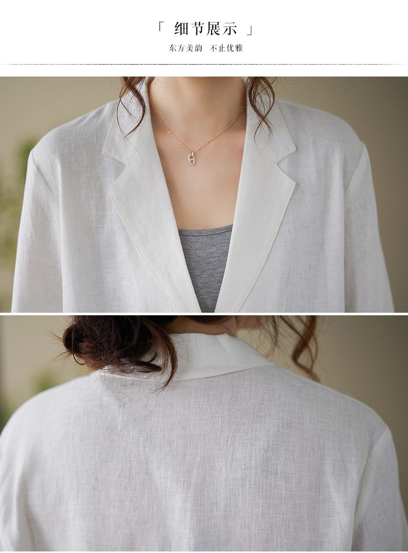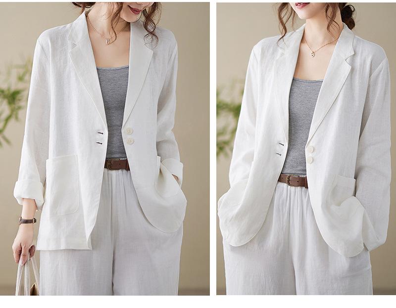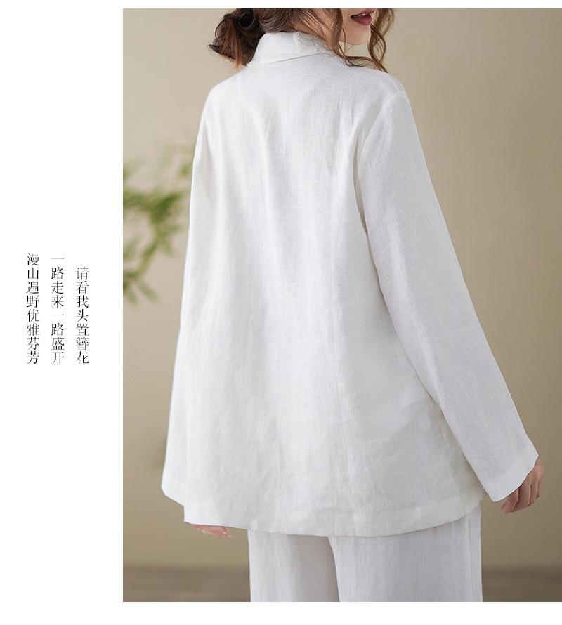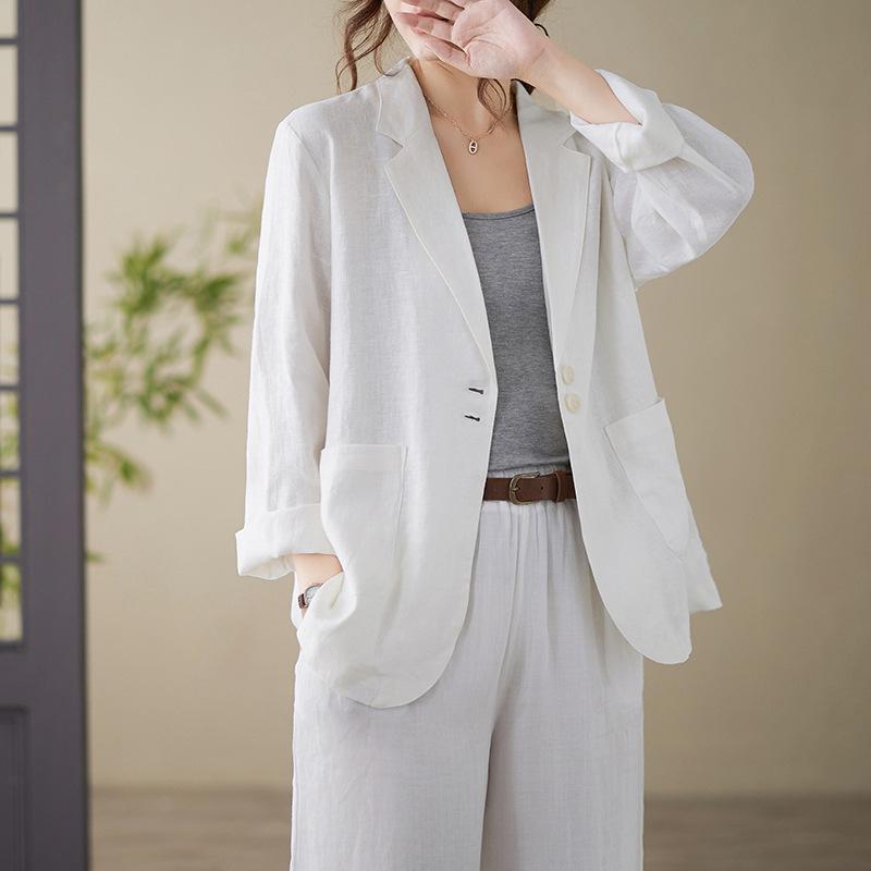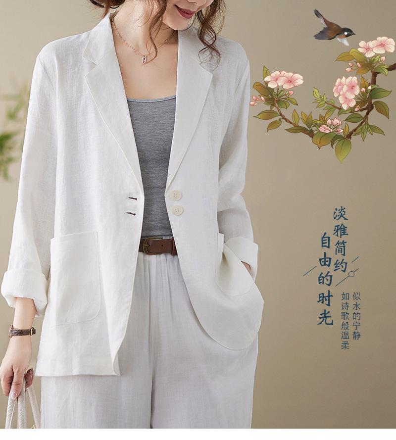 Traje Nuevo de Otoño 2024 de Algodón y Lino Japonés Artístico Color Sólido Lino Chaqueta de Traje de Manga Larga para Mujer