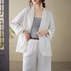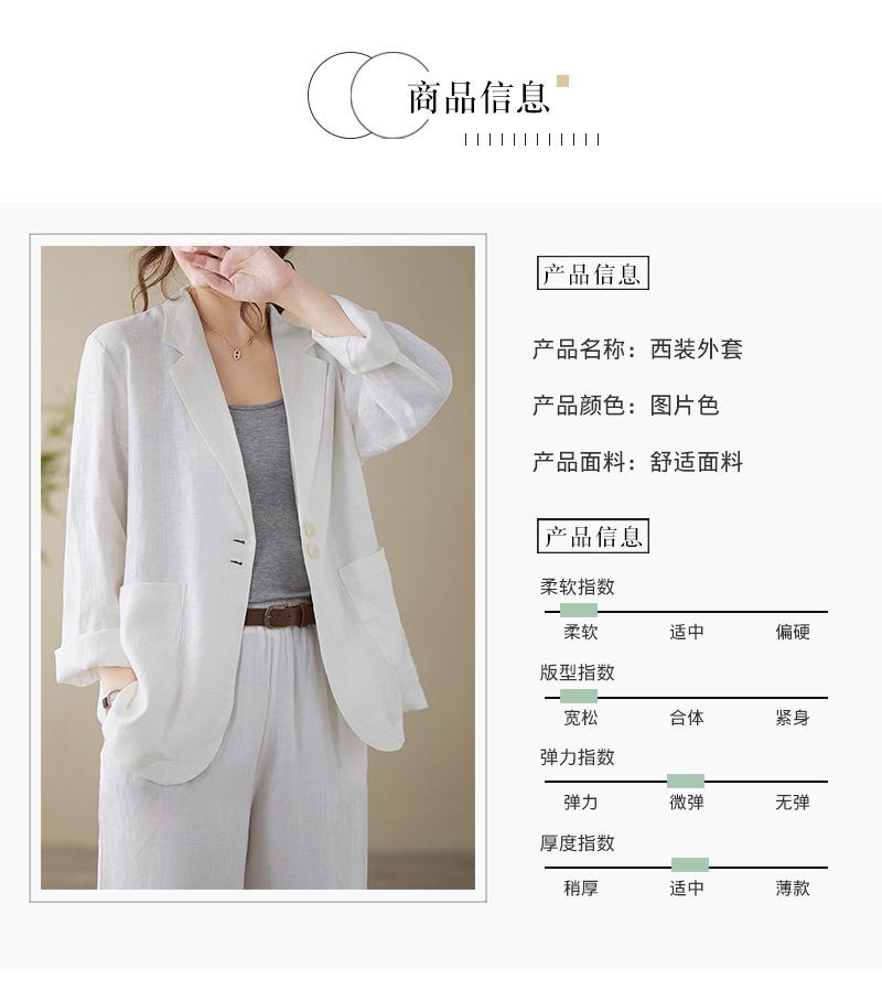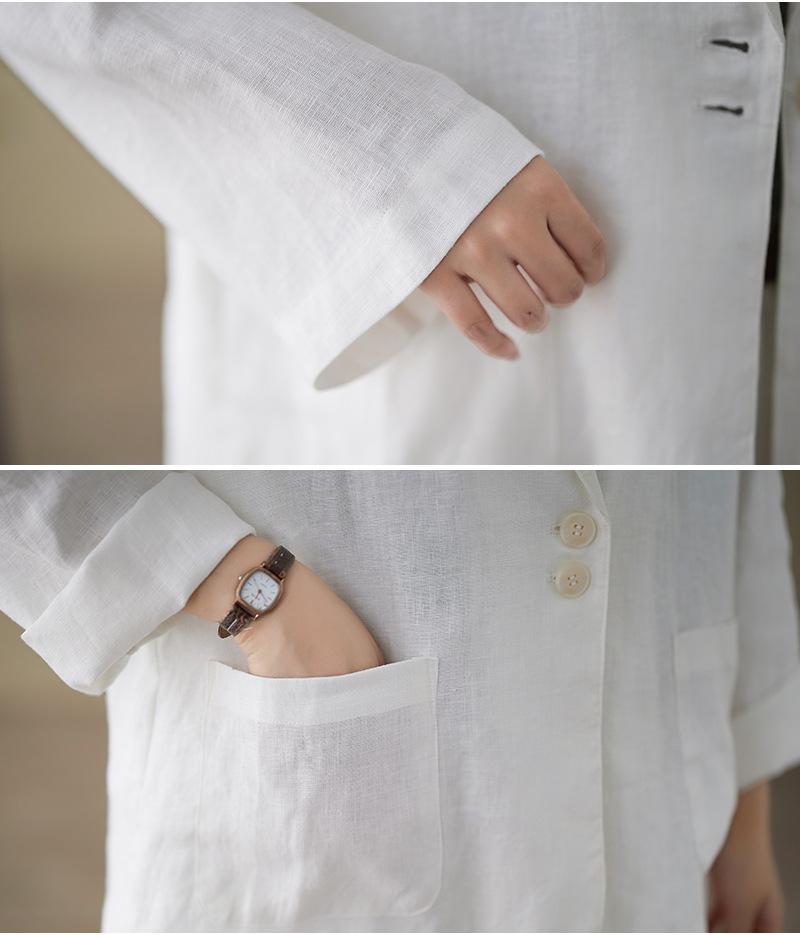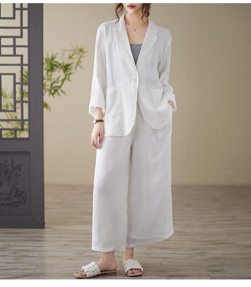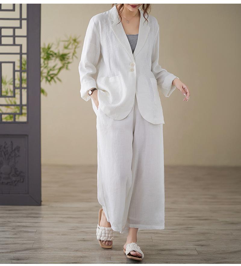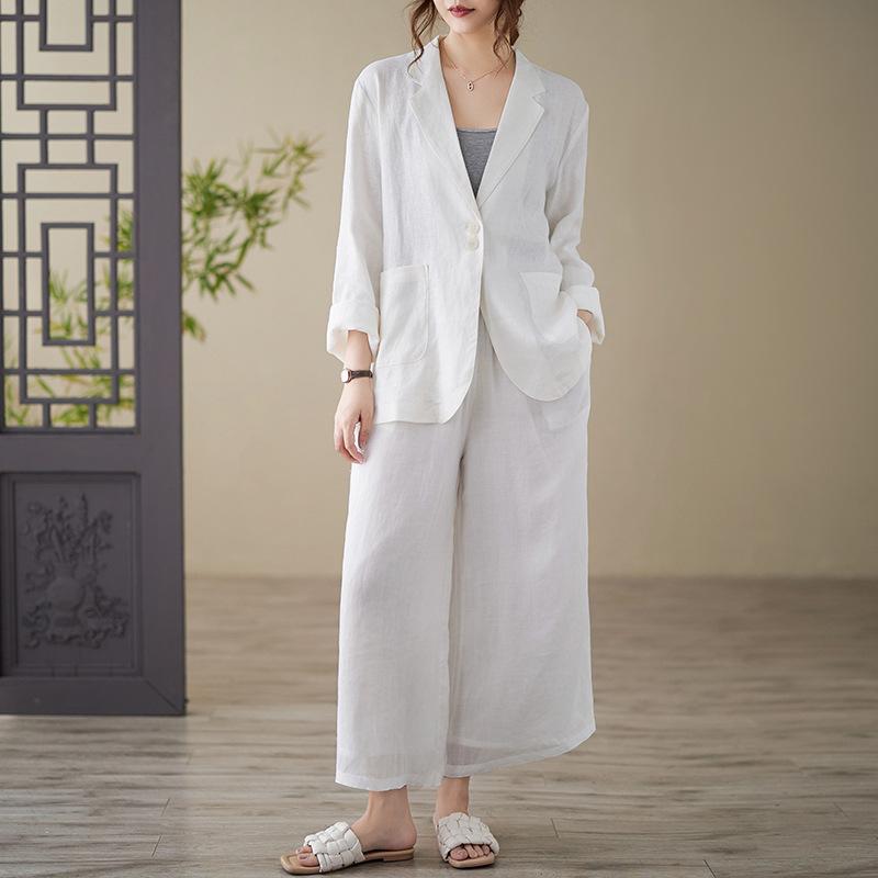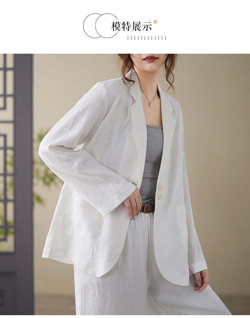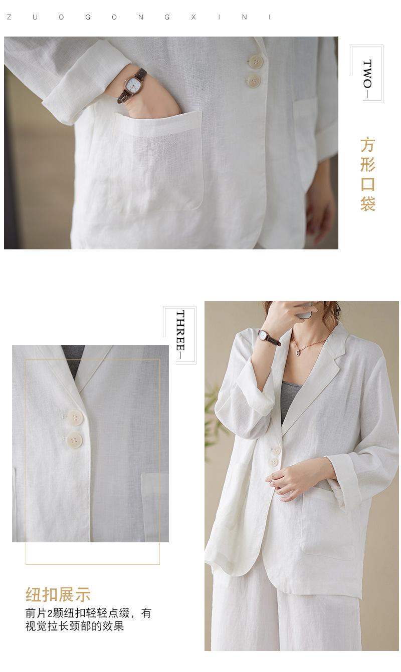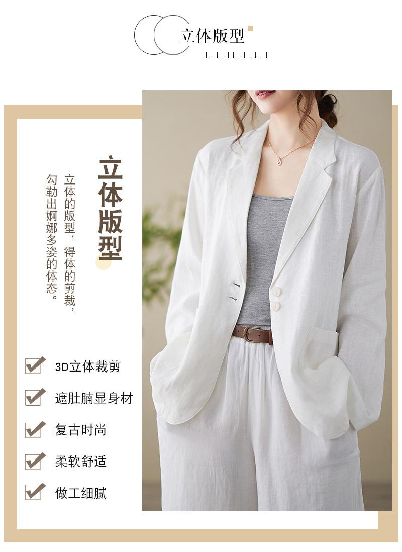Traje Nuevo de Otoño 2024 de Algodón y Lino Japonés Artístico Color Sólido Lino Chaqueta de Traje de Manga Larga para Mujer