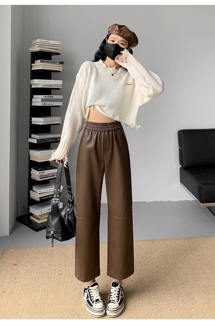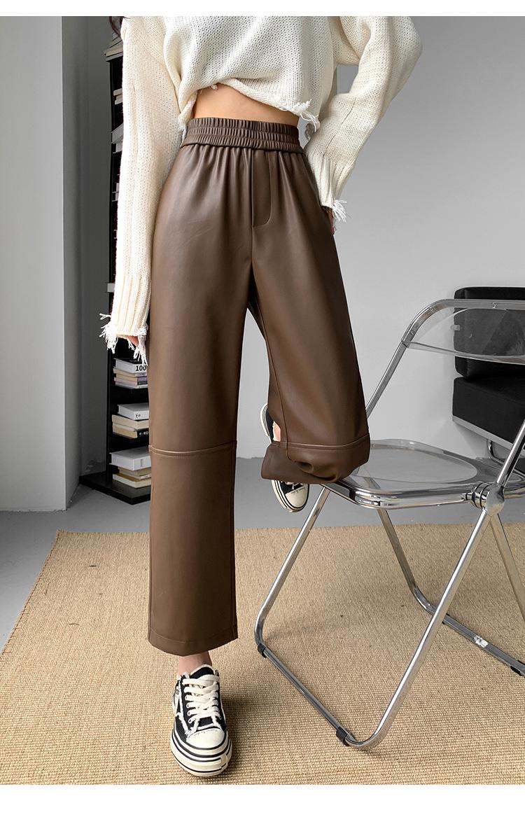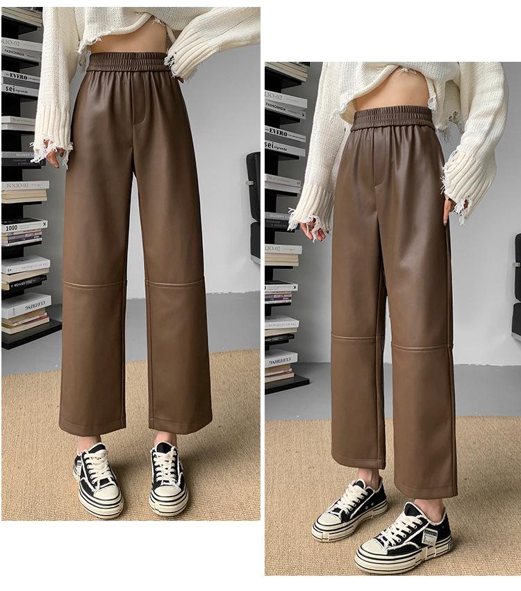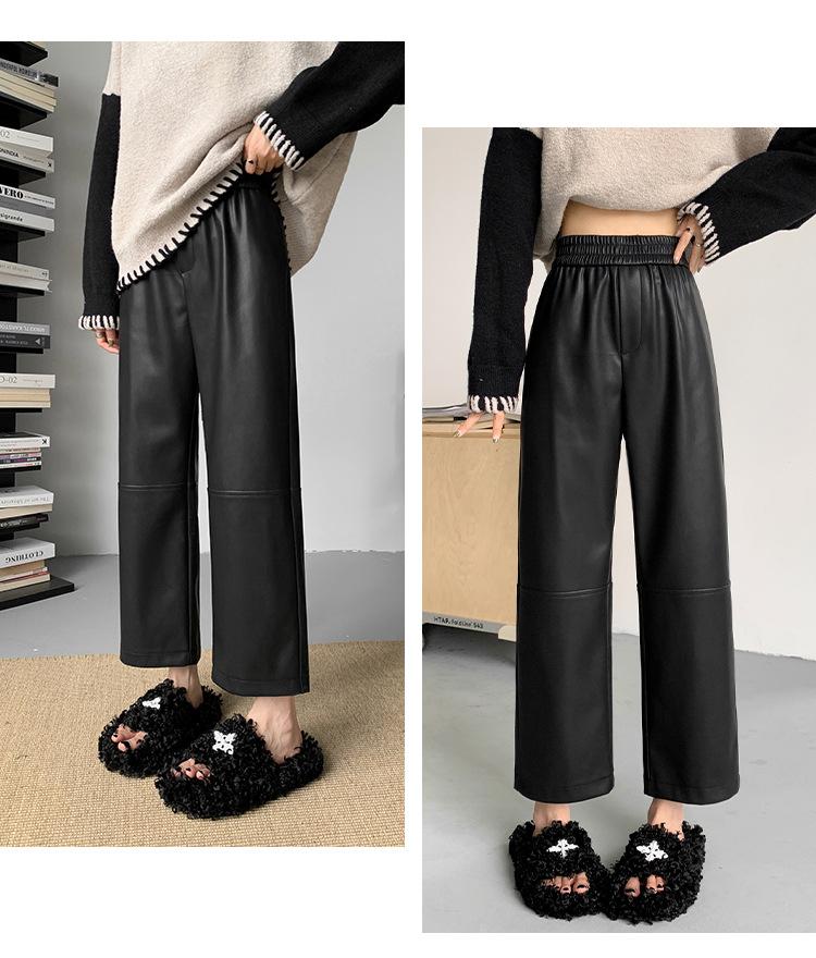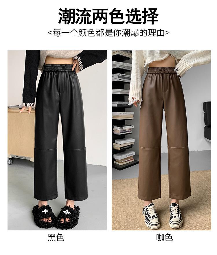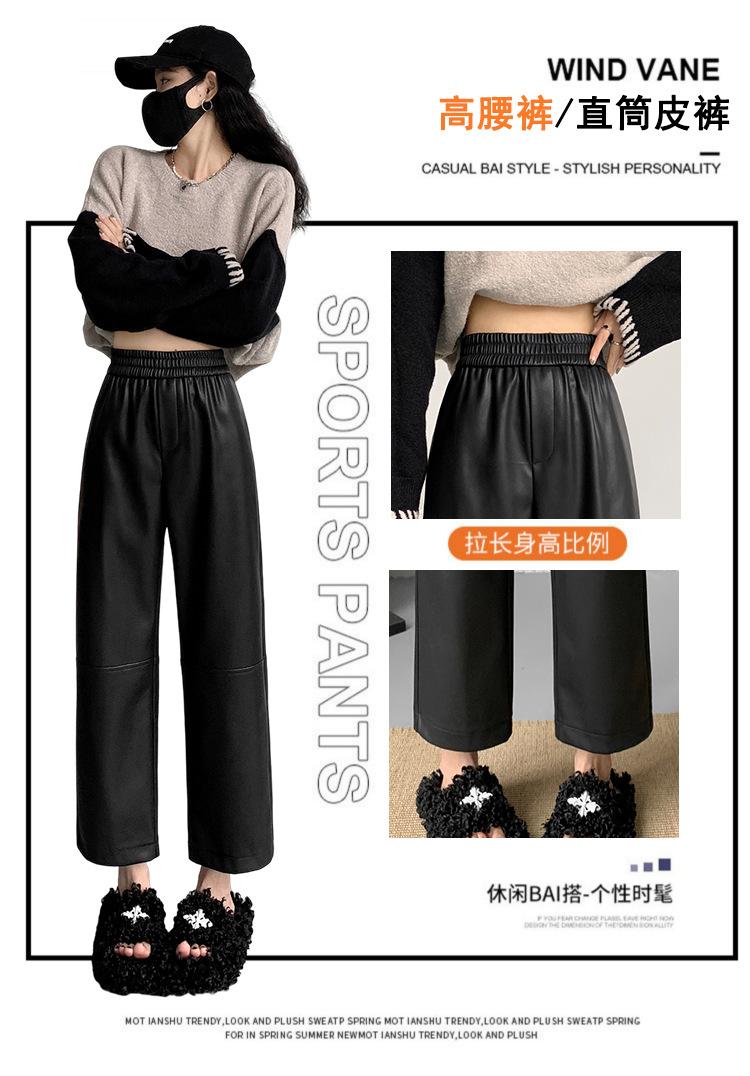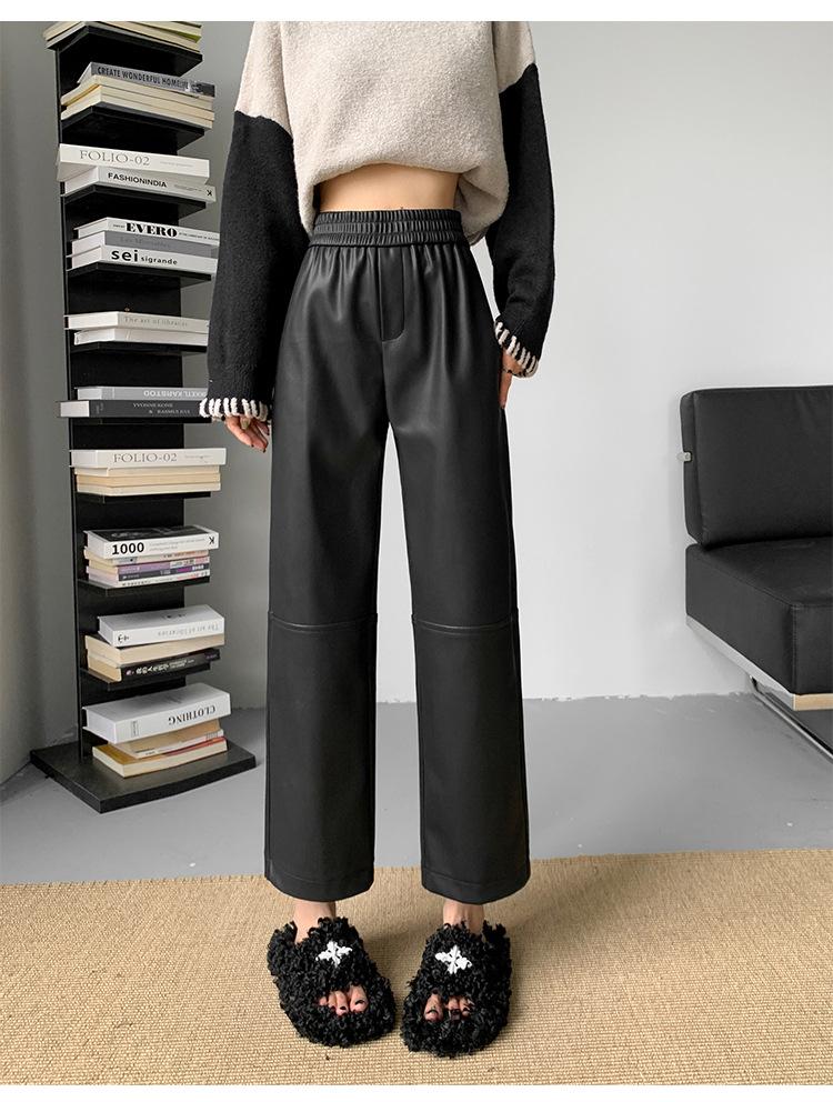 Pantalones negros de cuero sintético para mujer, otoño e invierno 2023, nuevos, de cintura alta, elegantes, de nueve puntos, informales, adelgazantes, rectos y combinables.