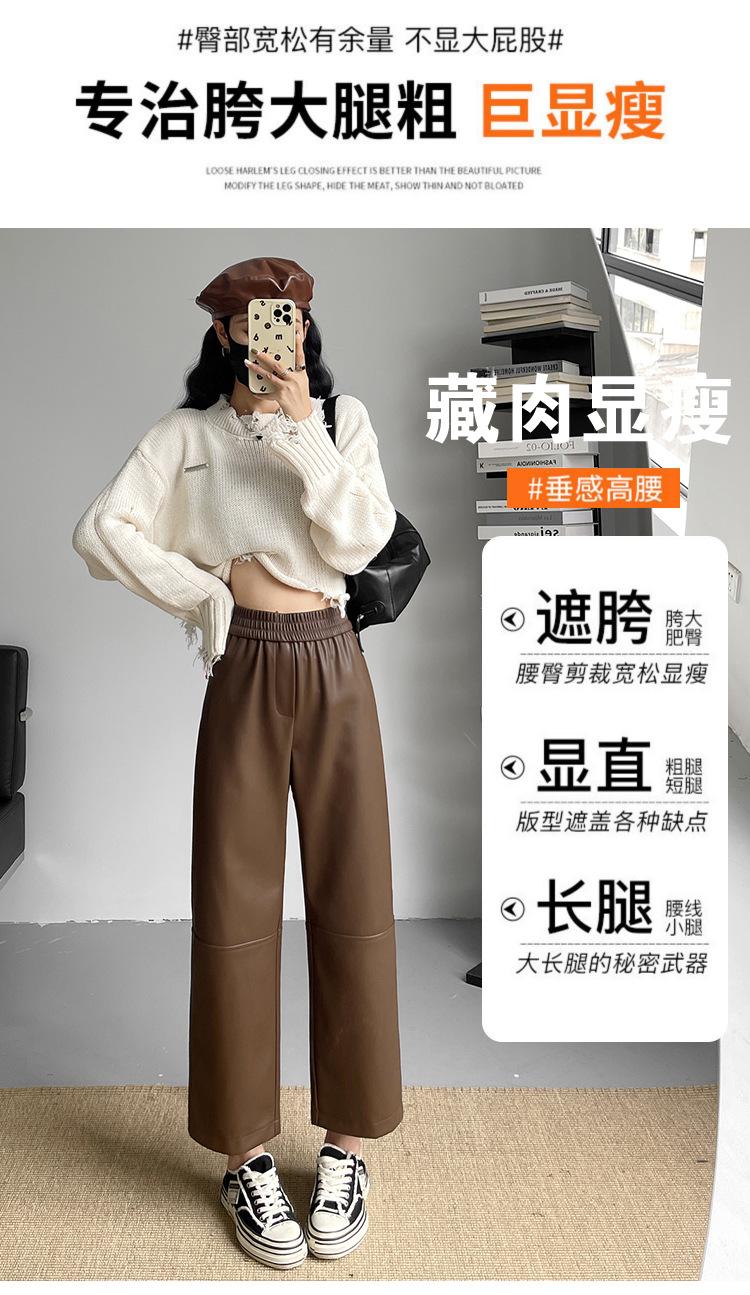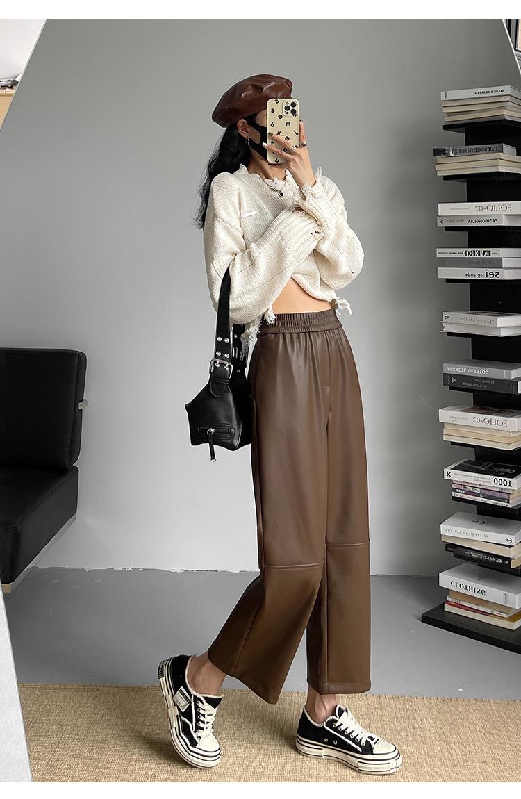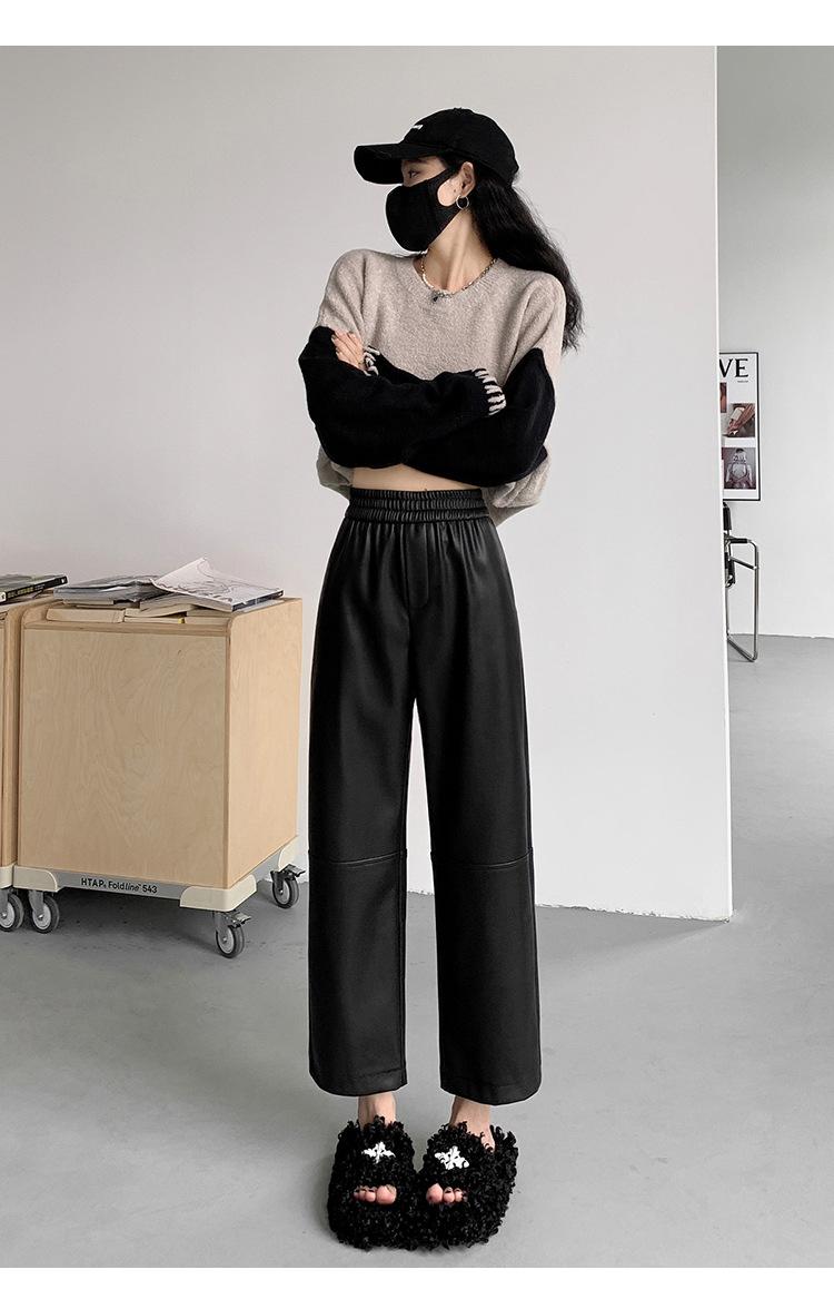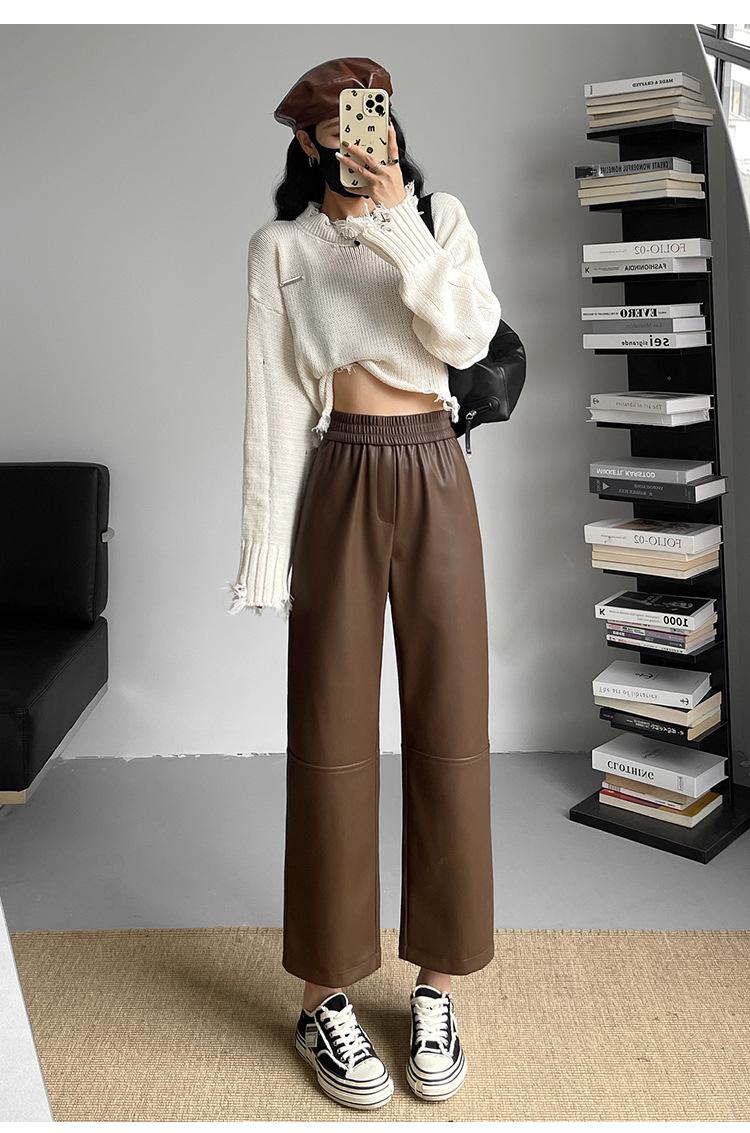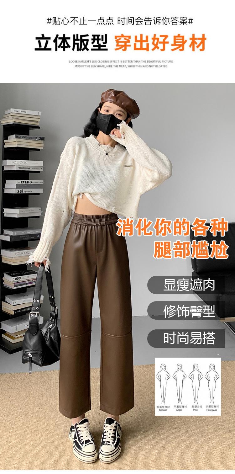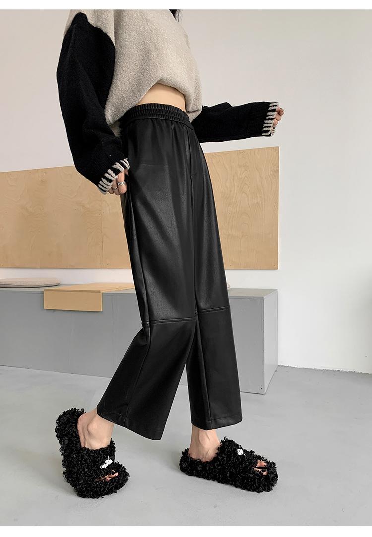 Pantalones negros de cuero sintético para mujer, otoño e invierno 2023, nuevos, de cintura alta, elegantes, de nueve puntos, informales, adelgazantes, rectos y combinables.
