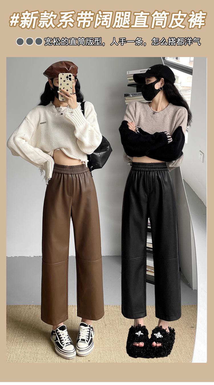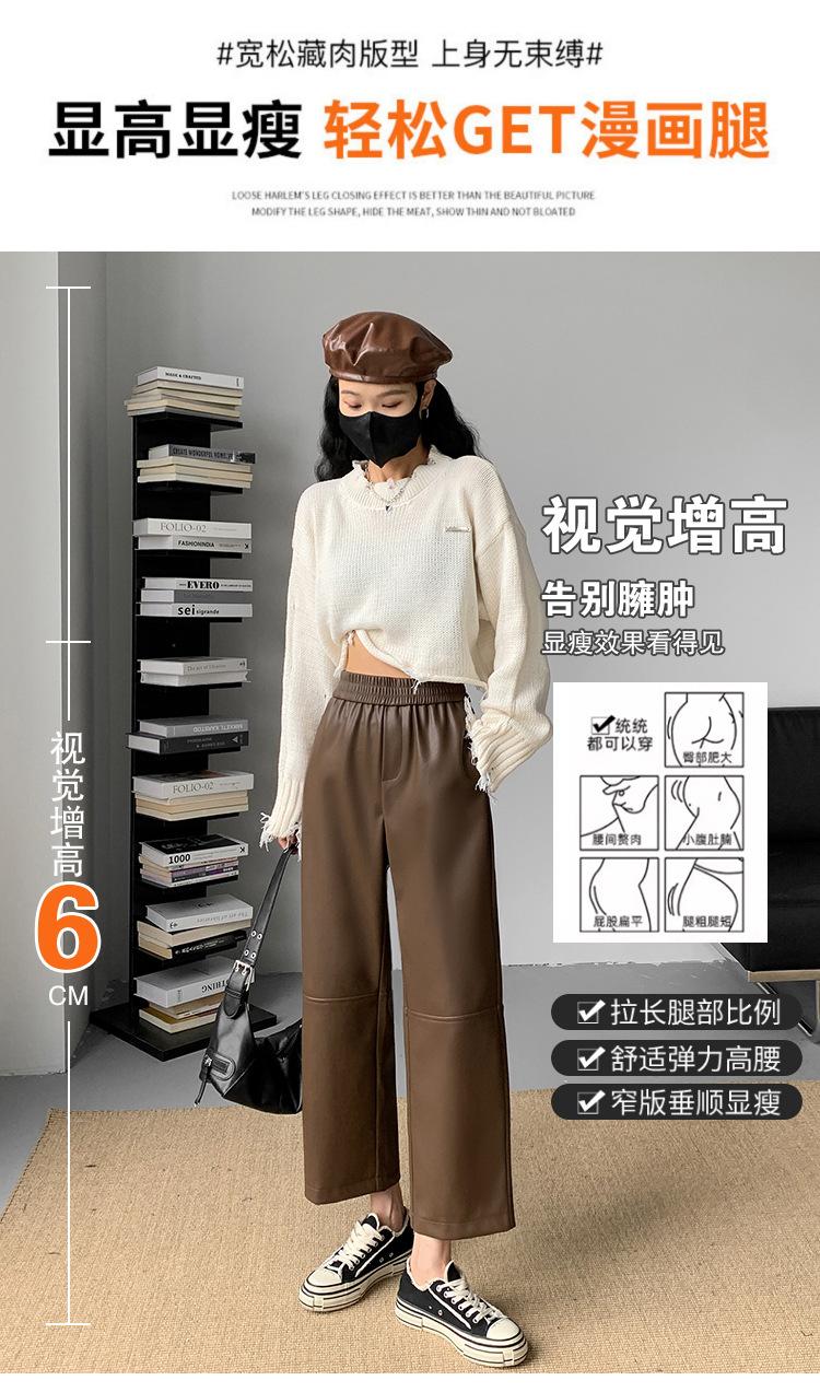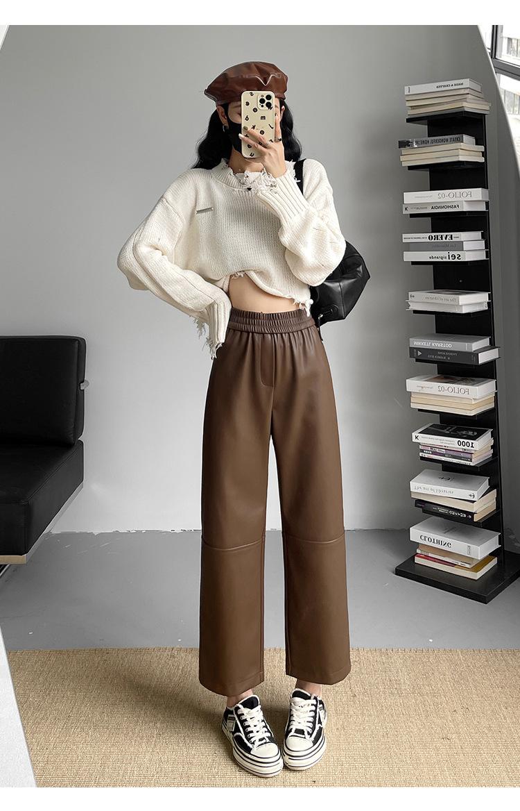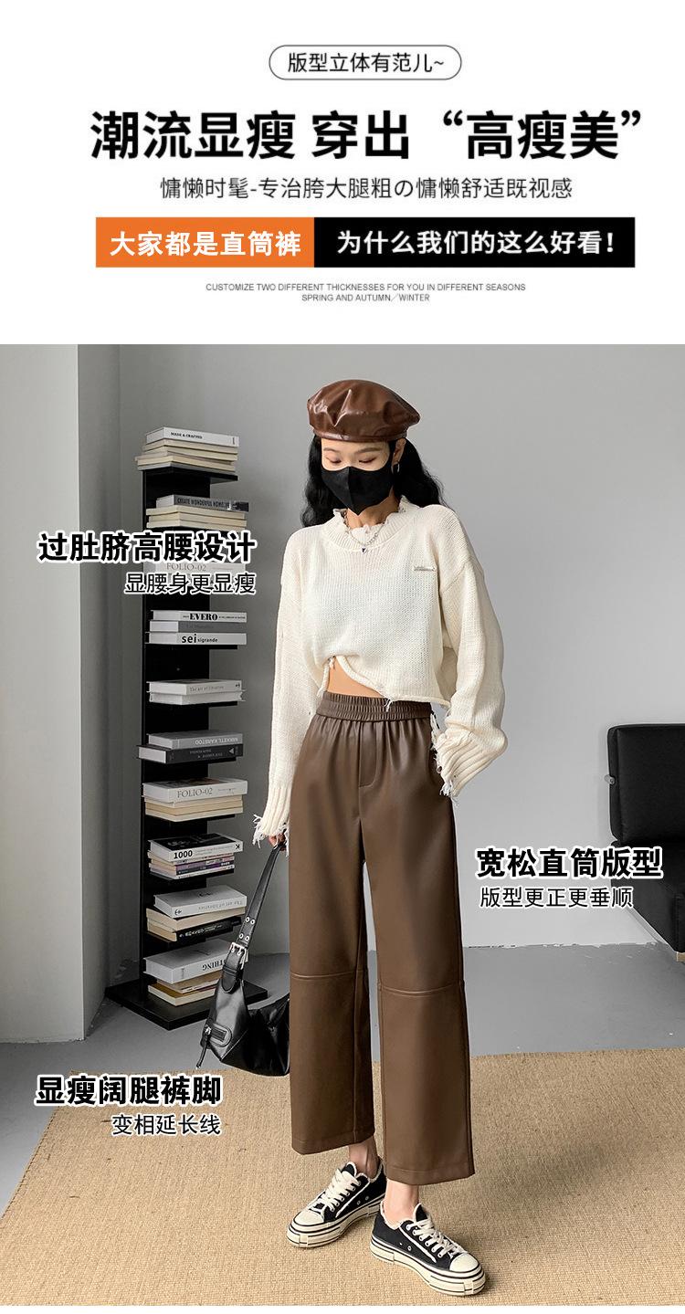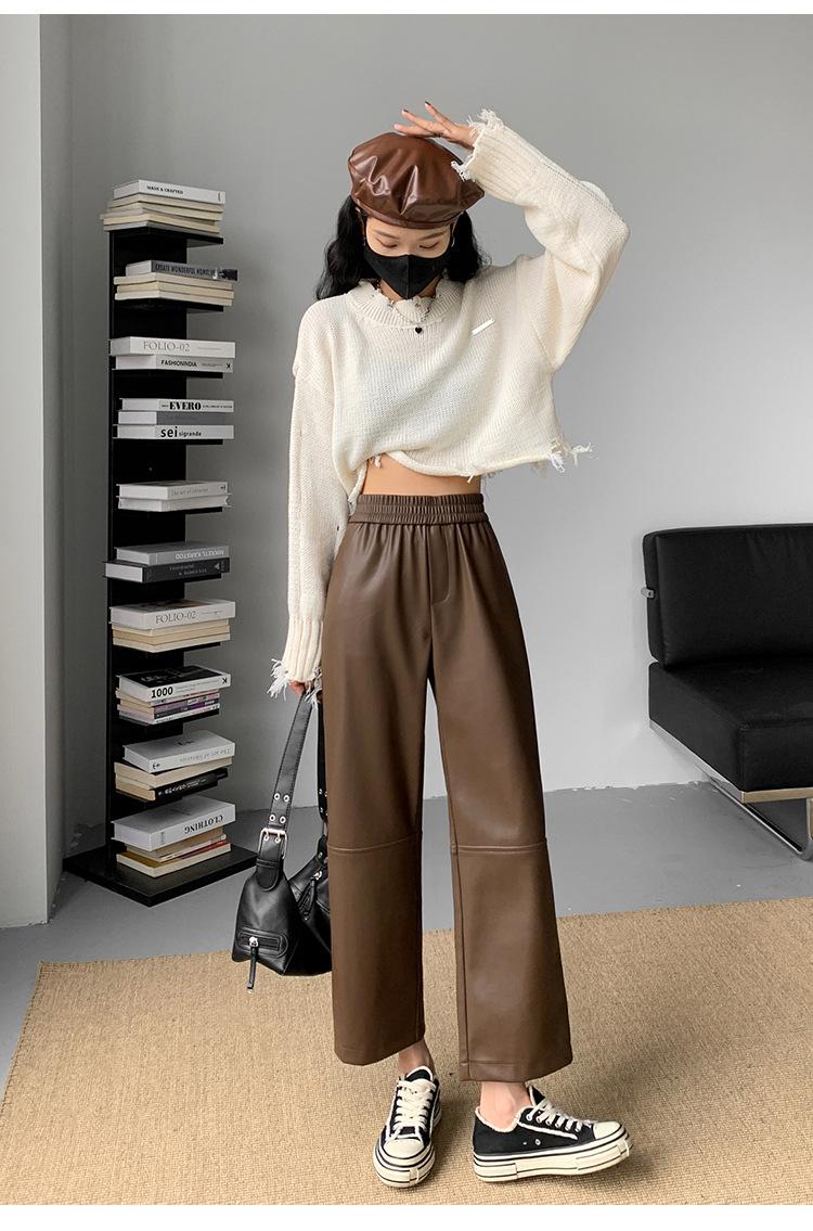 Pantalones negros de cuero sintético para mujer, otoño e invierno 2023, nuevos, de cintura alta, elegantes, de nueve puntos, informales, adelgazantes, rectos y combinables.