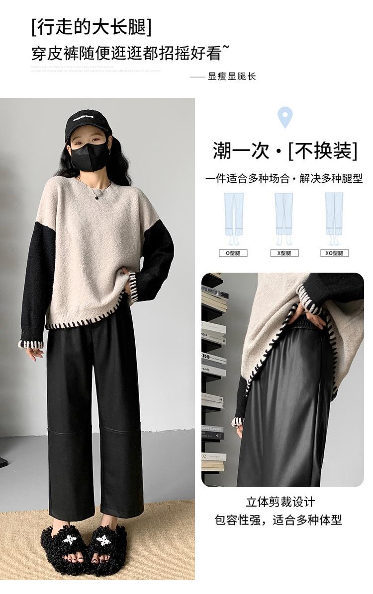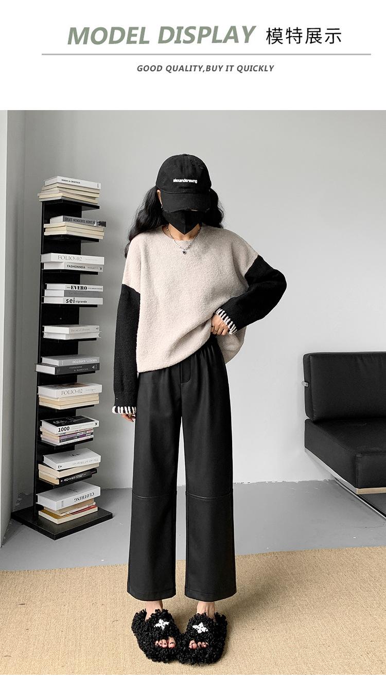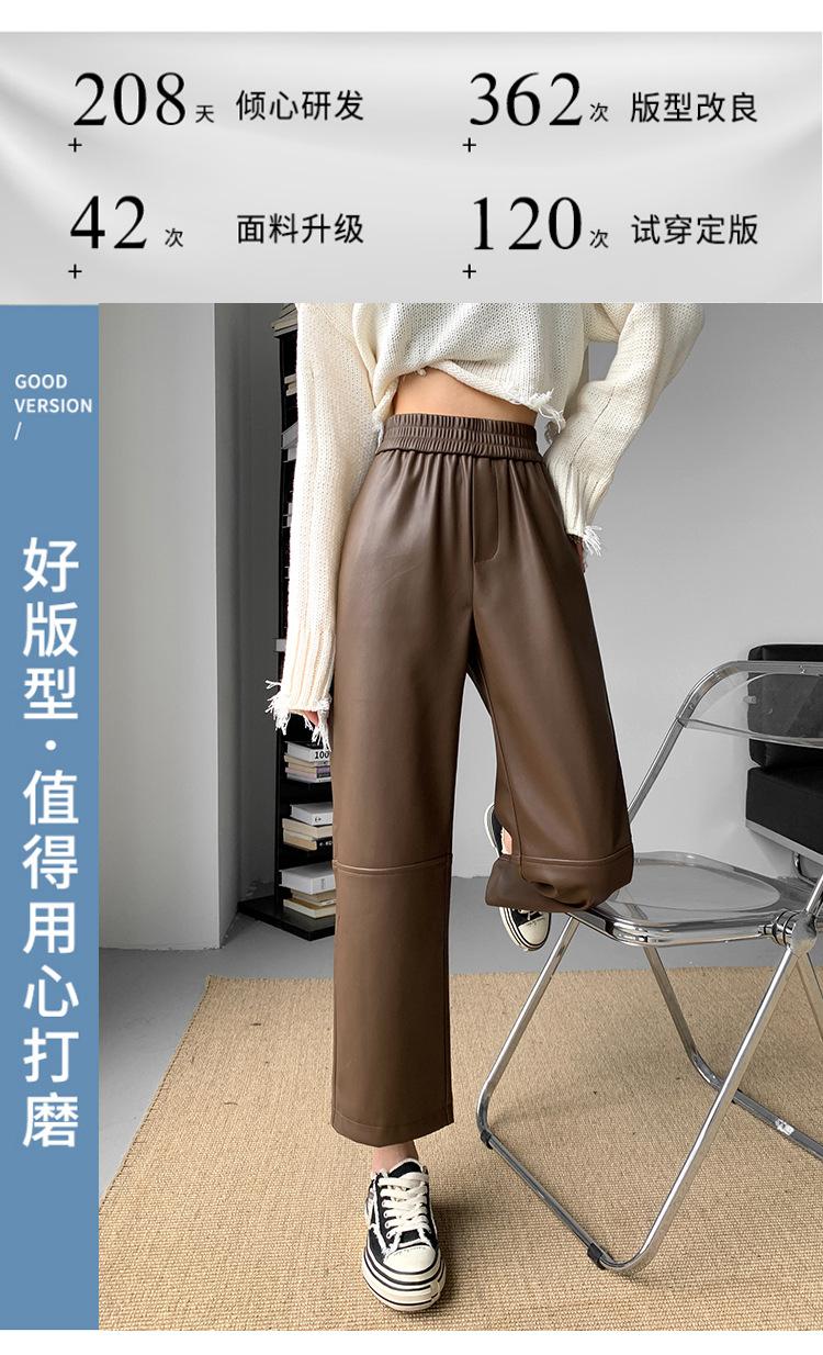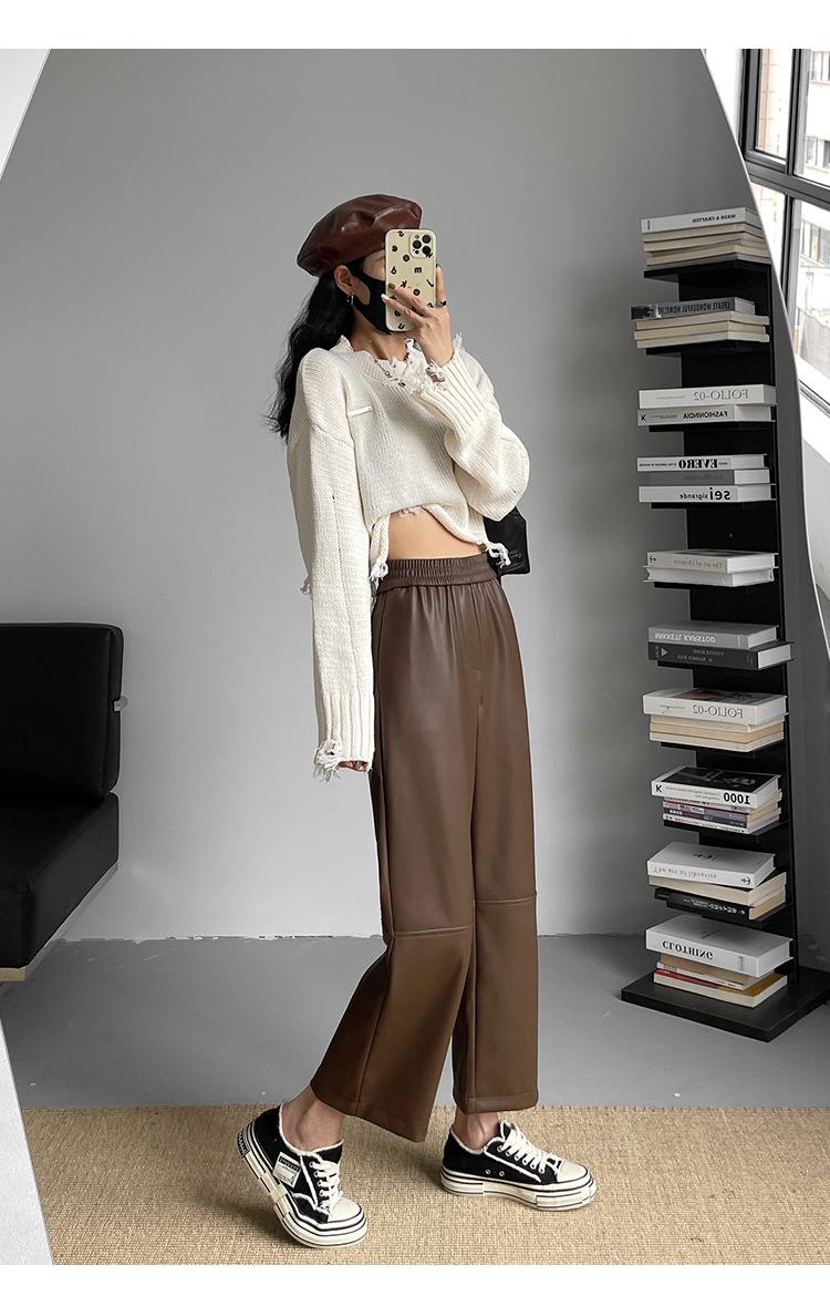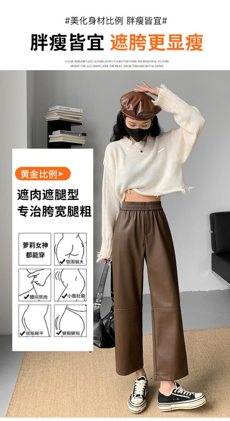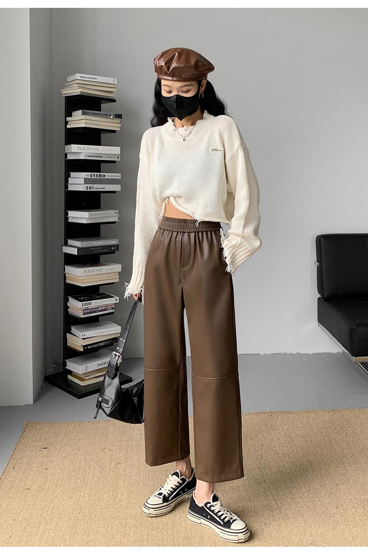 Pantalones negros de cuero sintético para mujer, otoño e invierno 2023, nuevos, de cintura alta, elegantes, de nueve puntos, informales, adelgazantes, rectos y combinables.