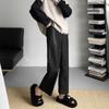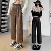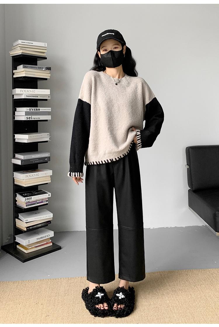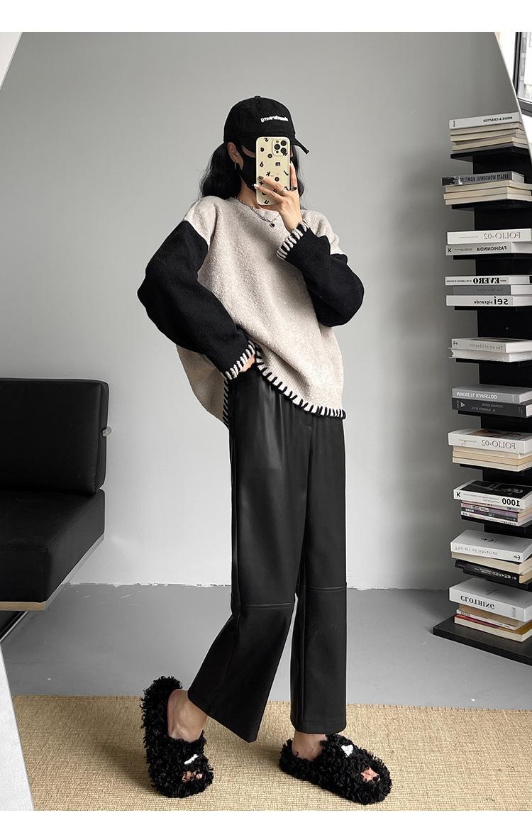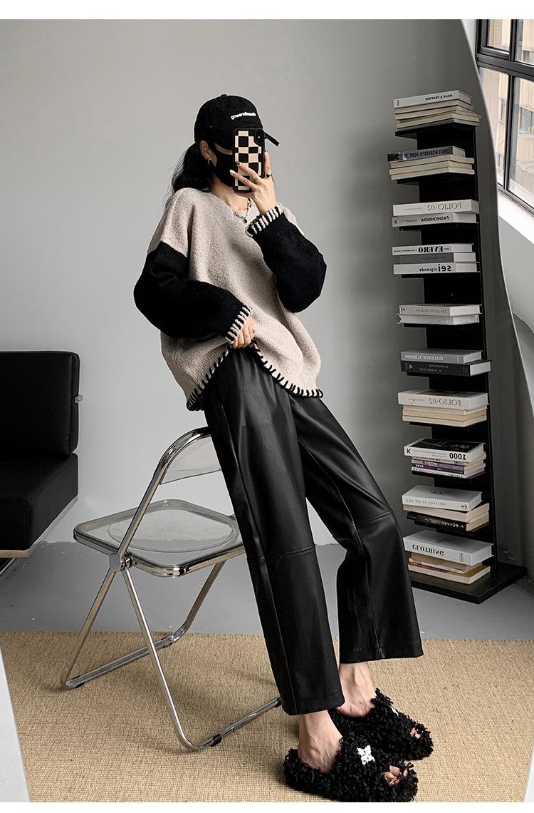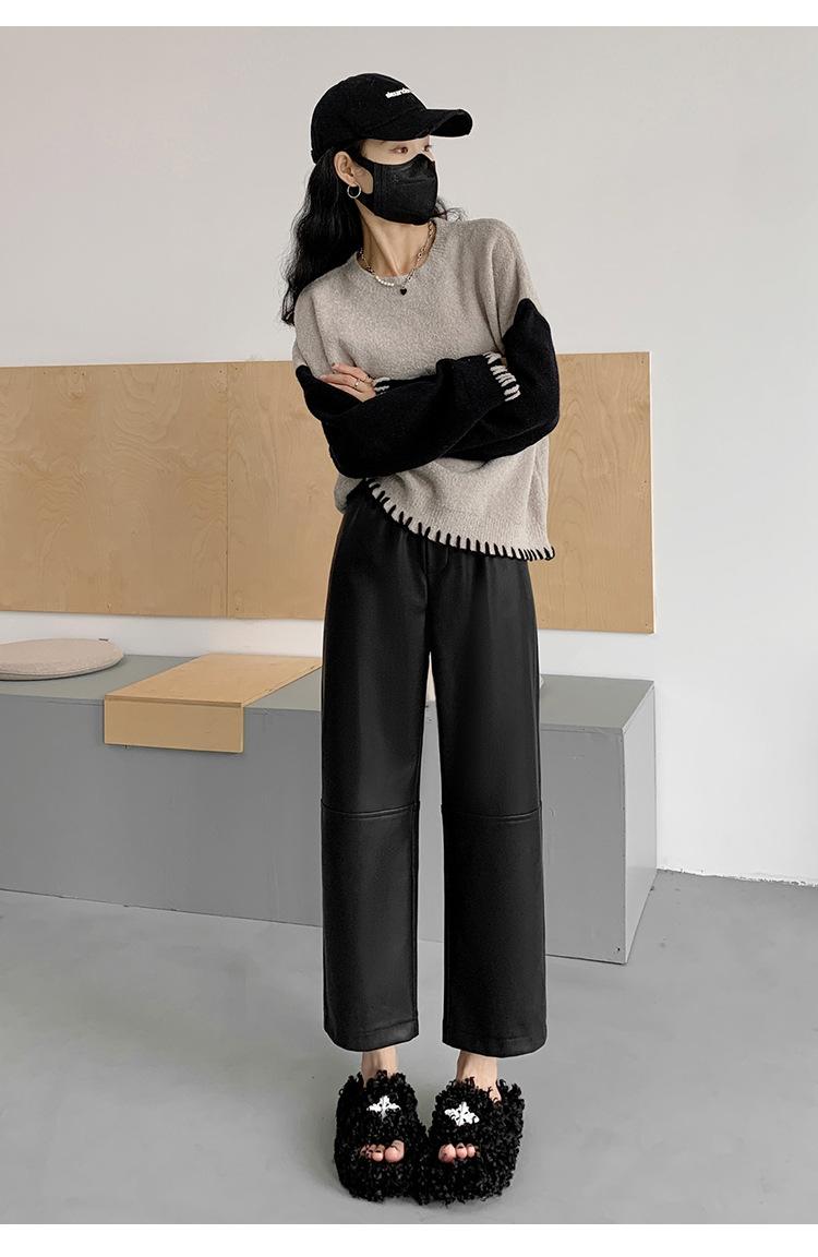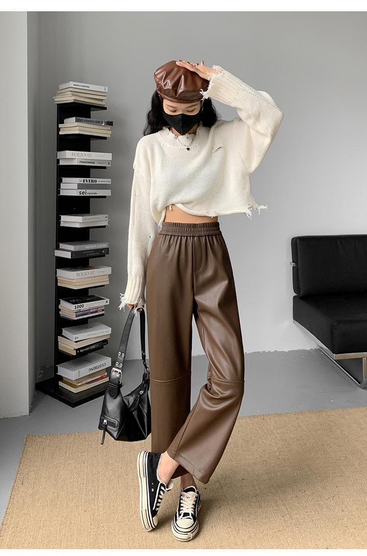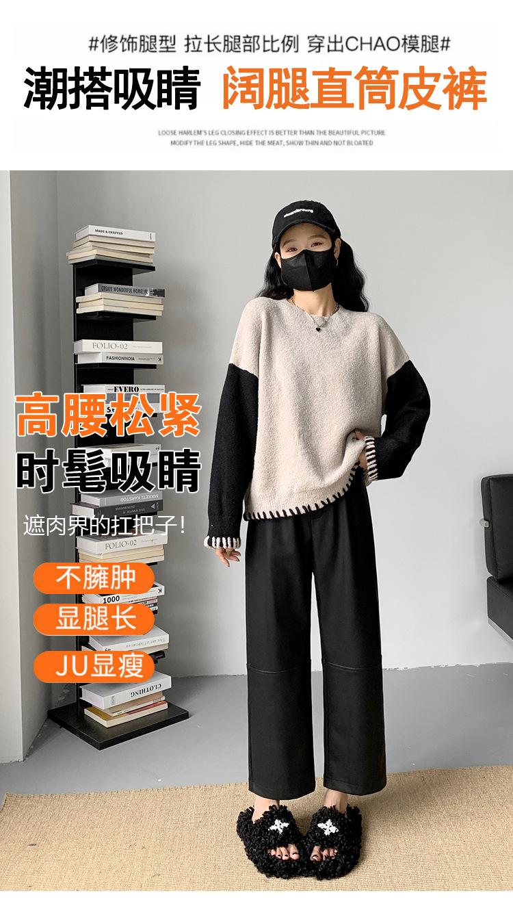 Pantalones negros de cuero sintético para mujer, otoño e invierno 2023, nuevos, de cintura alta, elegantes, de nueve puntos, informales, adelgazantes, rectos y combinables.