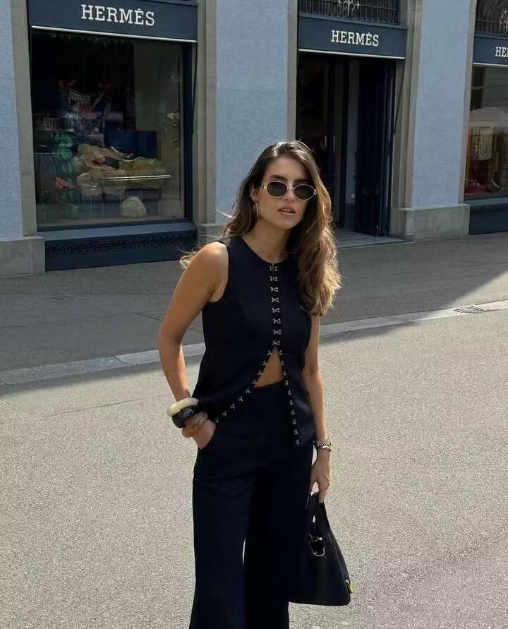 2024 otoño nuevo europeo y americano transfronterizo moda callejera para mujer top chaleco + conjunto de pantalones de traje w0912186