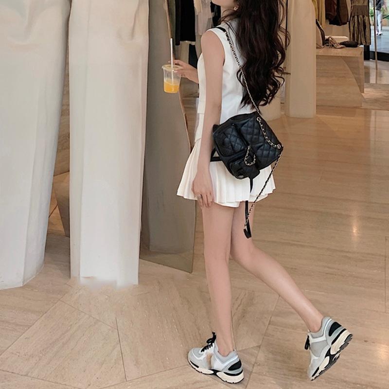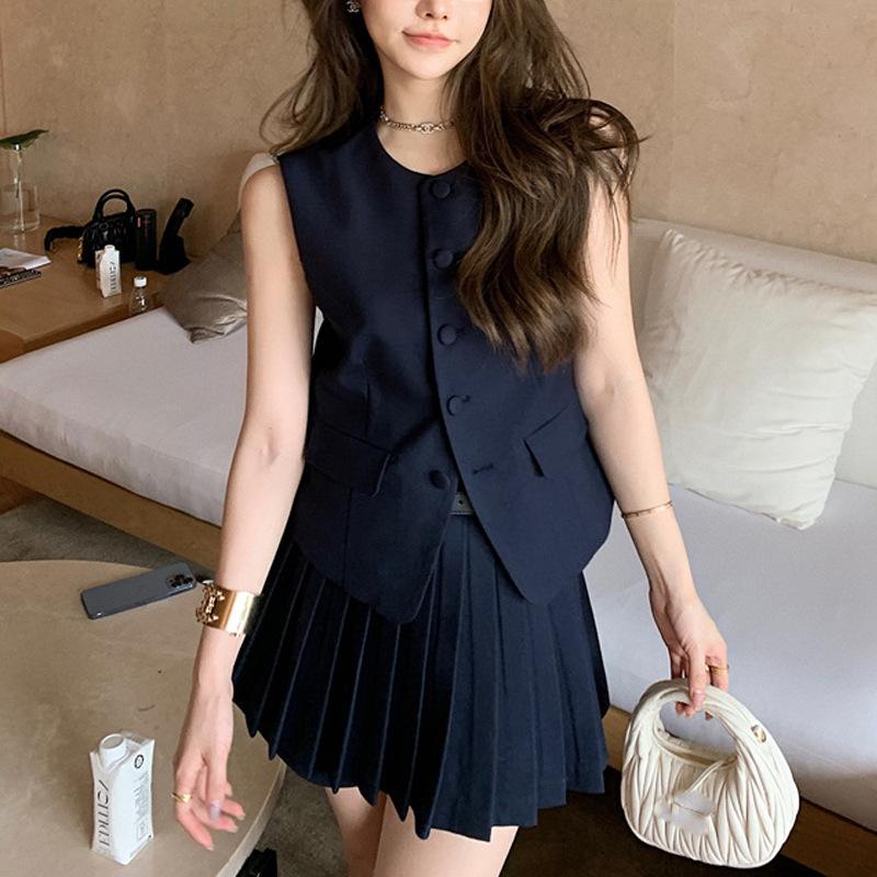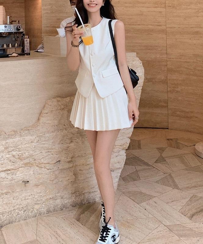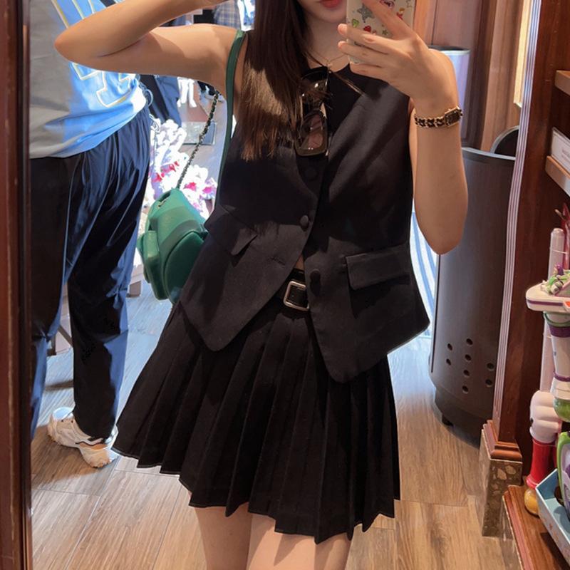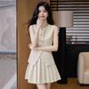 Falda estilo Chanel de verano para mujer, ligera, de lujo, de alta gama, informal, elegante, plisada, conjunto de dos piezas