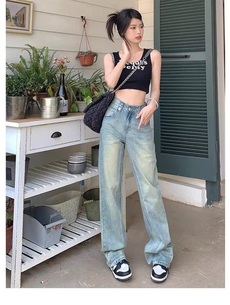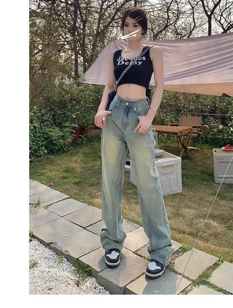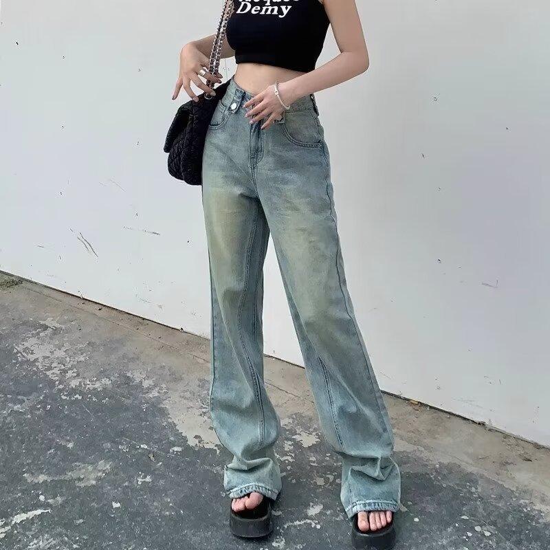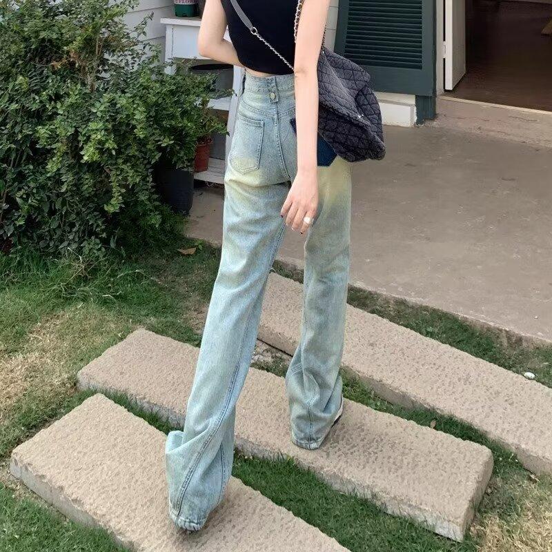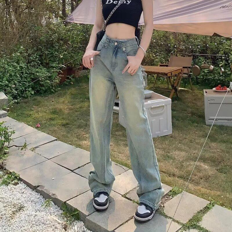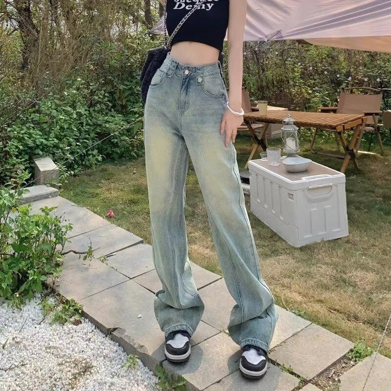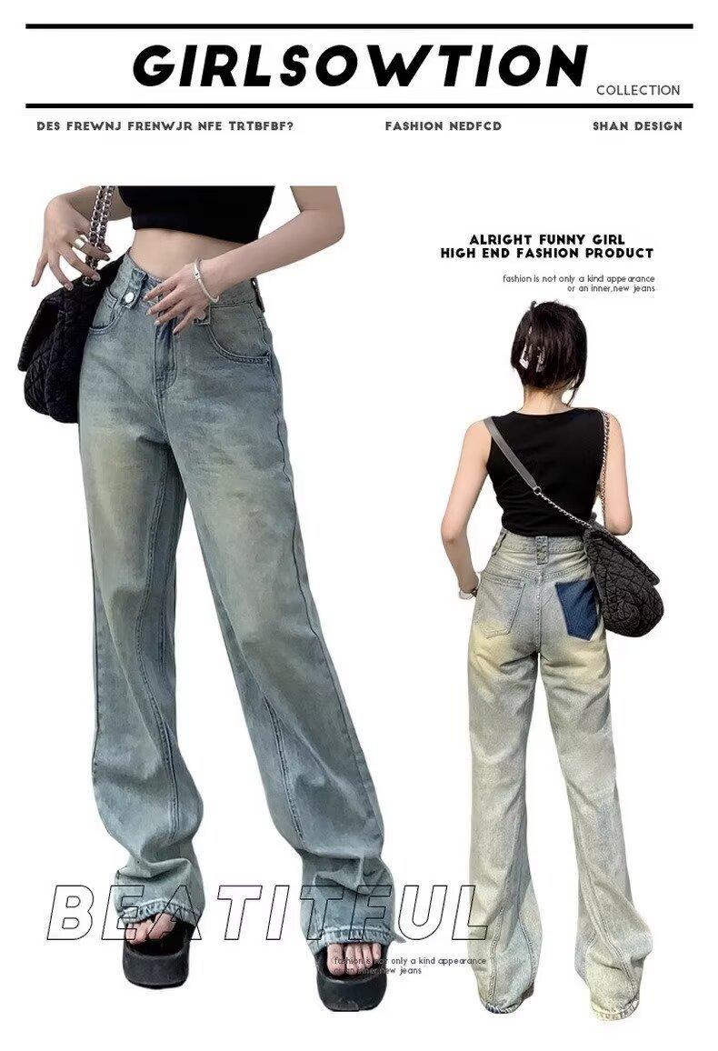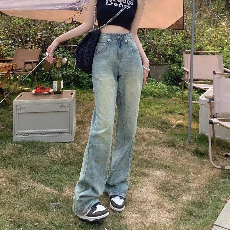 Pantalones vaqueros de pierna ancha con forma de pera para mujer, primavera y otoño, tallas grandes, cintura alta, sueltos, rectos, adelgazantes