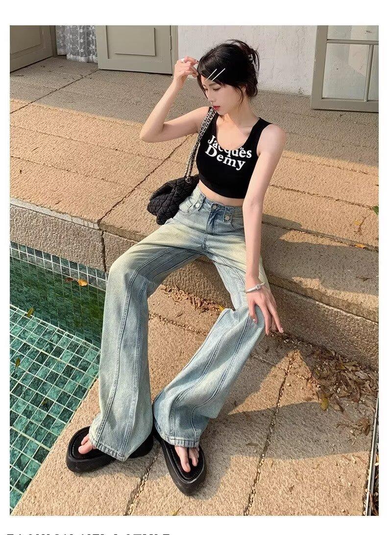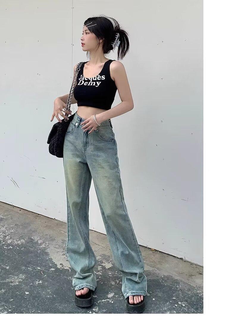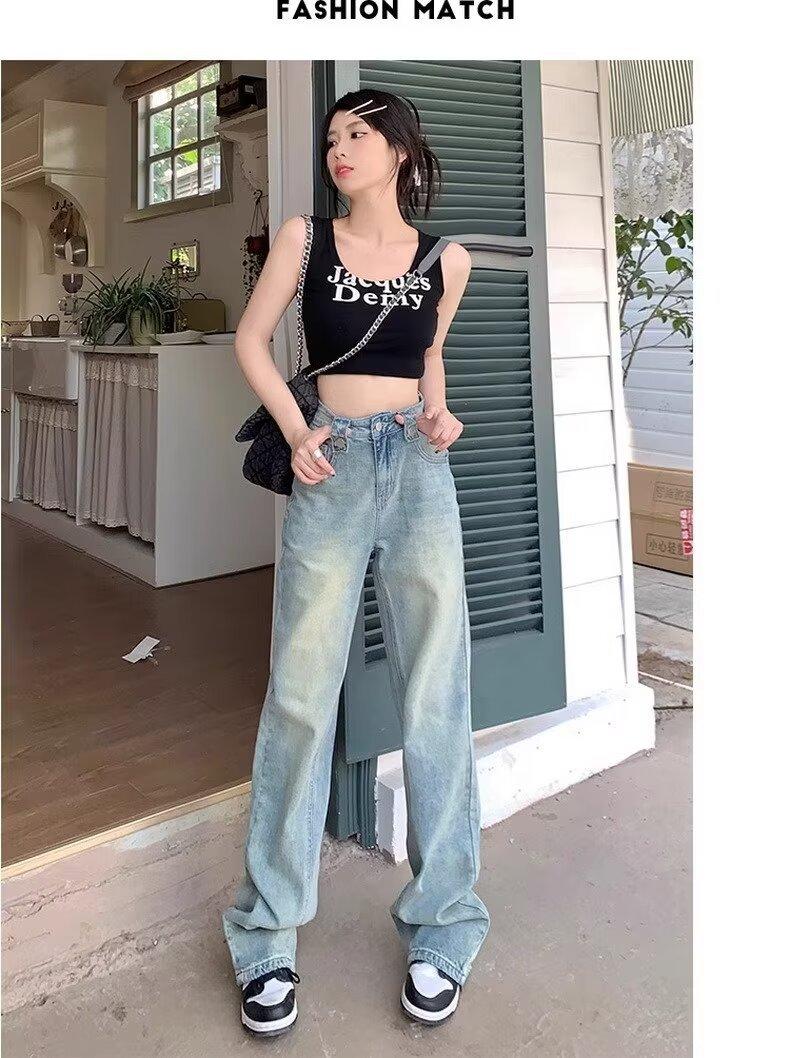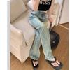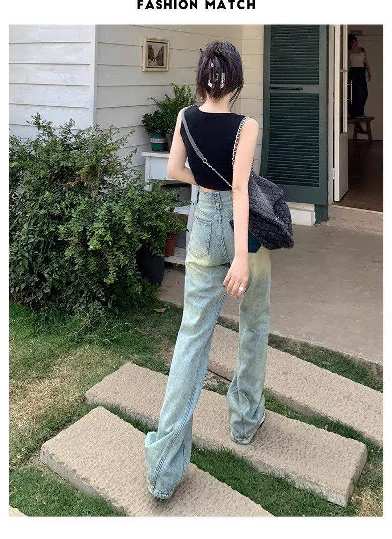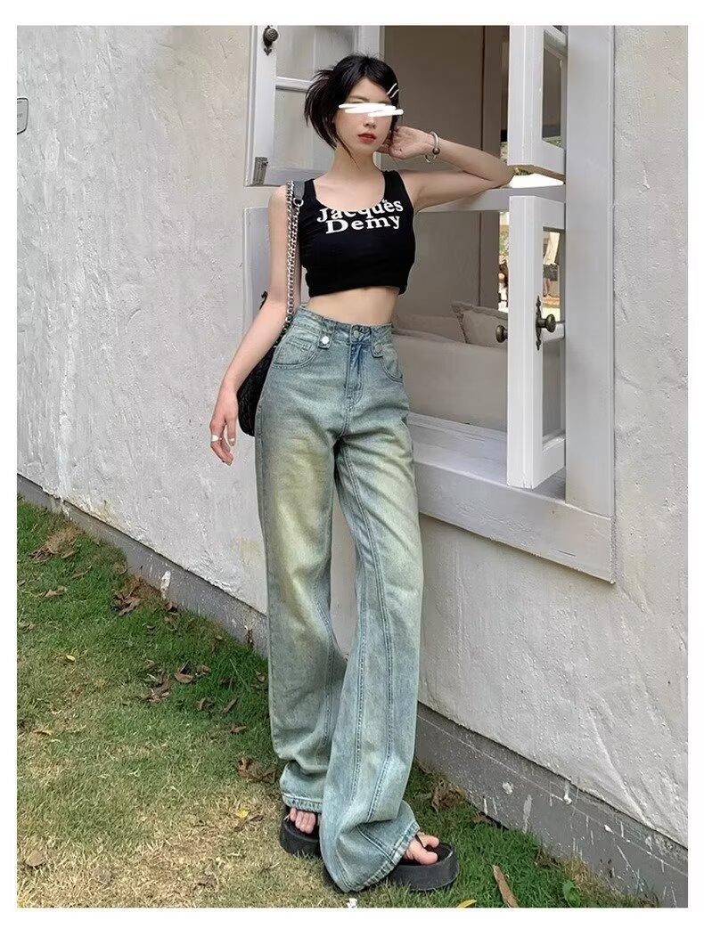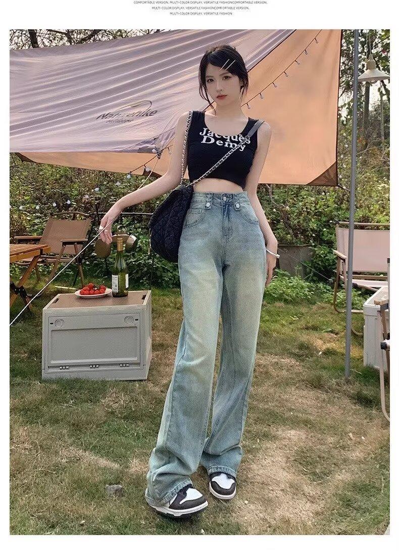 Pantalones vaqueros de pierna ancha con forma de pera para mujer, primavera y otoño, tallas grandes, cintura alta, sueltos, rectos, adelgazantes