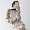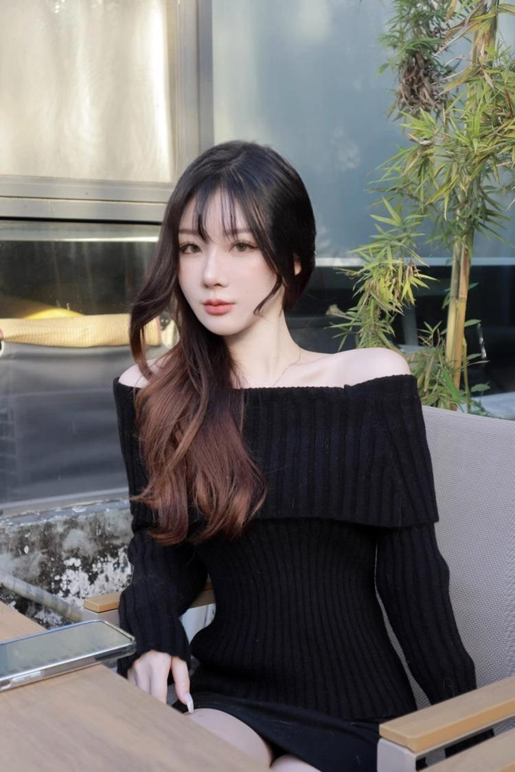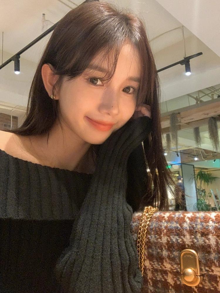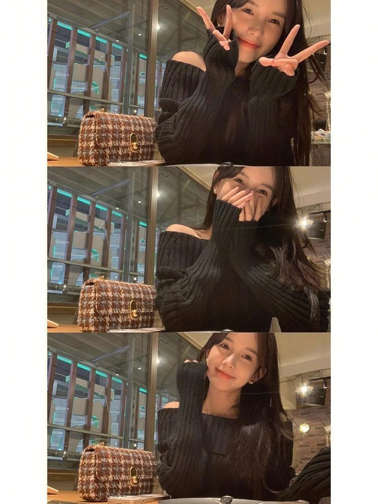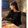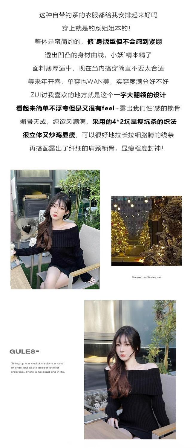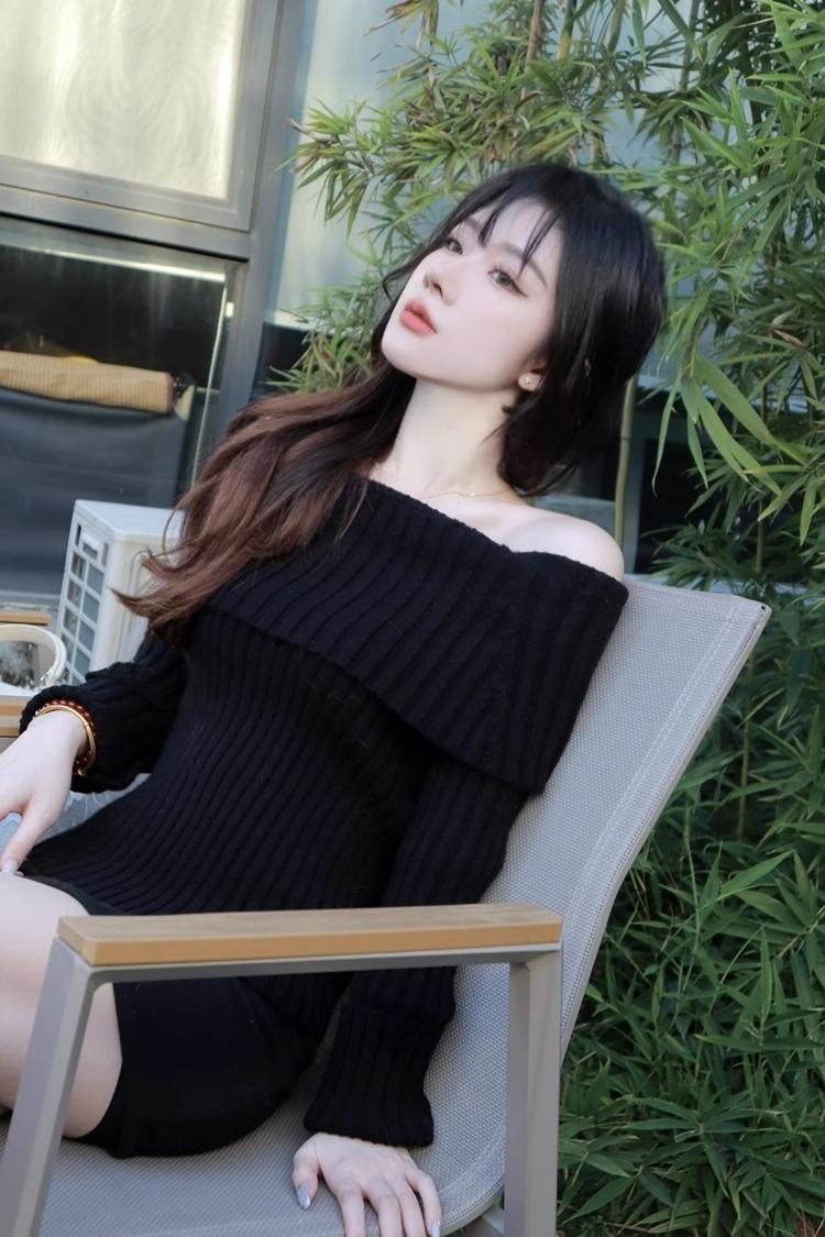 Suéter Negro de un Hombro para Mujer 2023 Otoño e Invierno Nuevo Estilo Estilo Suave y Perezoso Fuera del Hombro Jersey de Manga Larga Top de Punto