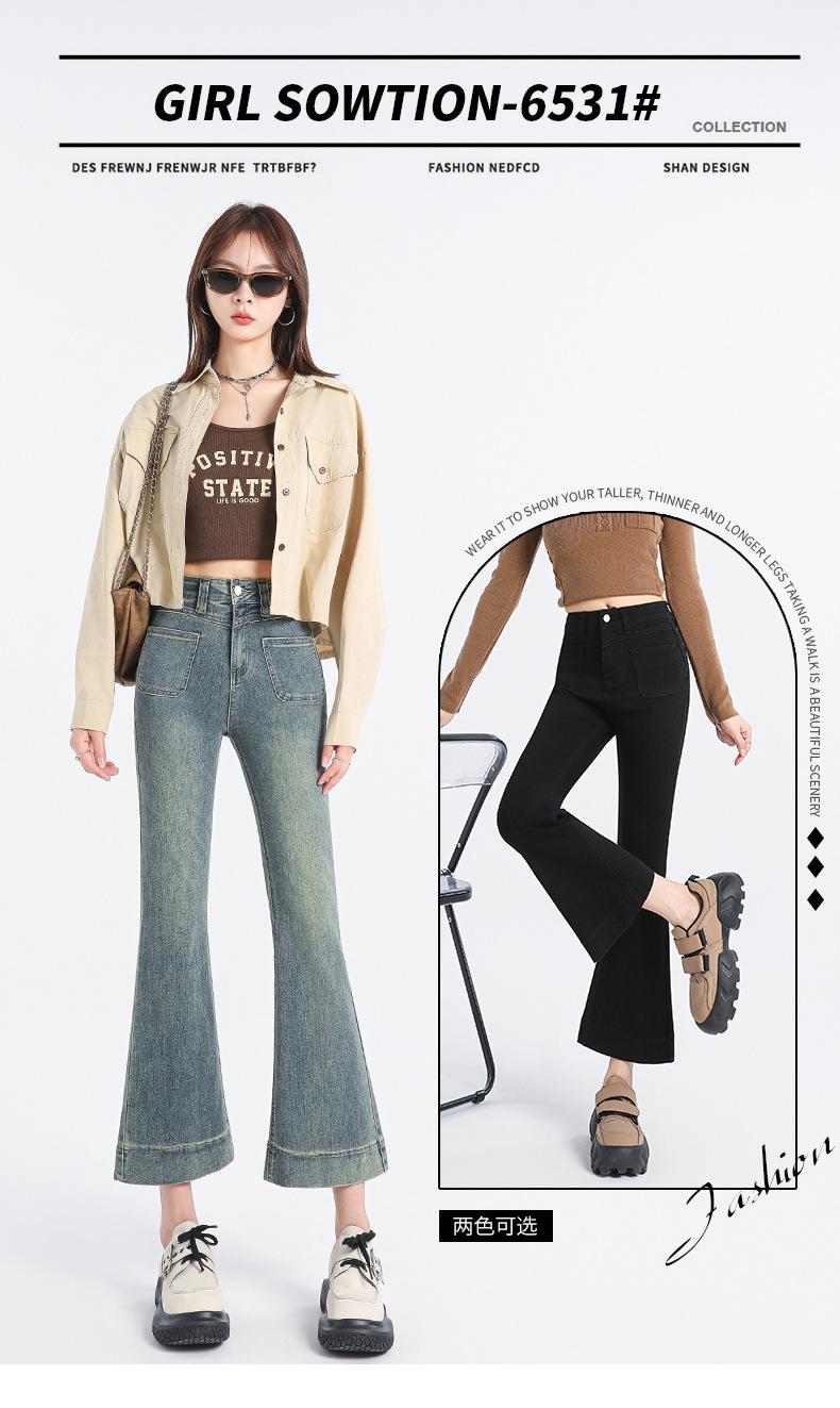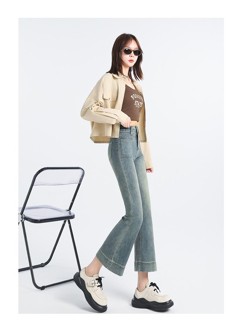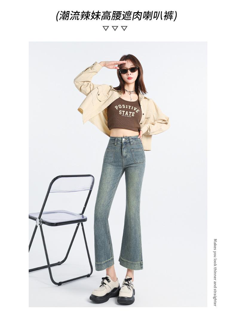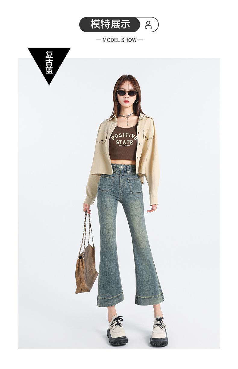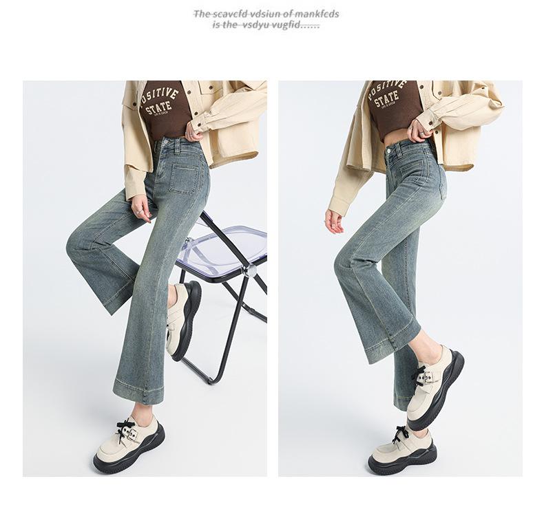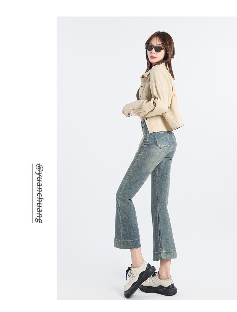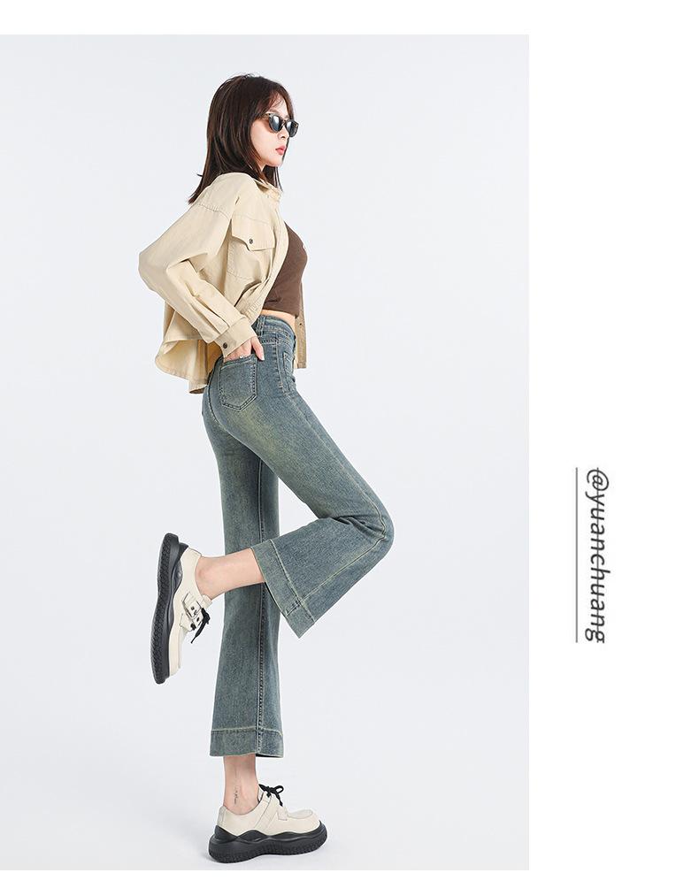 Pantalones Capri de Mezclilla Elástica Small Micro La para Mujer Primavera y Otoño 2024 Cintura Alta Slim Retro Acampanados