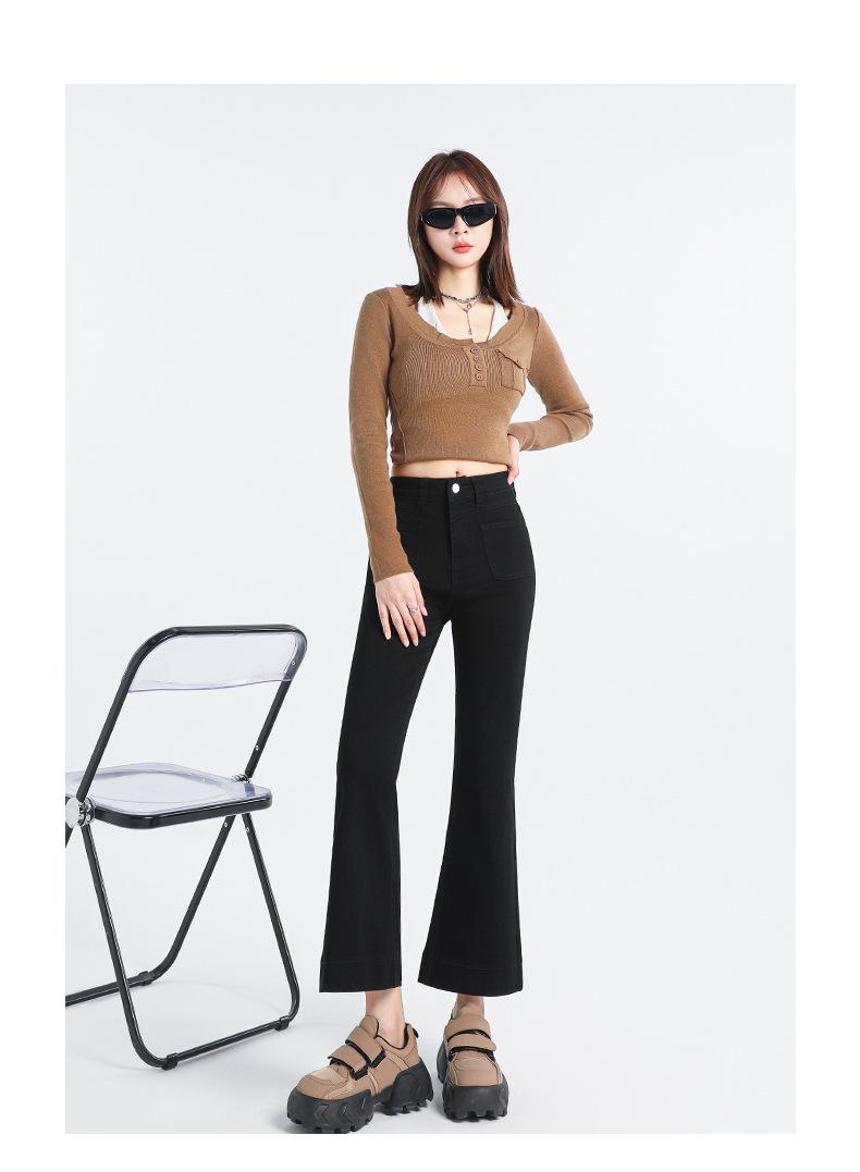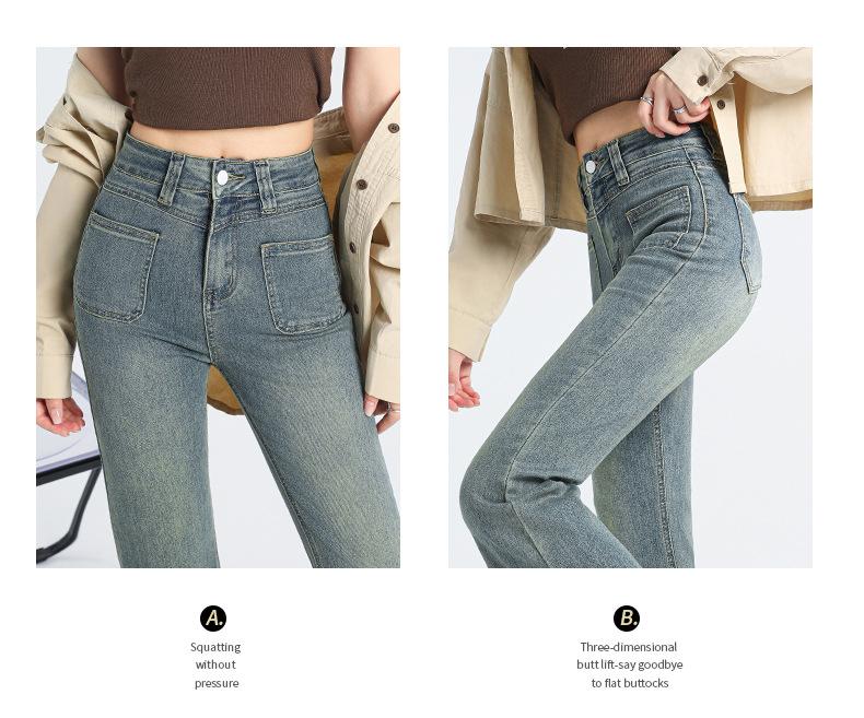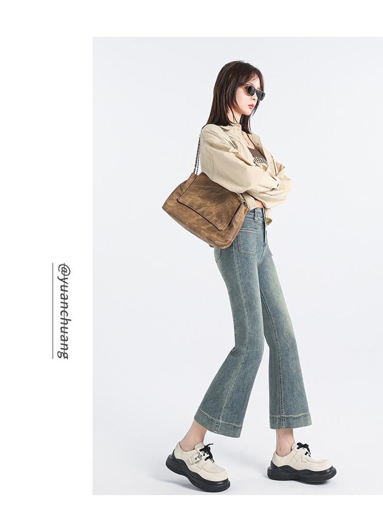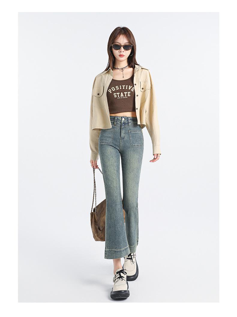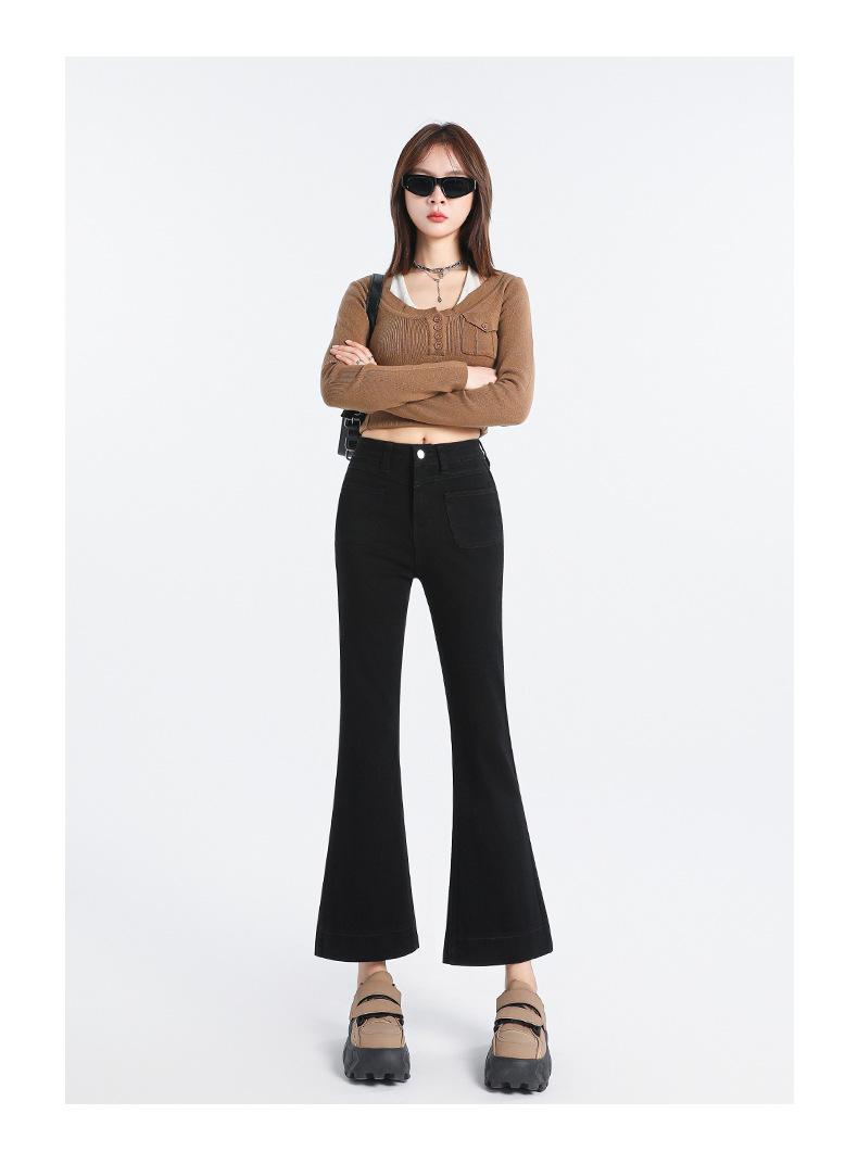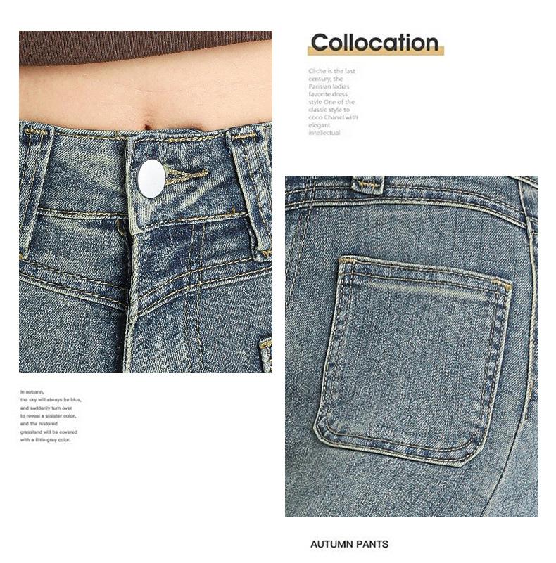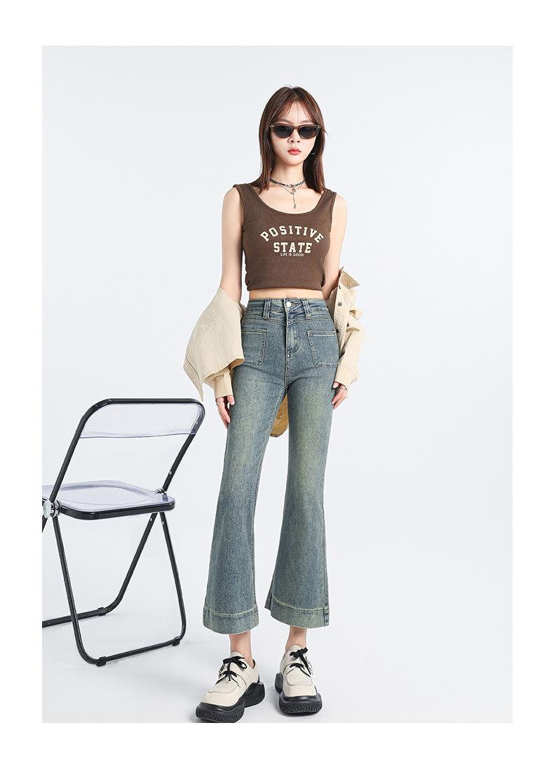 Pantalones Capri de Mezclilla Elástica Small Micro La para Mujer Primavera y Otoño 2024 Cintura Alta Slim Retro Acampanados
