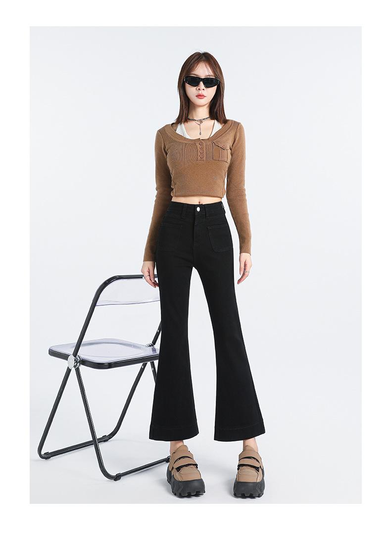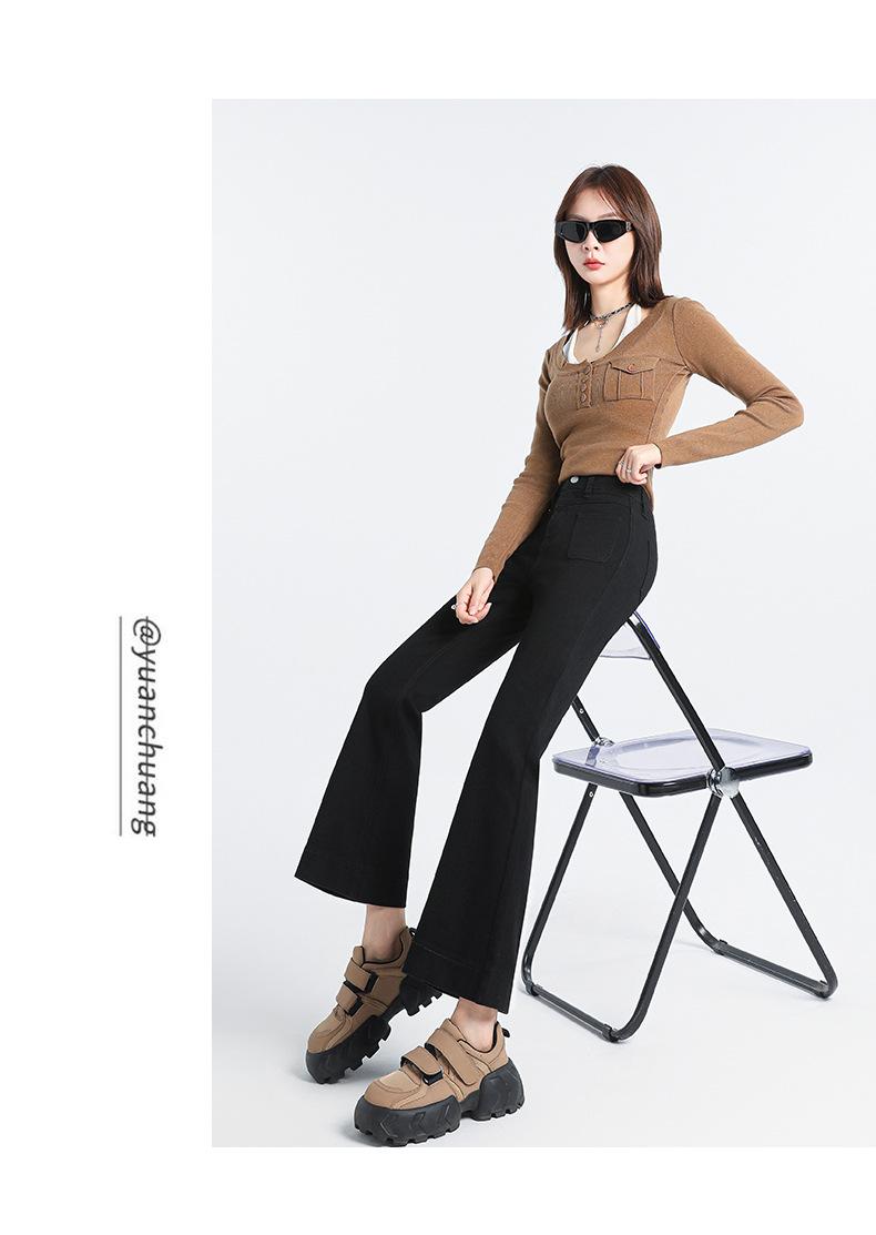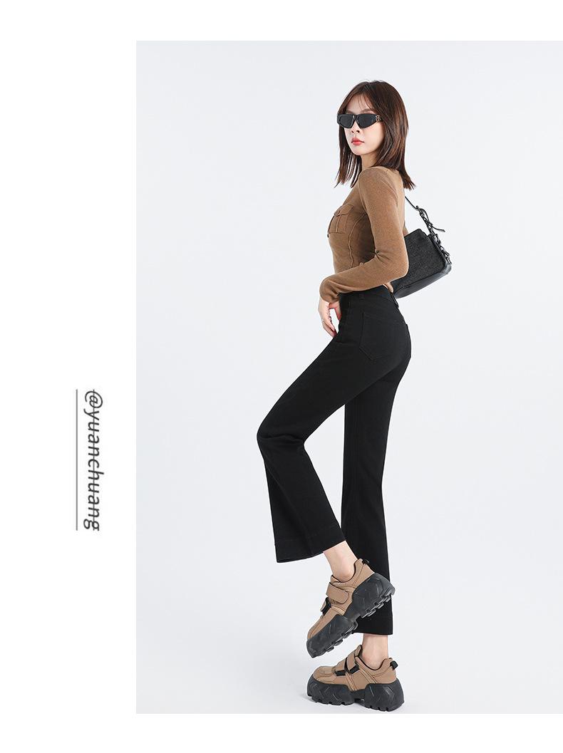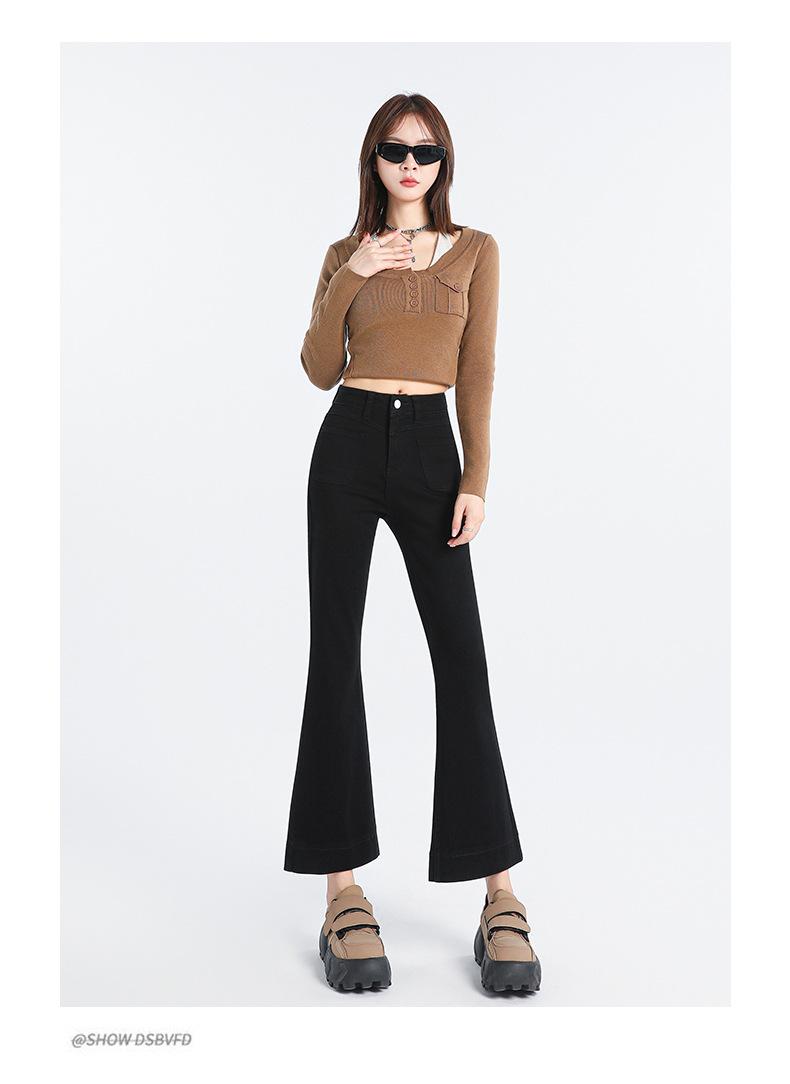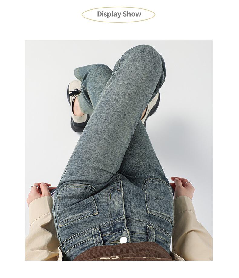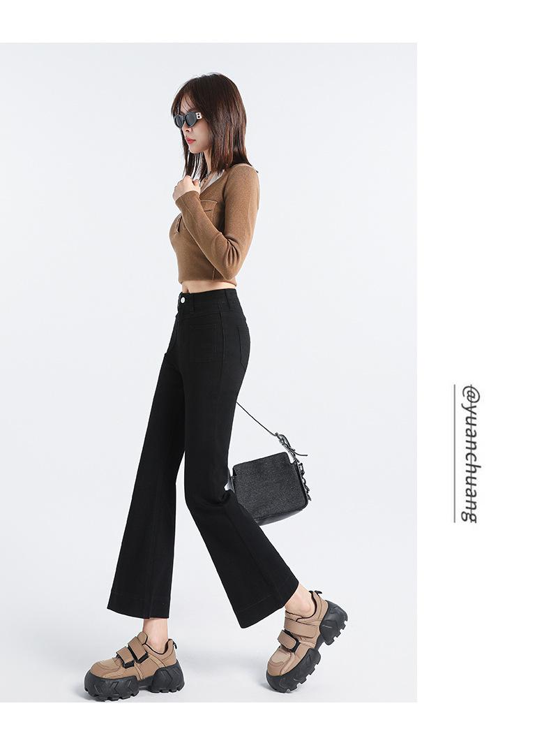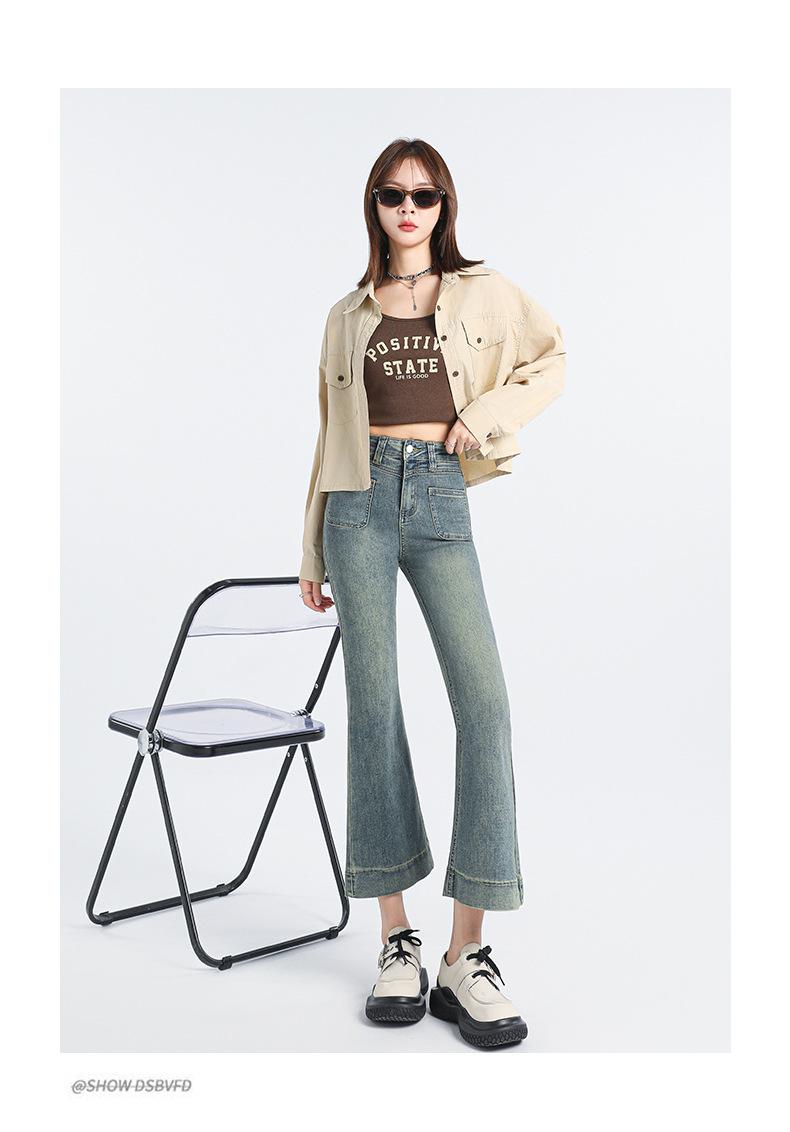 Pantalones Capri de Mezclilla Elástica Small Micro La para Mujer Primavera y Otoño 2024 Cintura Alta Slim Retro Acampanados