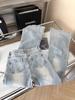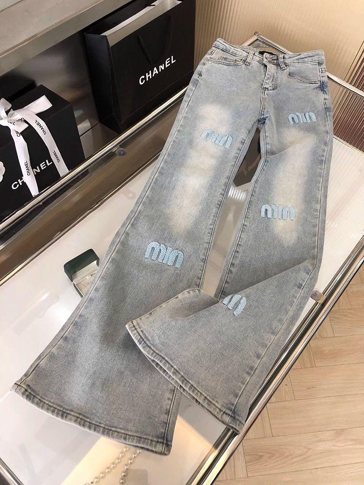 Pantalones vaqueros ajustados de cintura alta para mujer, primavera y otoño 2024, con microblazer bordado en azul