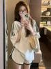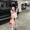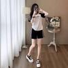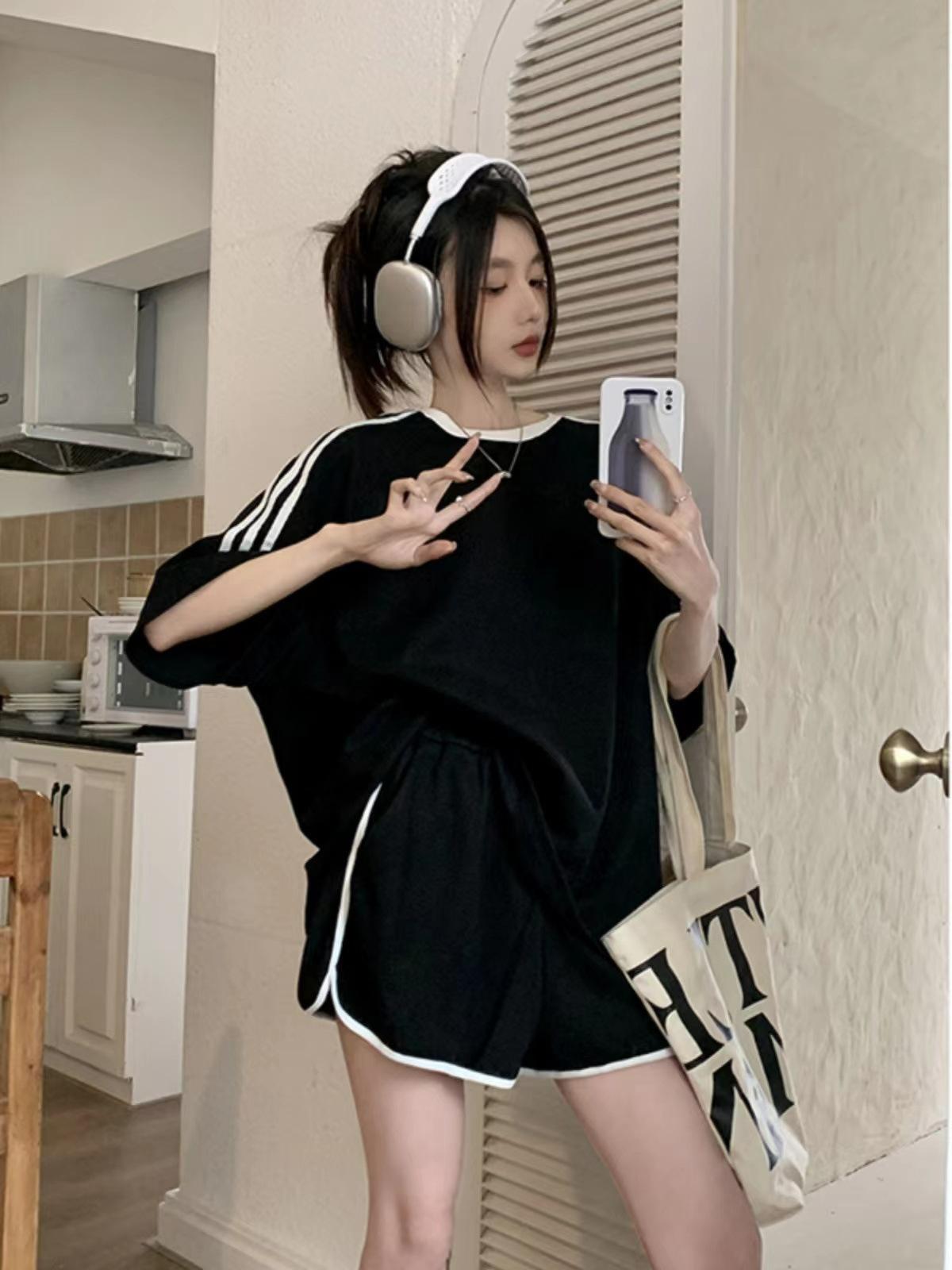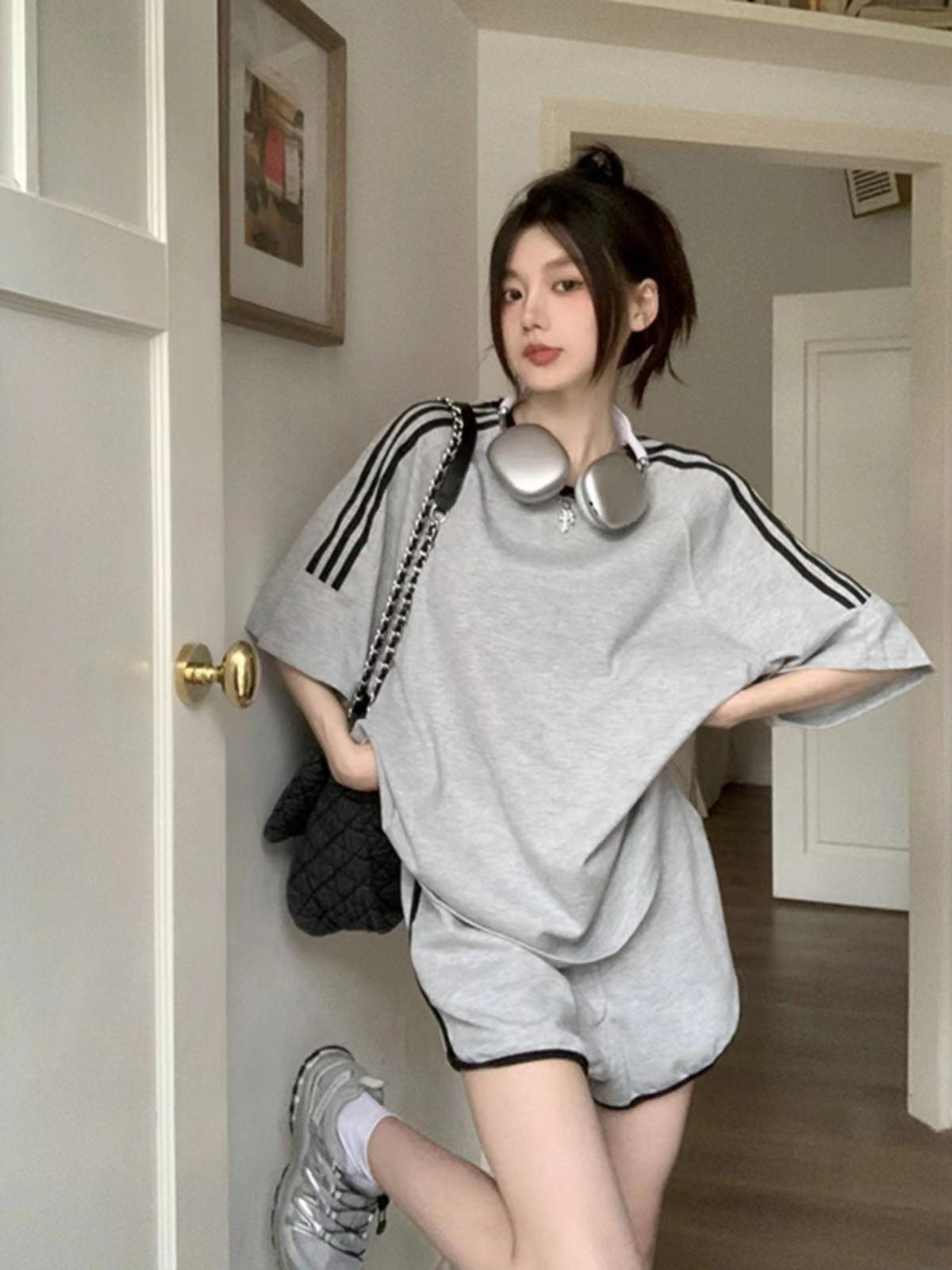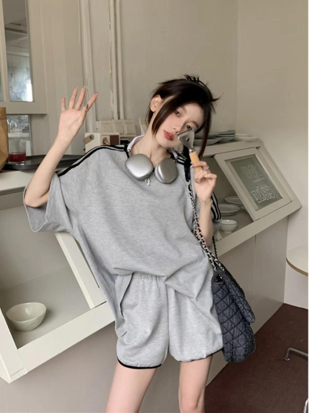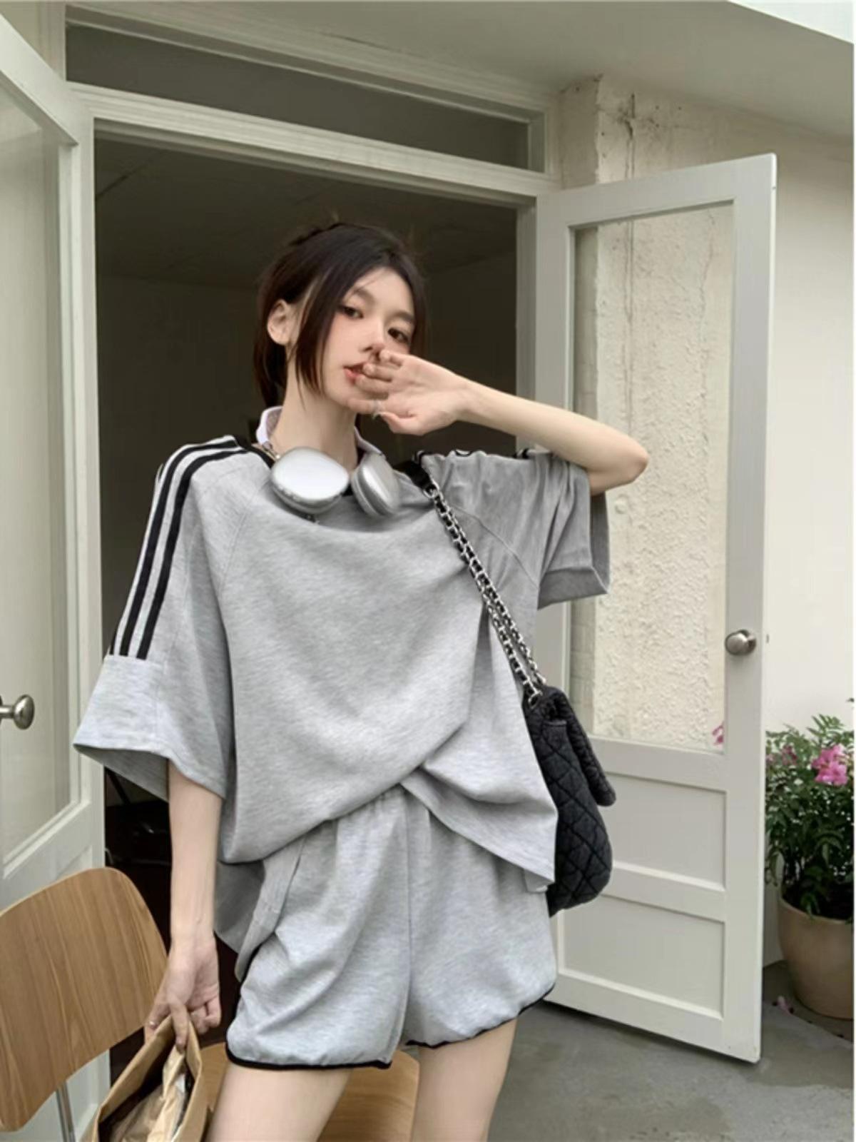 2025 Verano Nuevo Estilo Perezoso Traje Deportivo para Mujer Cuello Redondo Colorido Combinable Camiseta Holgada Traje Casual de Shorts