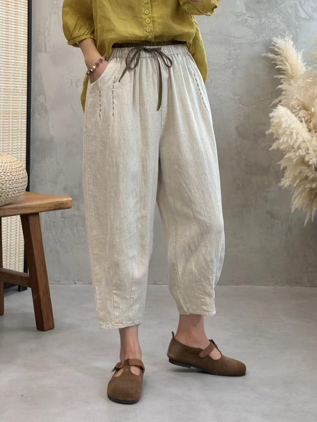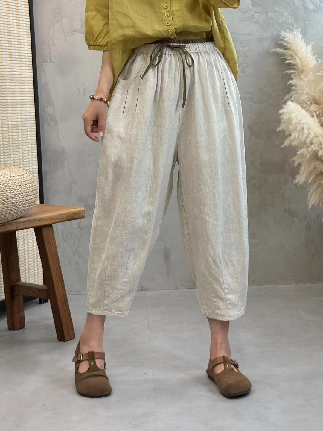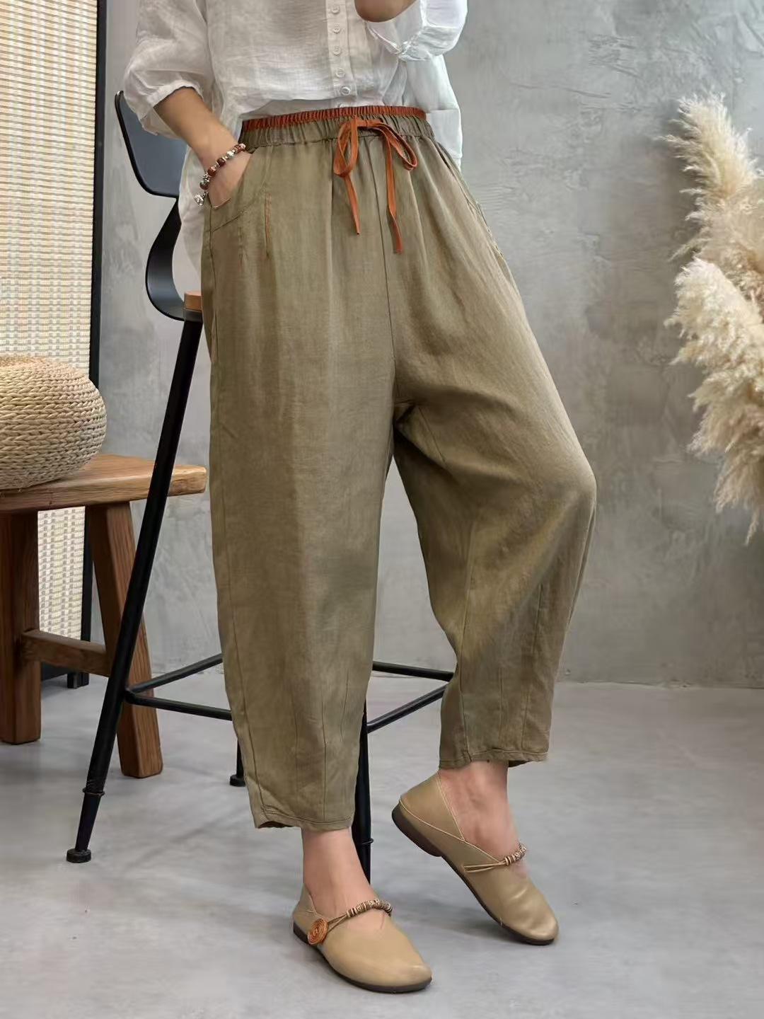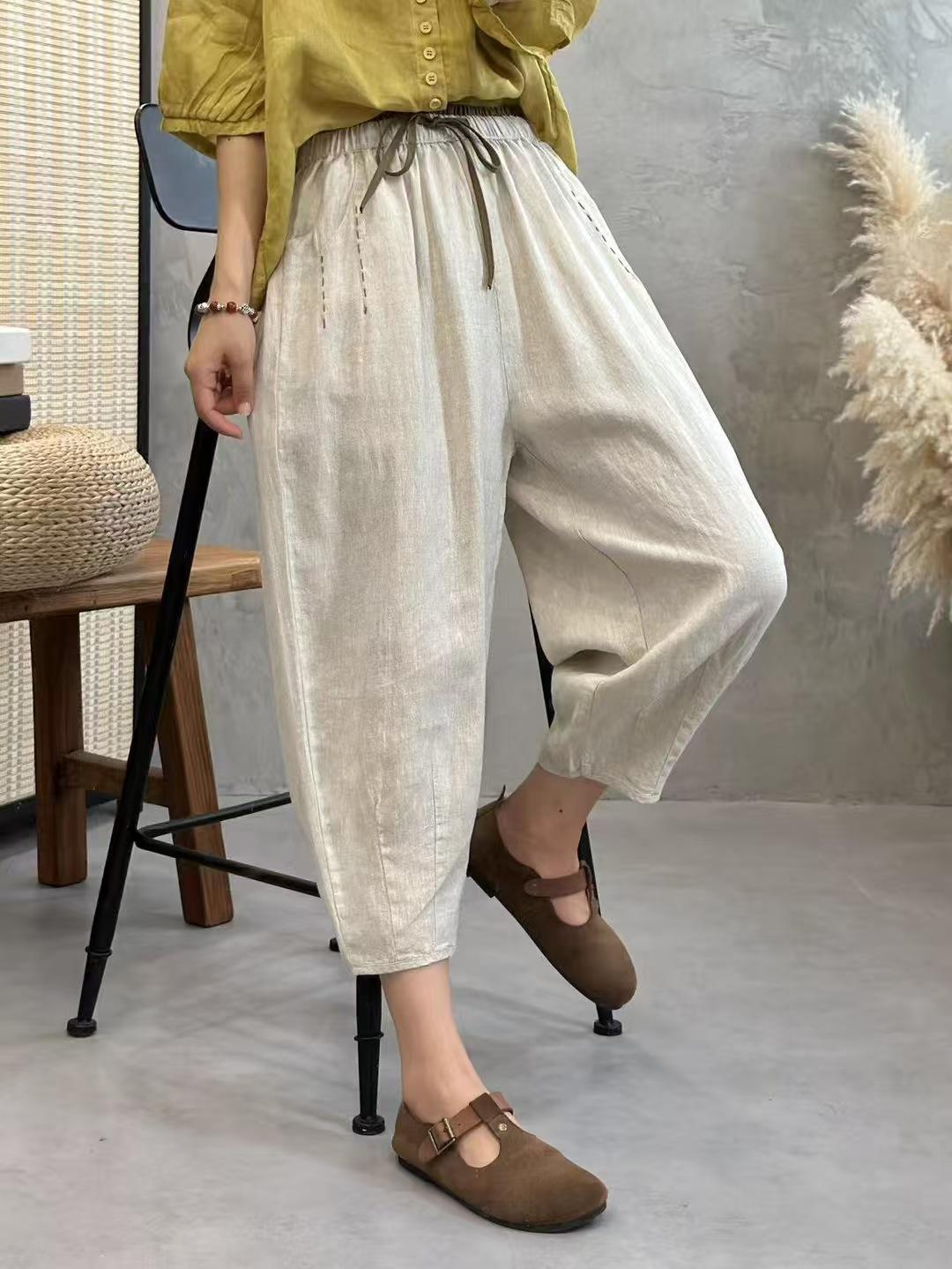 Pantalones Hallen de Lino Fino 2025 Verano Retro Adelgazantes Sueltos Pierna Ancha con Cordones Combinan con Todo Pantalones Casuales Pantalones Capri para Mujer
