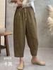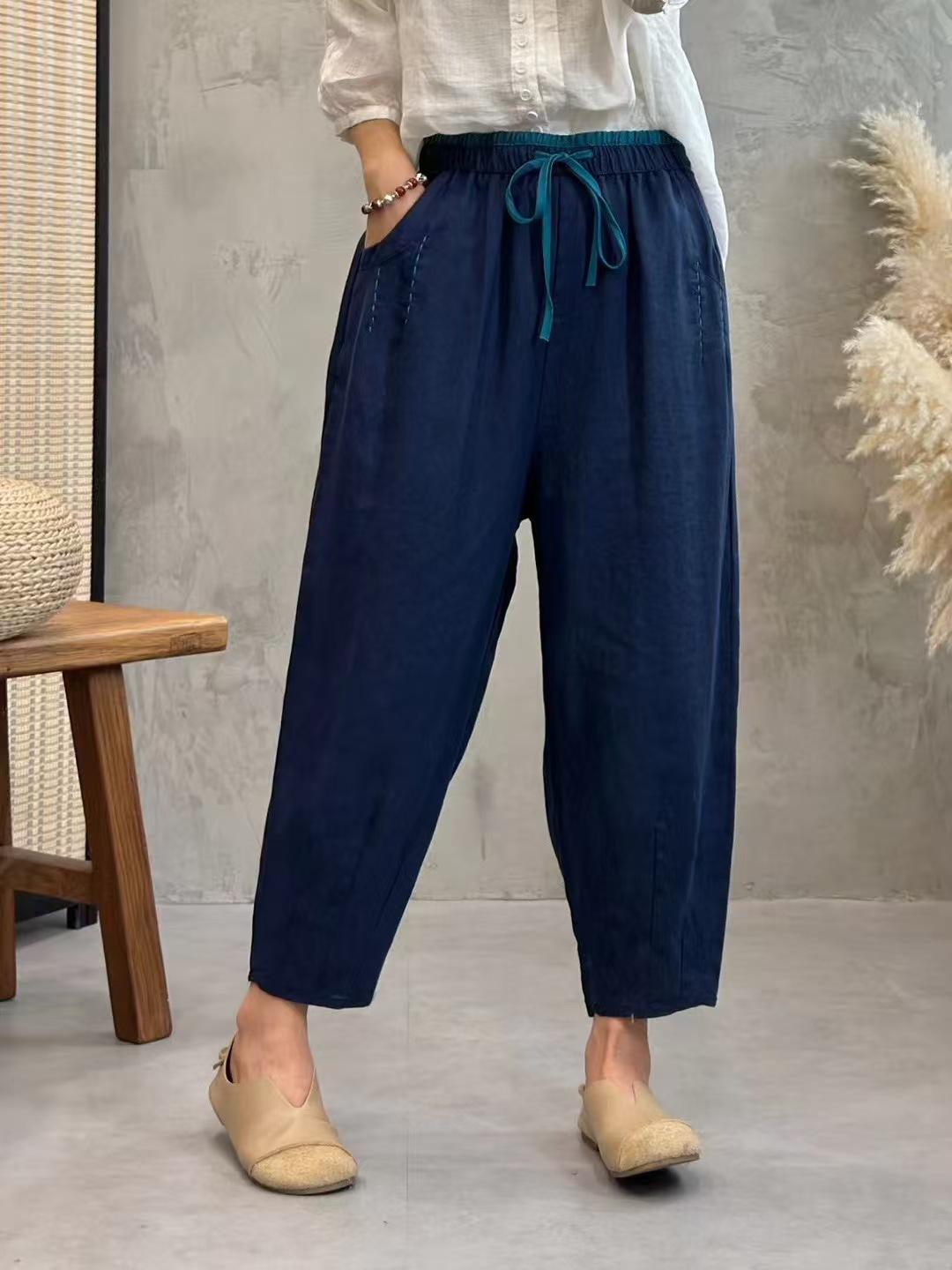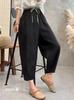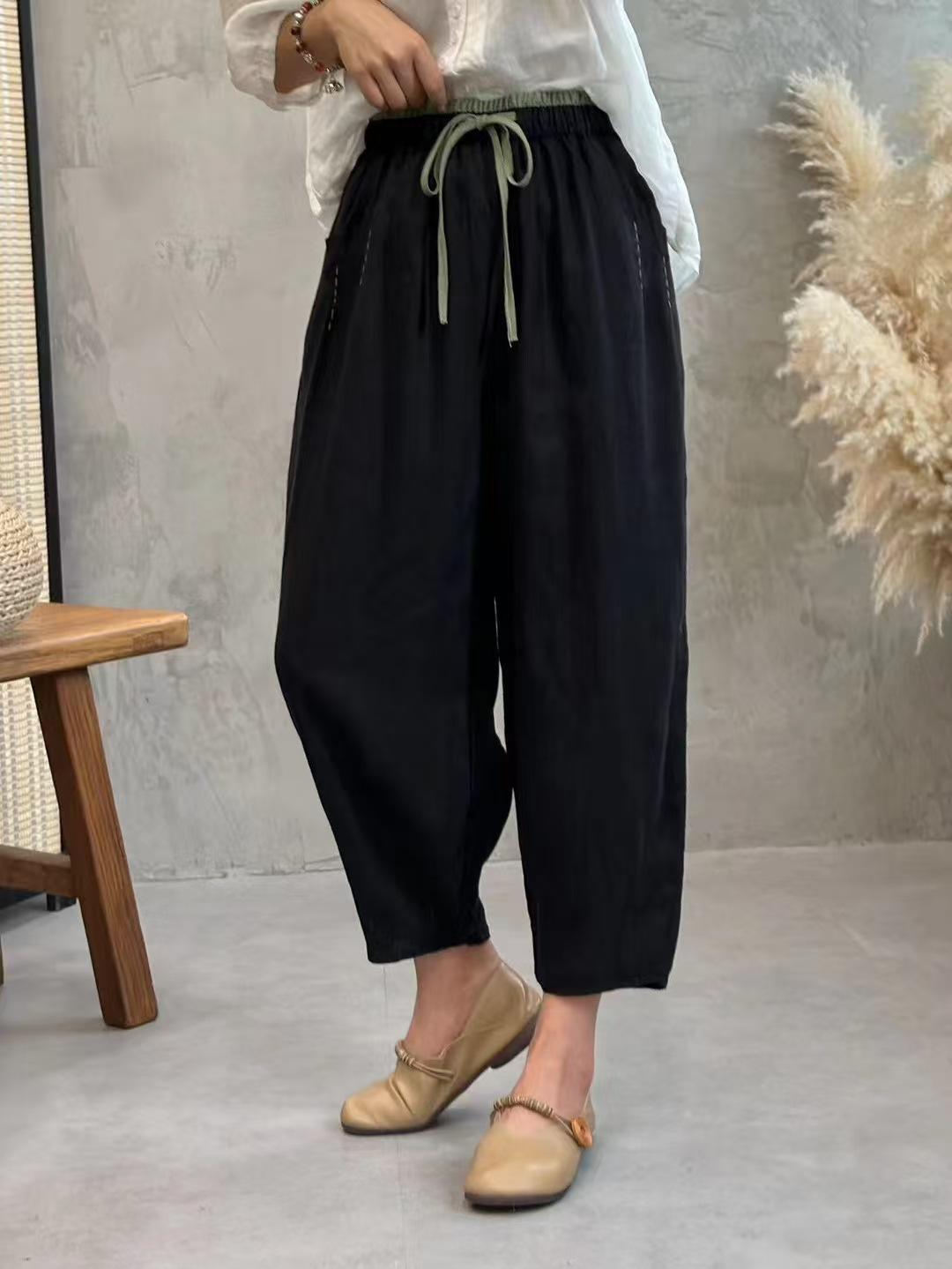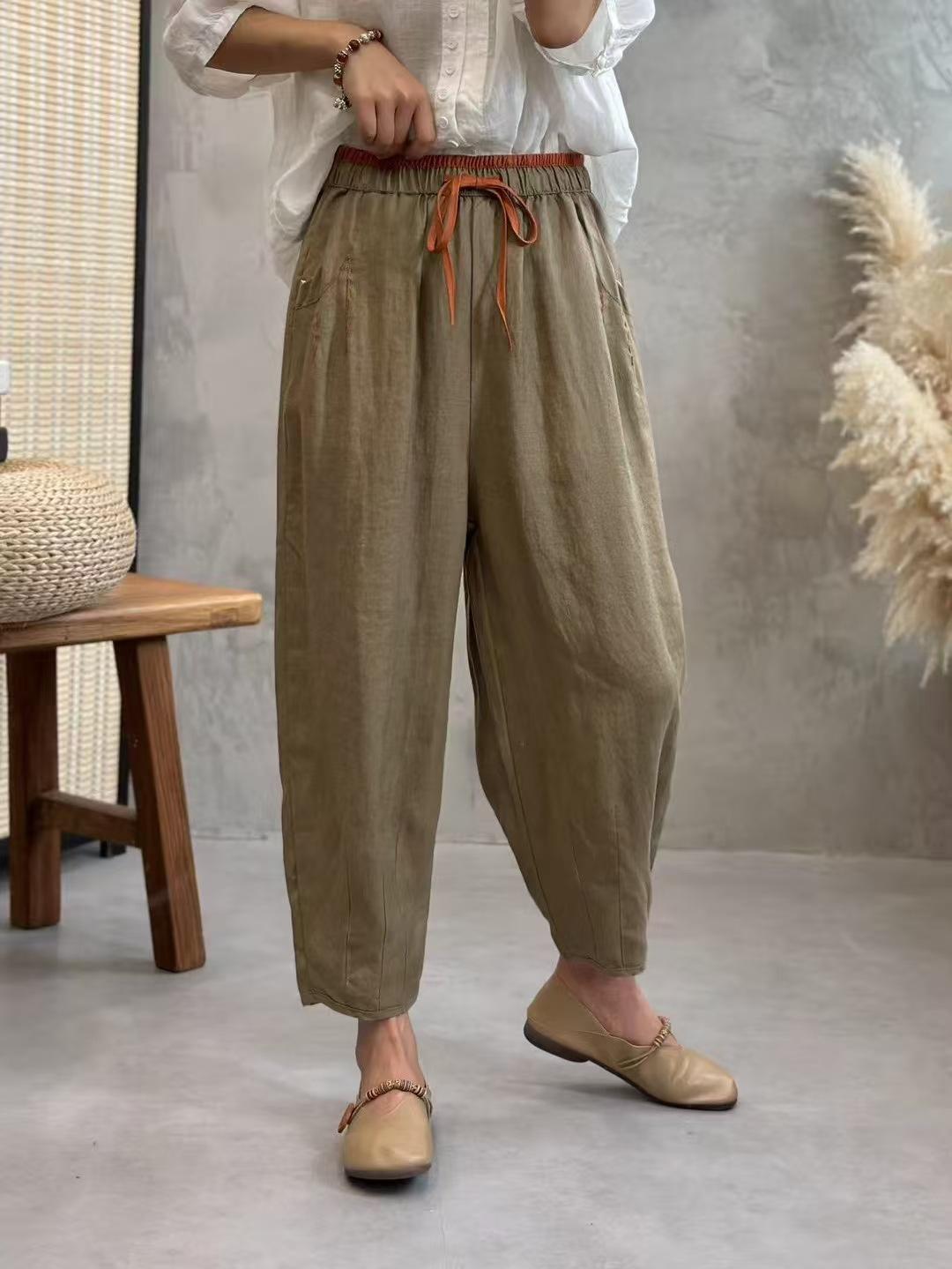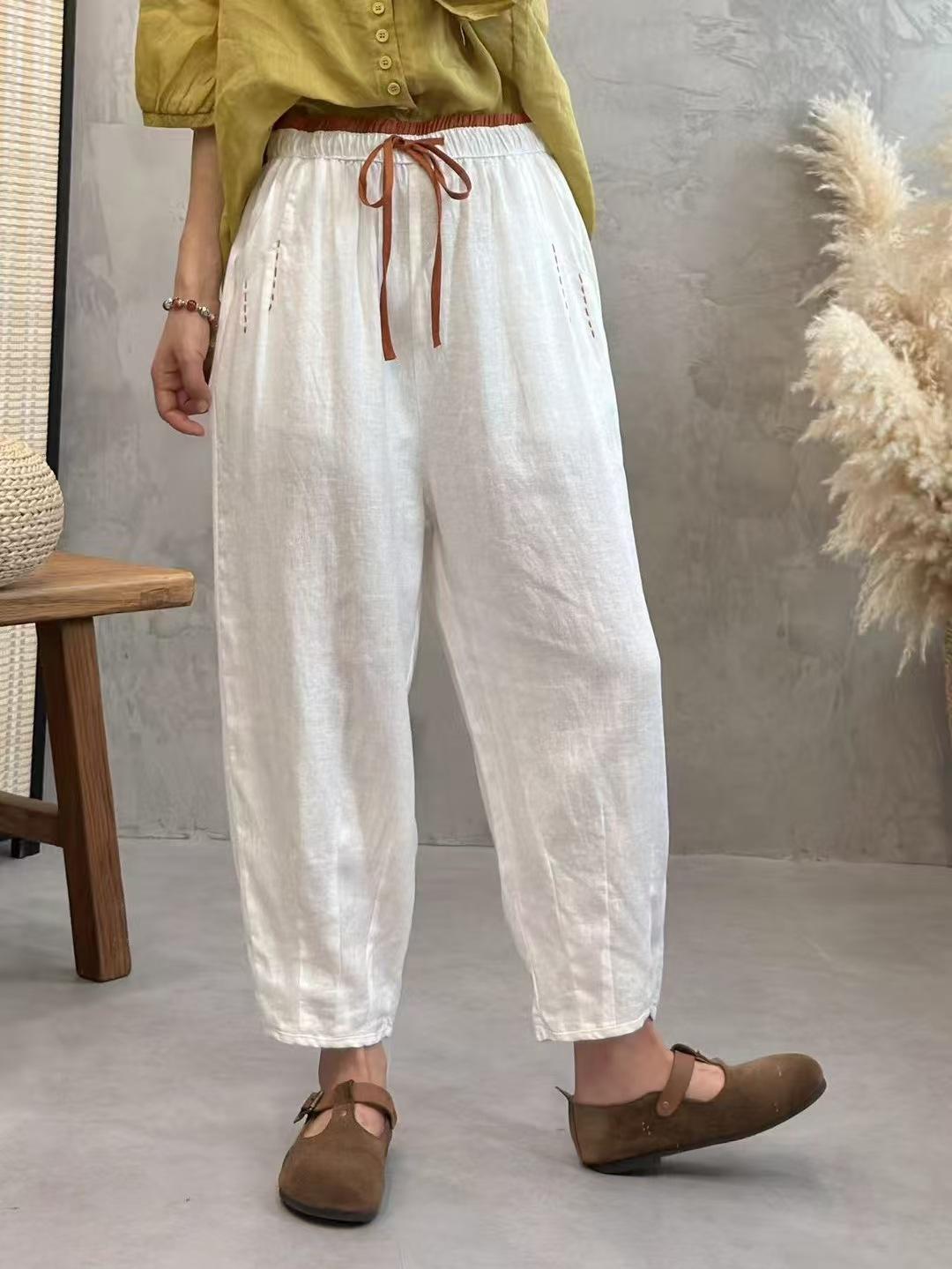 Pantalones Hallen de Lino Fino 2025 Verano Retro Adelgazantes Sueltos Pierna Ancha con Cordones Combinan con Todo Pantalones Casuales Pantalones Capri para Mujer