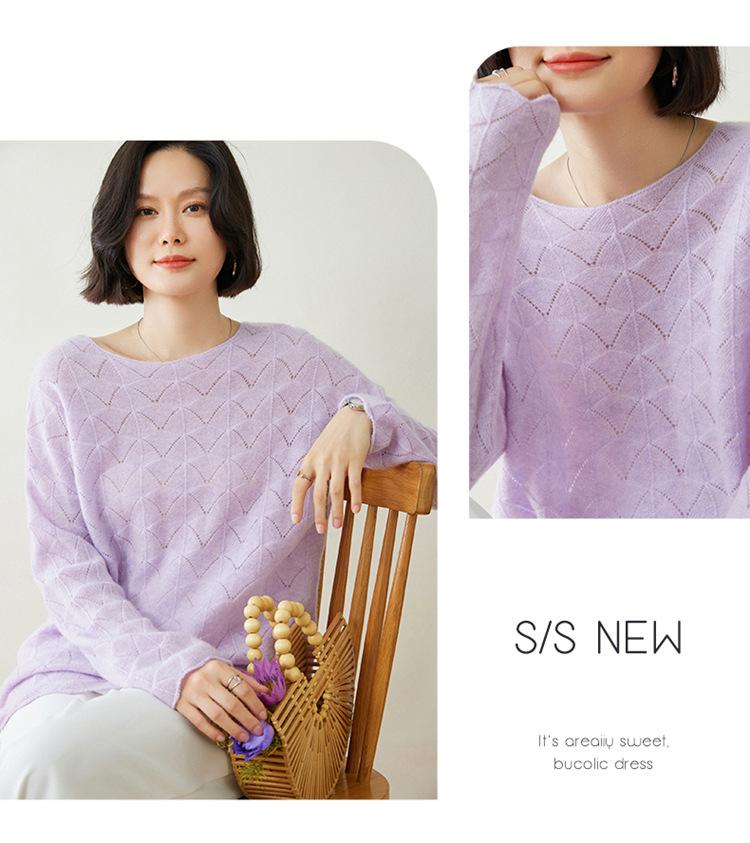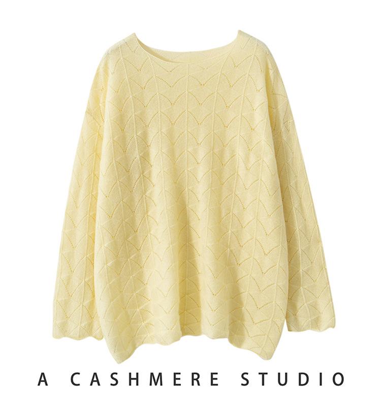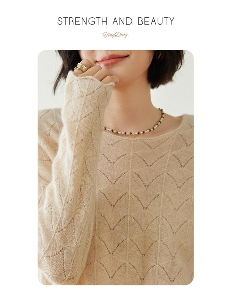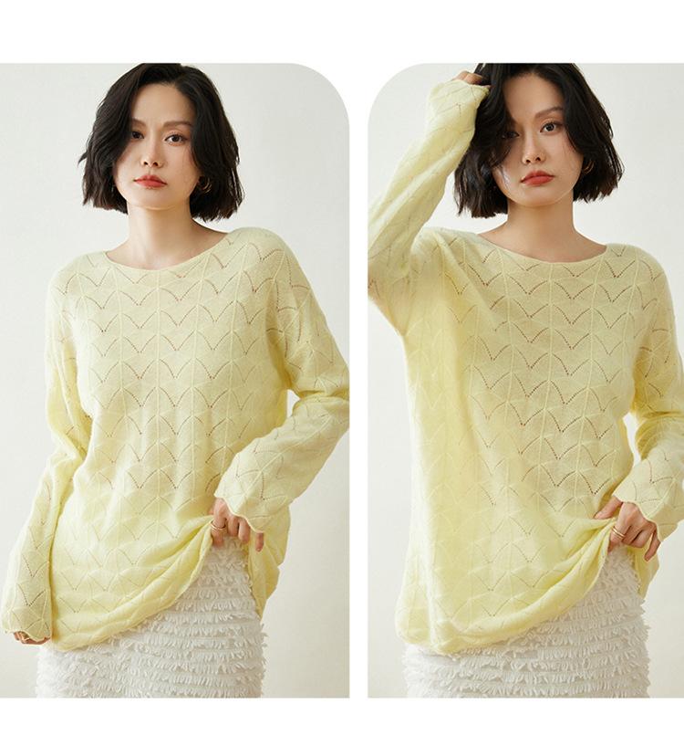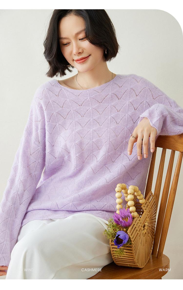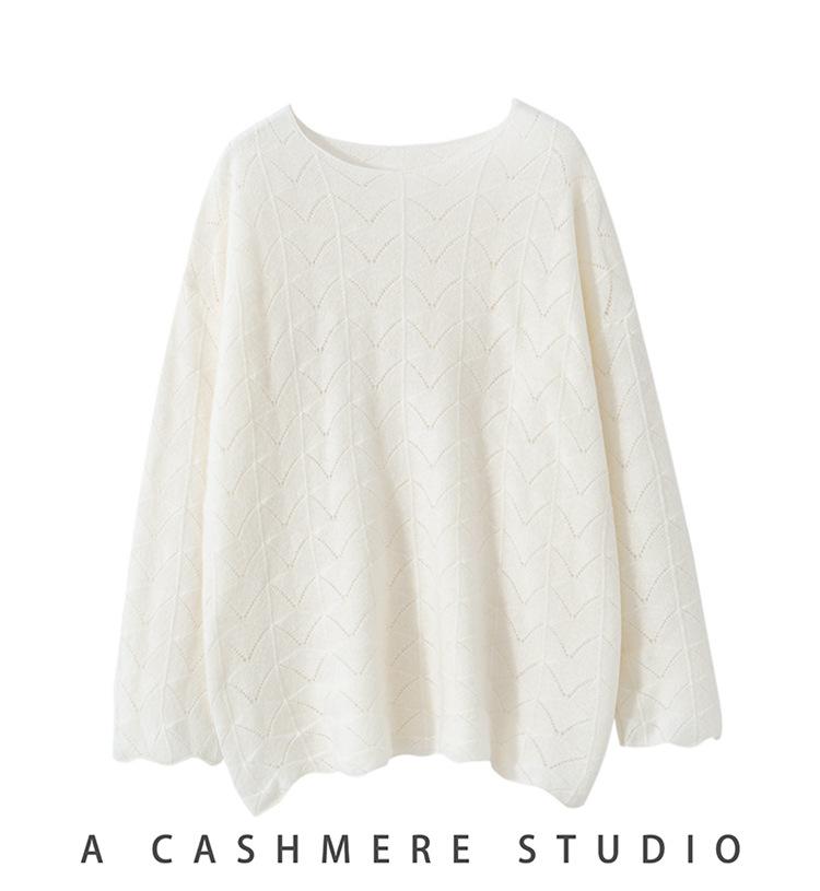 Suéter de punto de cachemira para mujer, otoño e invierno 2024, manga larga, holgado, cómodo, combinable, estilo holgado, top combinable.