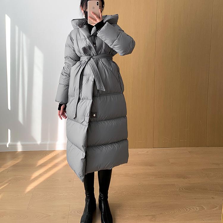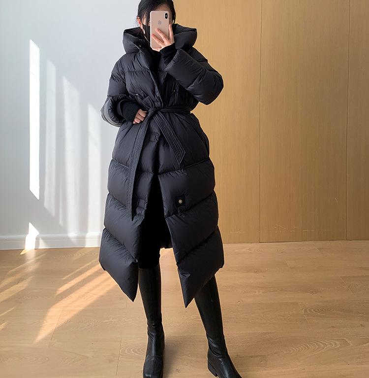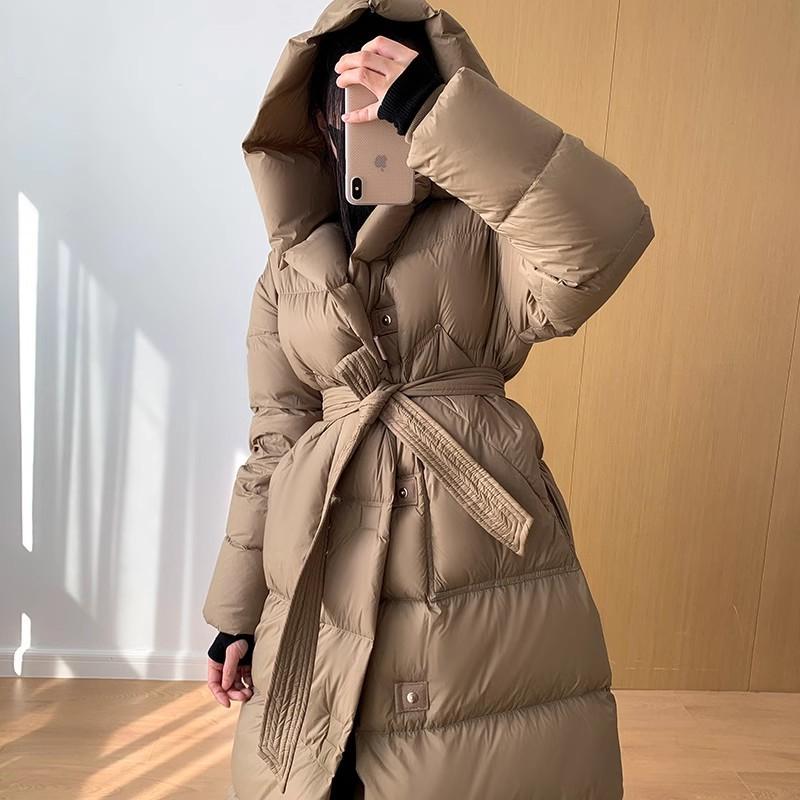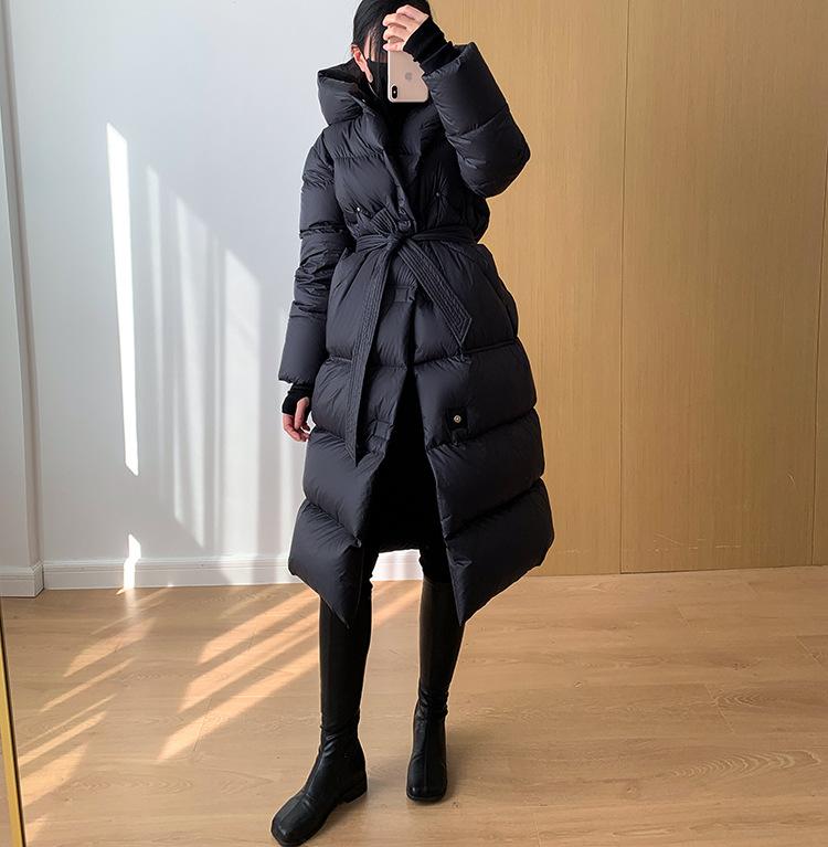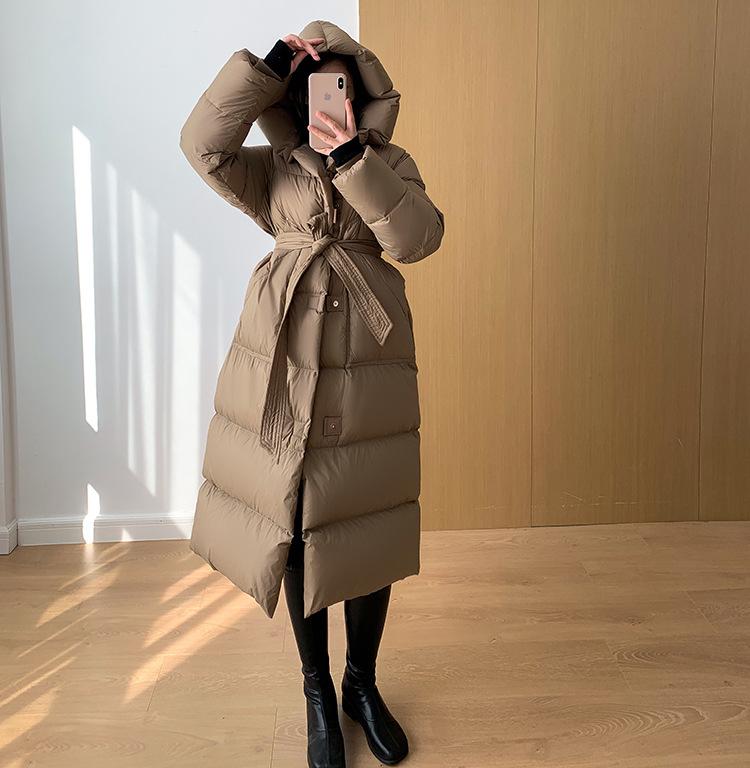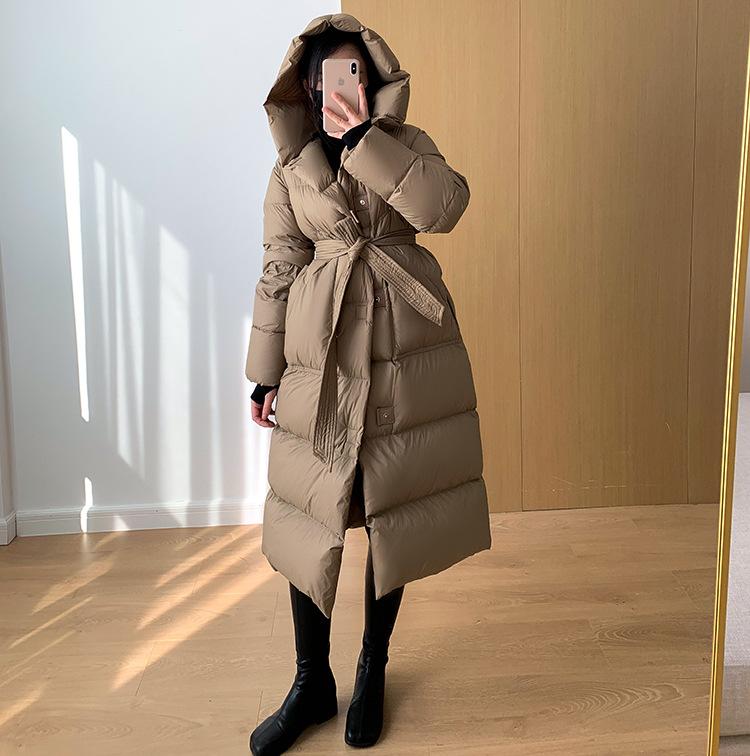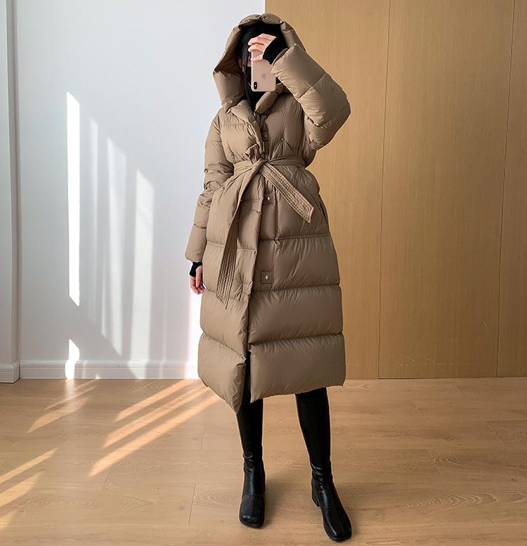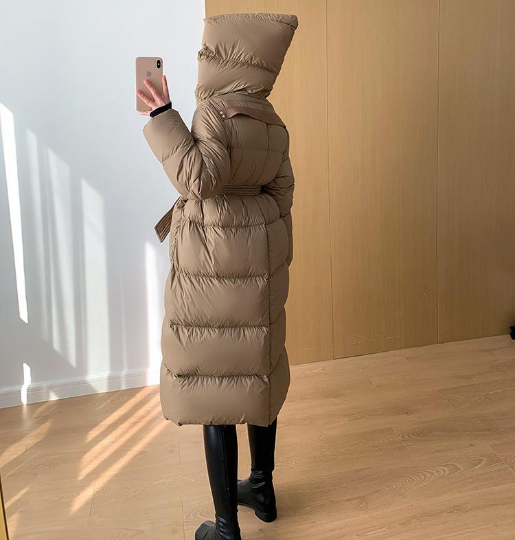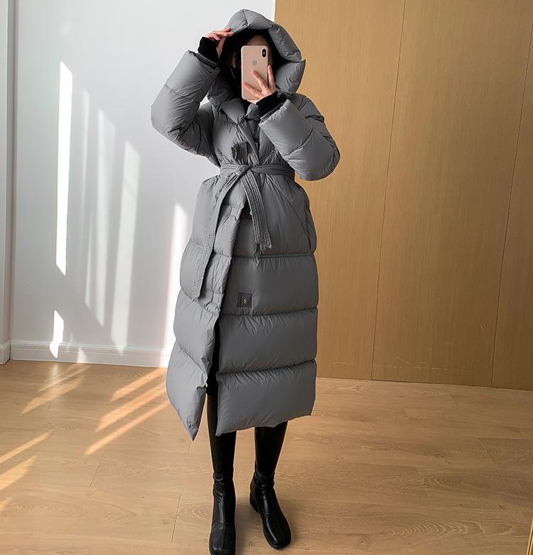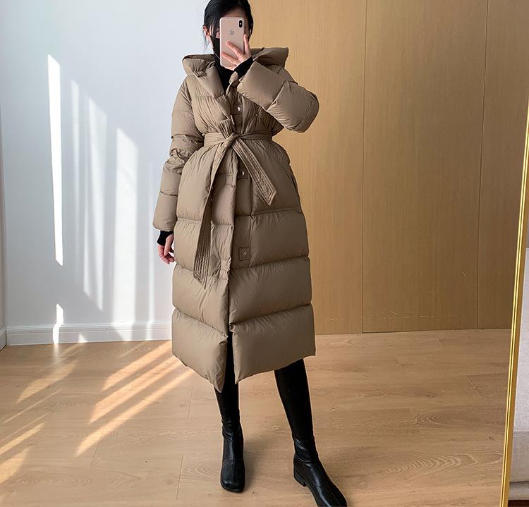 90% Plumón de Pato Blanco Chaqueta Larga de Plumón para Mujer Invierno Nuevo Grueso Elegante Cintura Adelgazante Look Hasta la Rodilla Chaqueta Cálida Estilo Caliente
