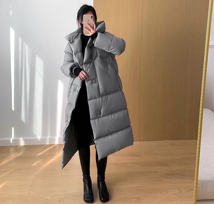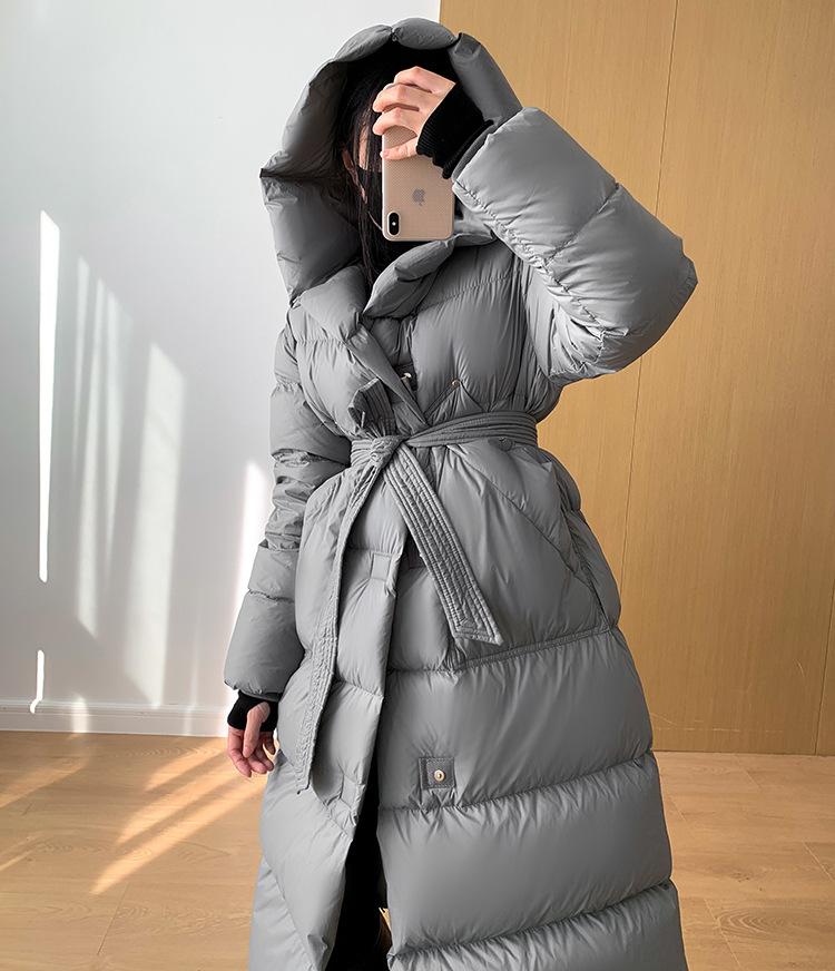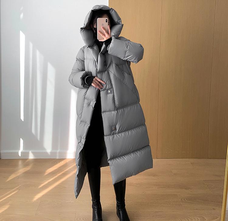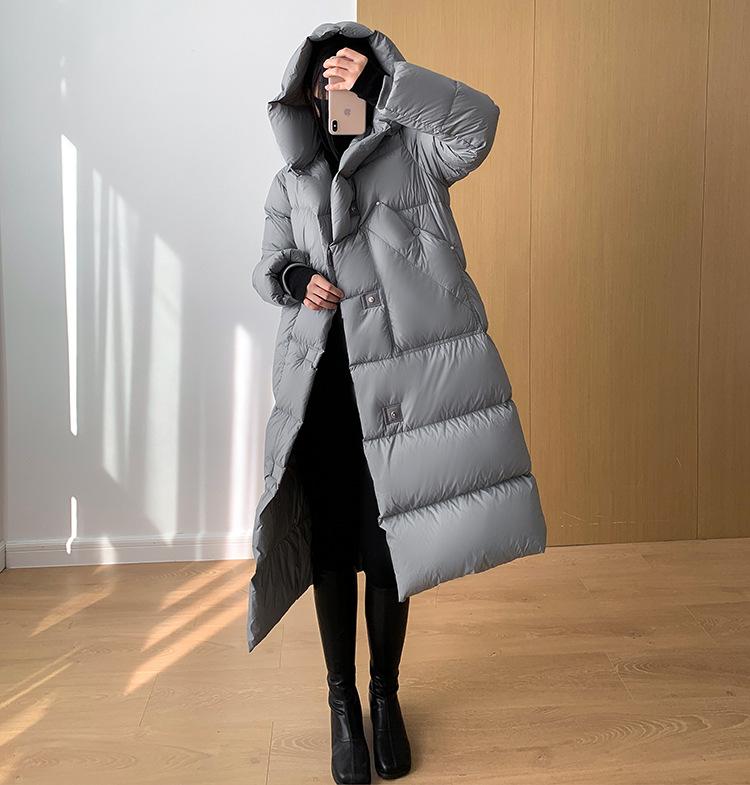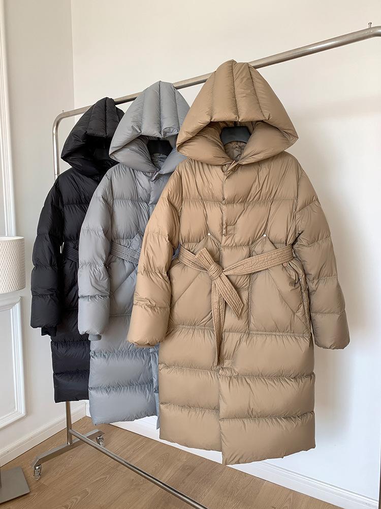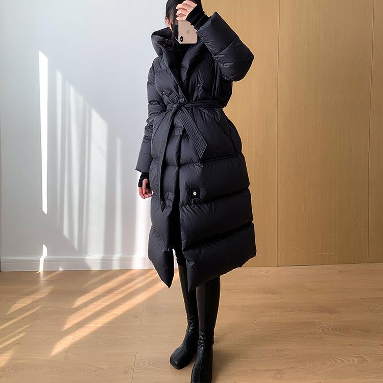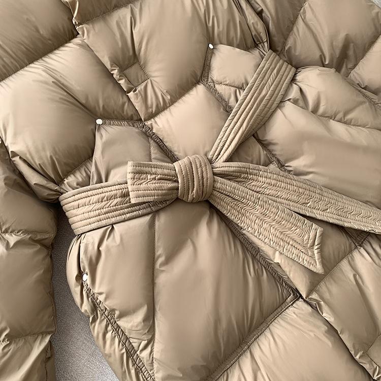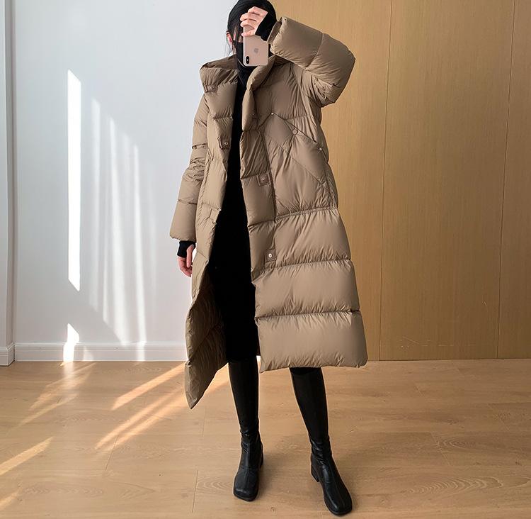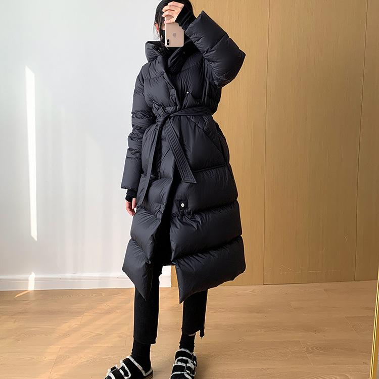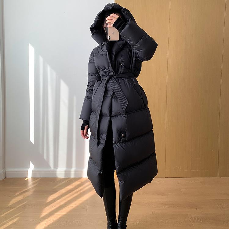 90% Plumón de Pato Blanco Chaqueta Larga de Plumón para Mujer Invierno Nuevo Grueso Elegante Cintura Adelgazante Look Hasta la Rodilla Chaqueta Cálida Estilo Caliente