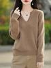 Otoño e Invierno Nueva Lana Tejido de Punto Ropa de Mujer Cuello en V Hombro Caído Suéter Pulóver de Manga Larga Holgado Perezoso Camisa Base de Lana Pura
