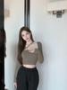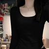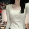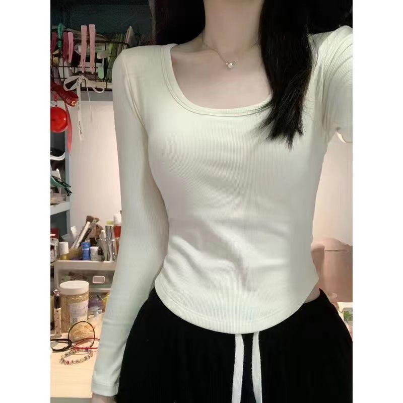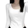 Camiseta básica de manga larga de color puro con cuello cuadrado Maillard para mujer 2025 Nuevo Slim Sexy Hombro derecho Cuello U Top Es Trendy