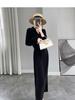 Vestido camisero de cintura alta con cordones, holgado y adelgazante, estilo coreano, elegante, negro, largo, para verano y otoño de 2024