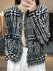 Cárdigan de lana de punto estilo Chanel para mujer, suéter holgado con borlas y cuello redondo, chaqueta de pata de gallo, otoño e invierno, nuevo