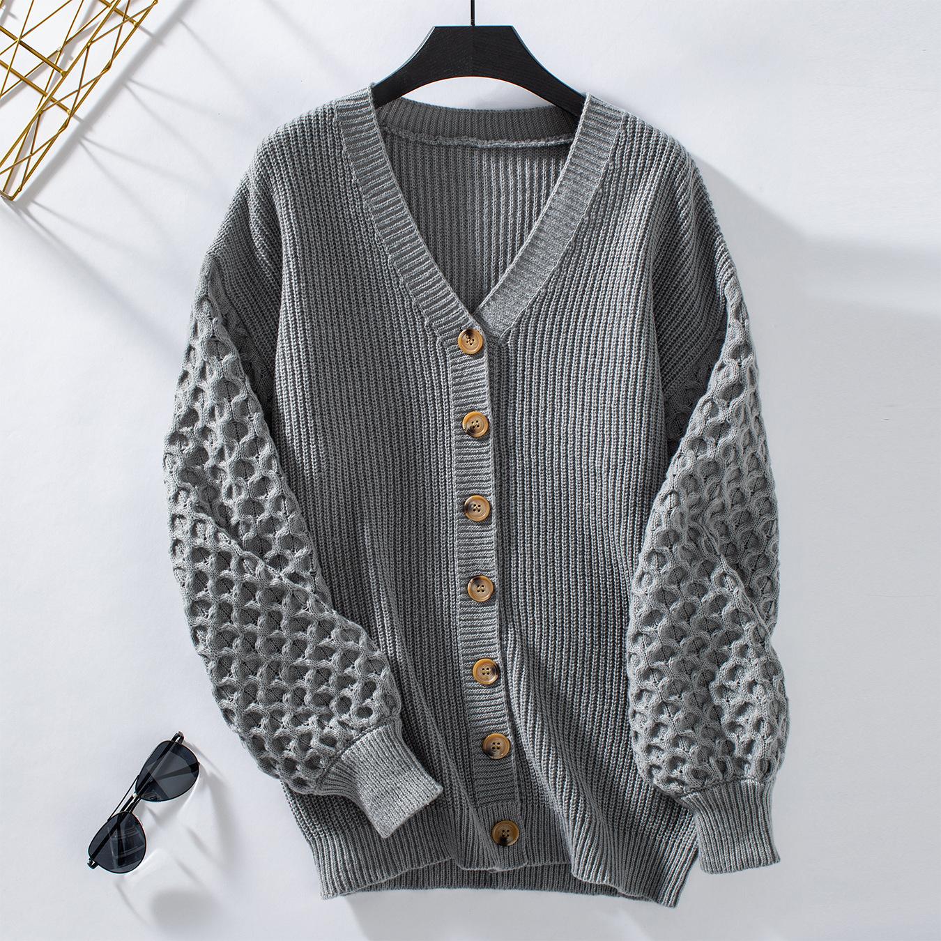 Cárdigan de punto nuevo de otoño e invierno de comercio exterior transfronterizo para mujer, abrigo de suéter europeo y americano de manga larga holgado retro de otoño e invierno