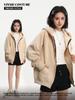 Abrigo con capucha y cremallera en los hombros de terciopelo de zorro plateado de 600 g de peso pesado para otoño/invierno, chaleco tipo cárdigan informal holgado de marca de moda estadounidense para mujer