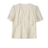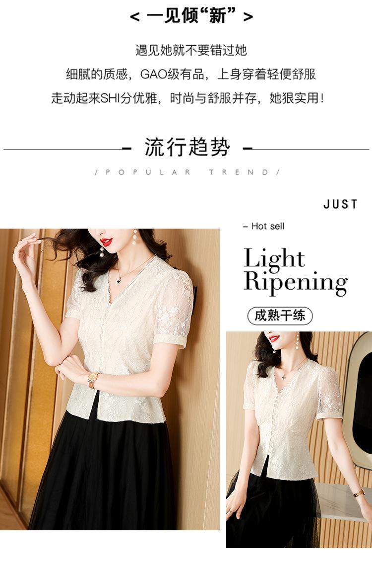 Camisa elegante pequeña de estilo suave con encaje bordado, nueva blusa blanca elegante de moda de verano 2024 para dama con cuello en V