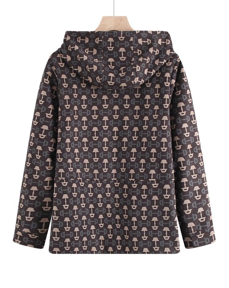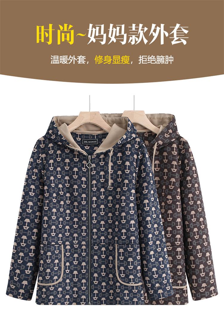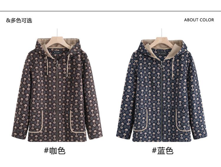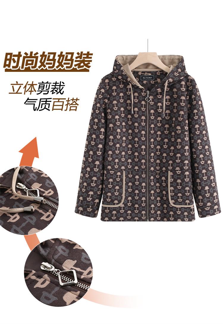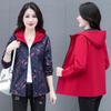 Cárdigan de punto con cremallera y capucha floral para mujer de mediana edad y anciana, moda madre, otoño, holgado, casual, chaqueta, abrigo