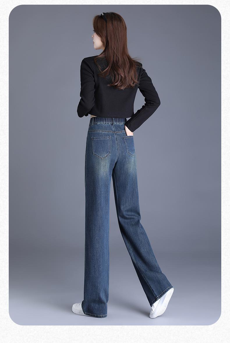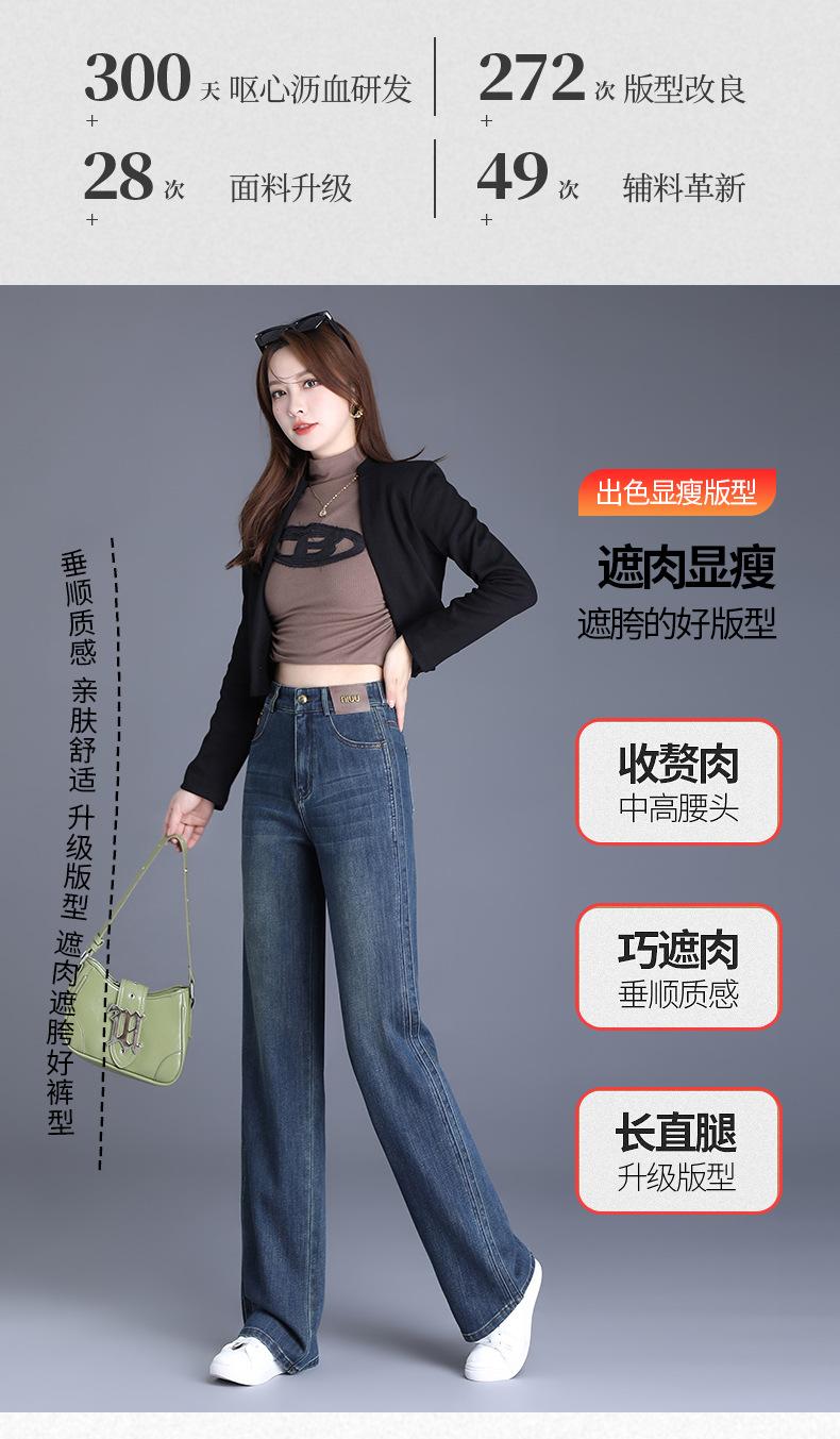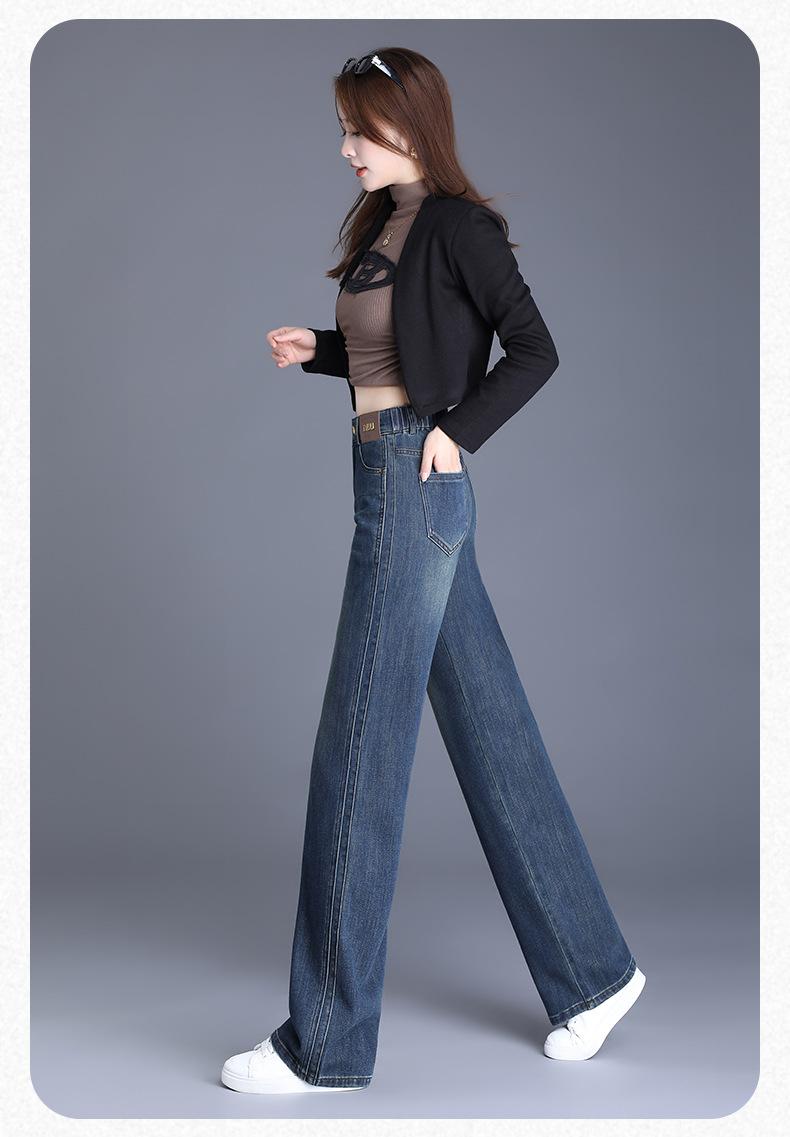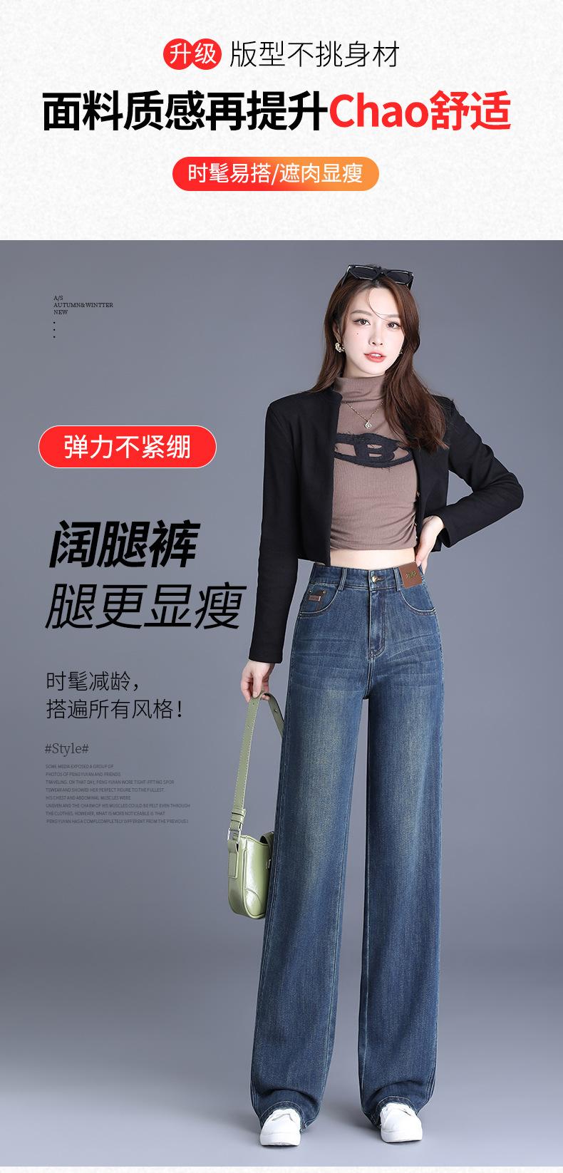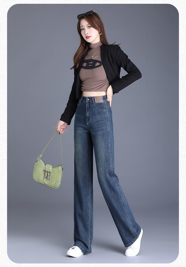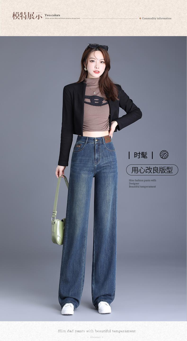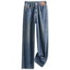 Pantalones vaqueros de pierna ancha, sencillos y casuales, de moda para mujer, primavera 2024, nuevo estilo, pantalones rectos de estilo coreano con temperamento cruzado.
