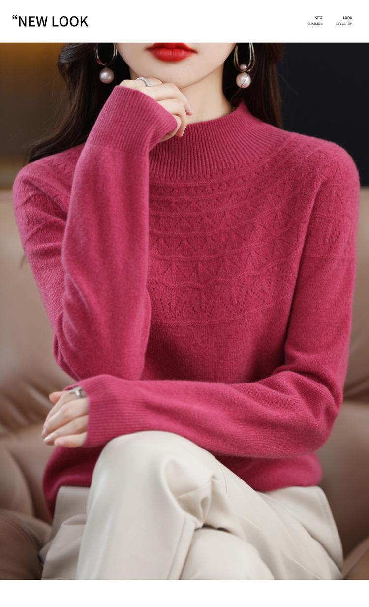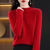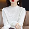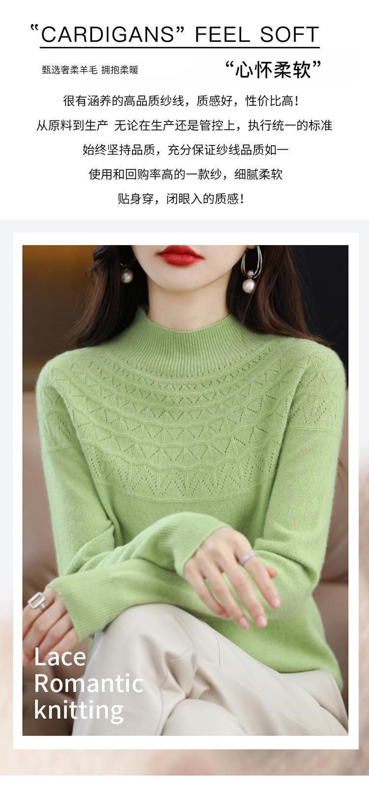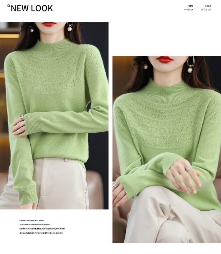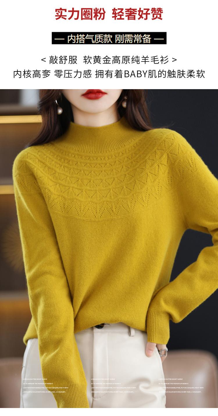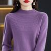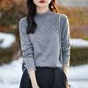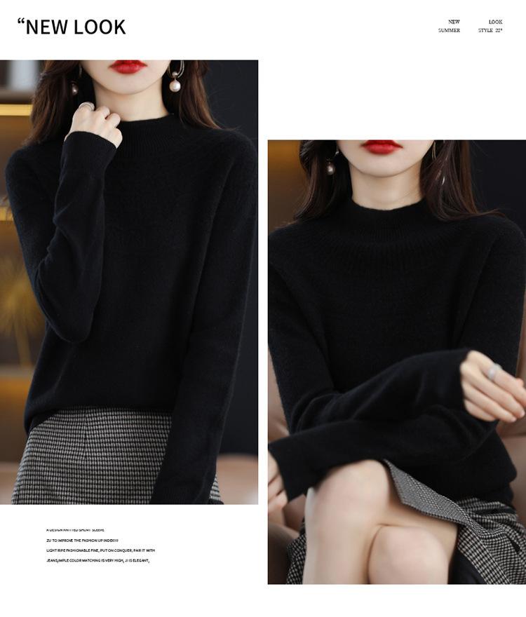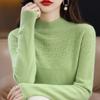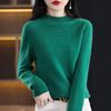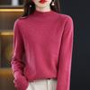 Nuevo jersey elegante de lana de otoño 2024, suéter holgado de cuello medio alto para mujer