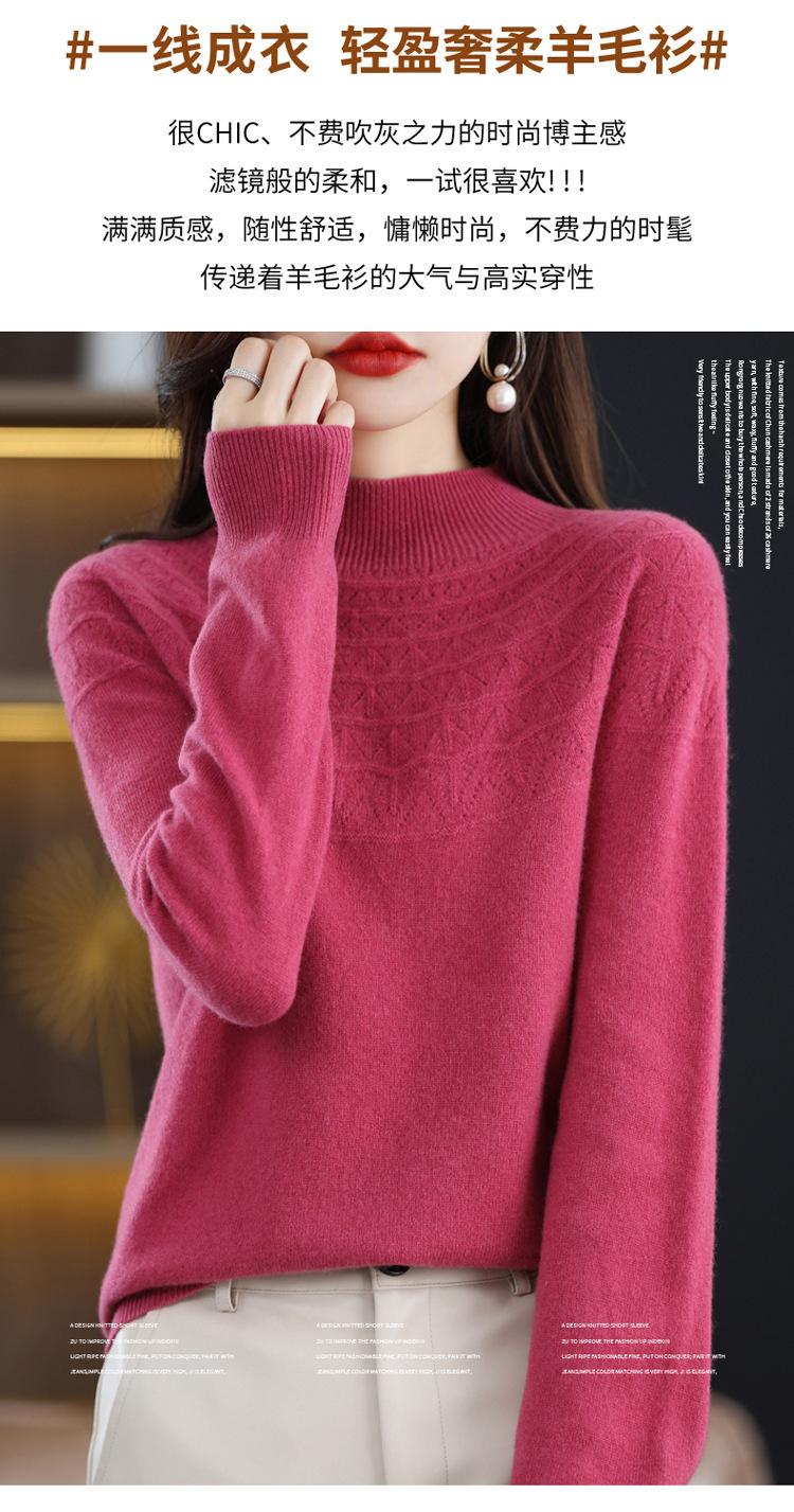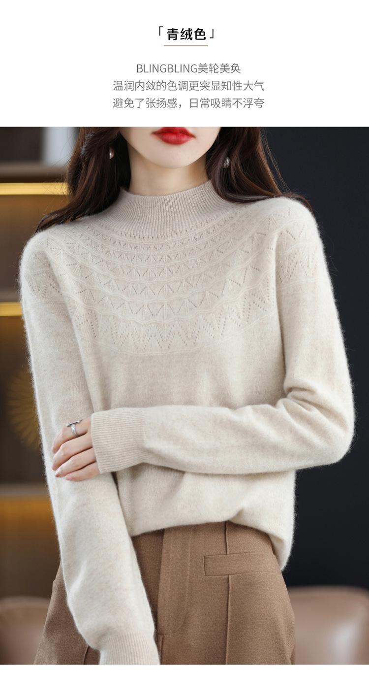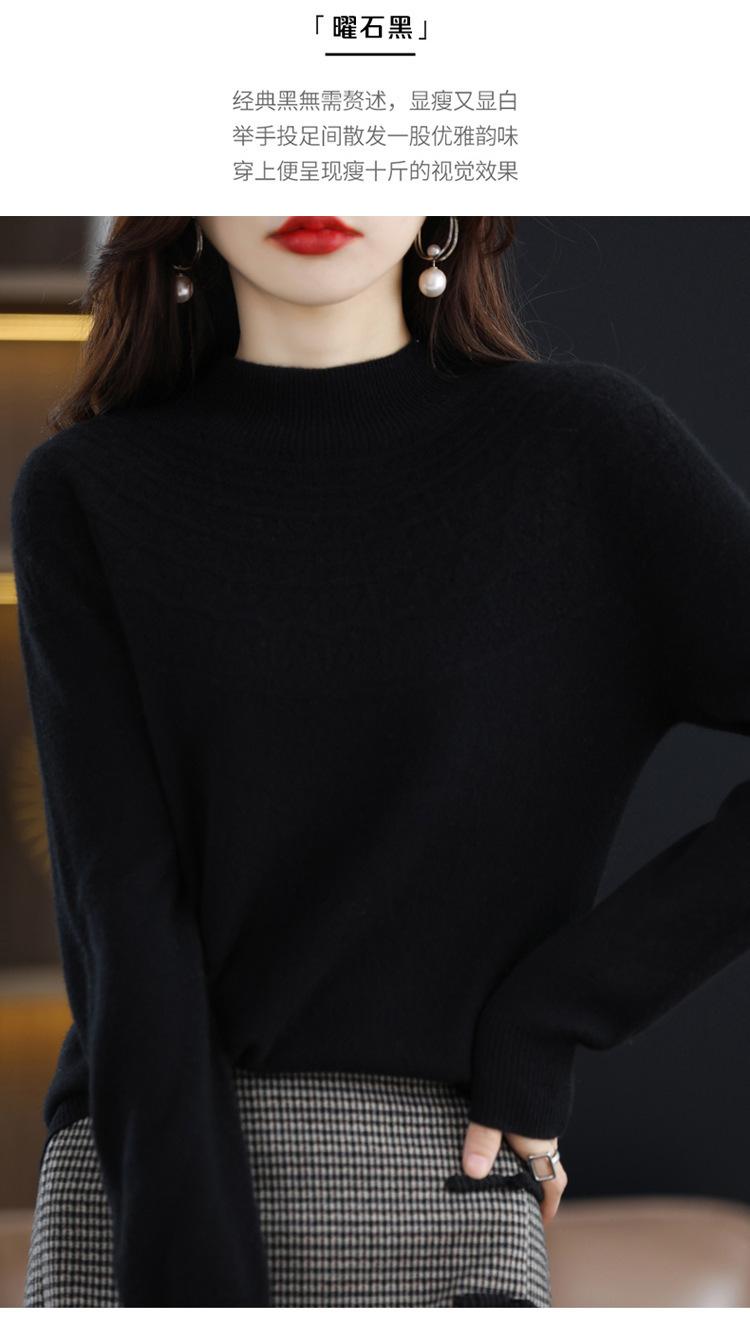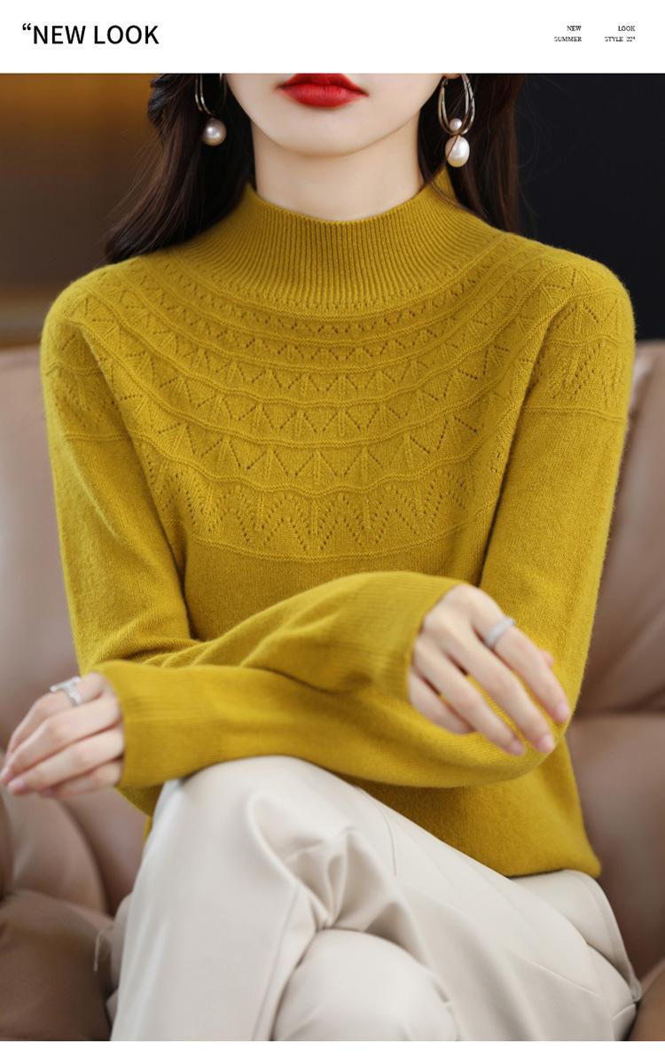 Nuevo jersey elegante de lana de otoño 2024, suéter holgado de cuello medio alto para mujer