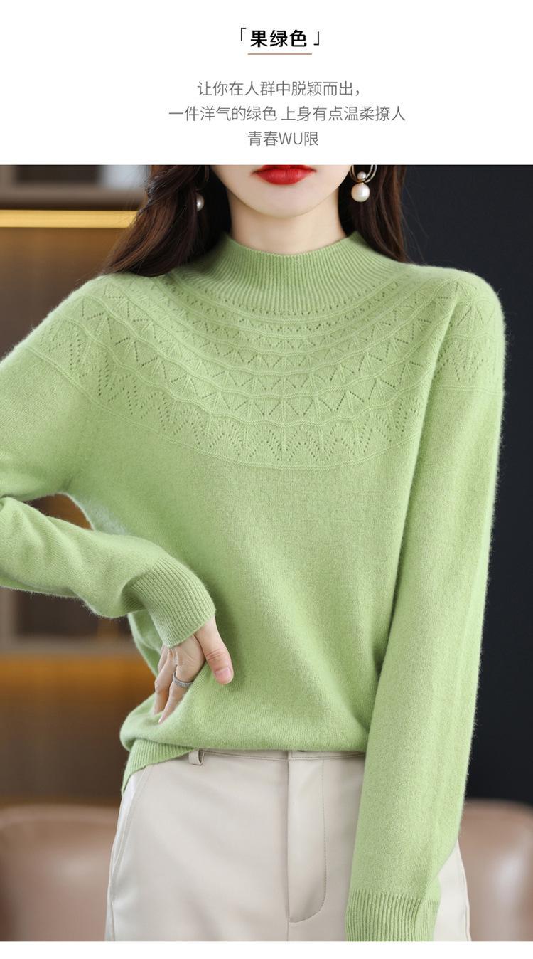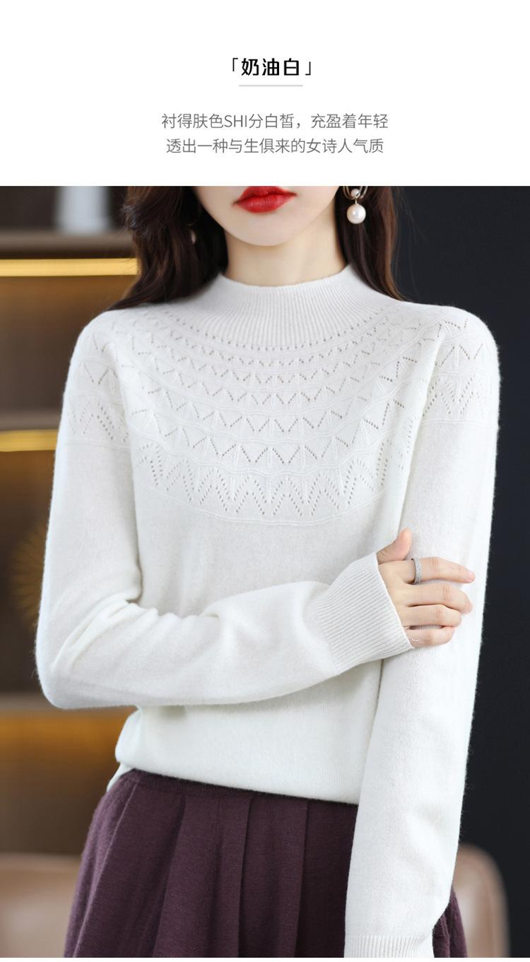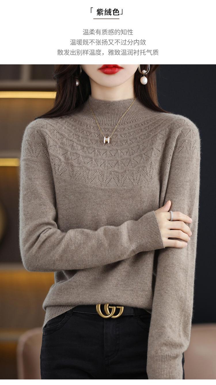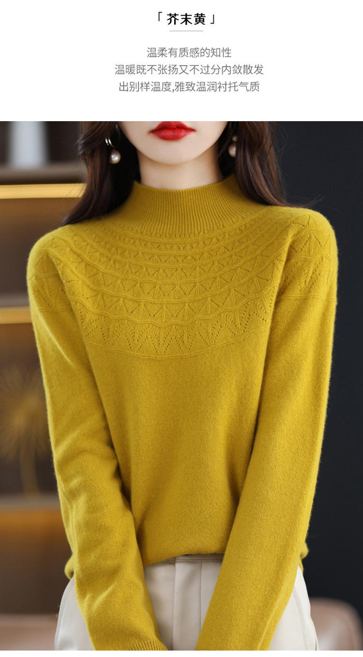 Nuevo jersey elegante de lana de otoño 2024, suéter holgado de cuello medio alto para mujer