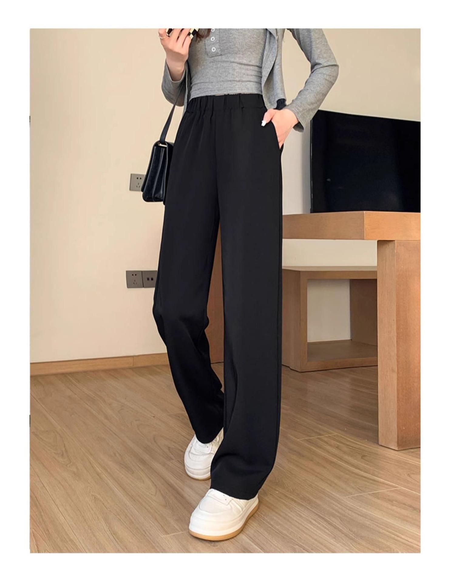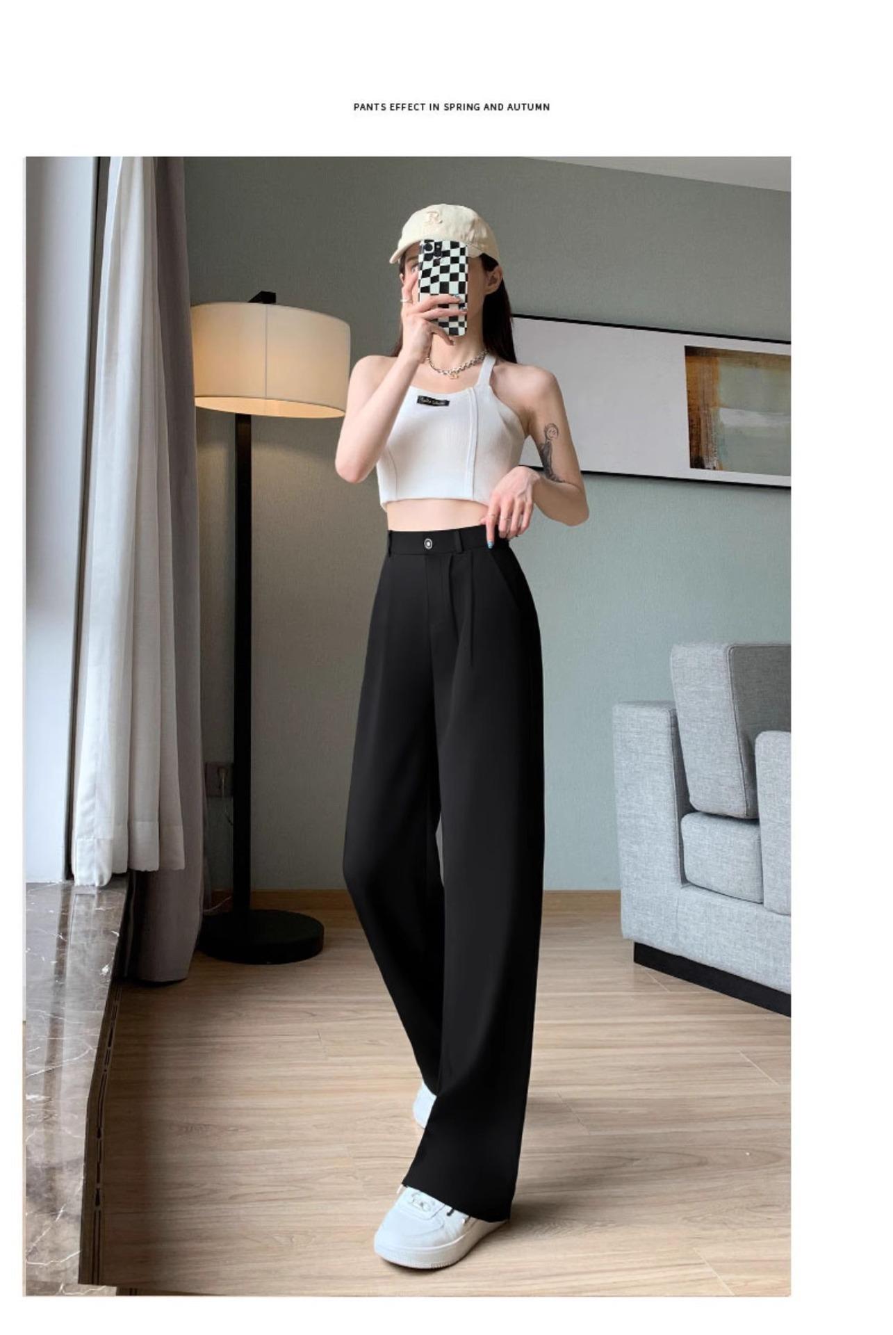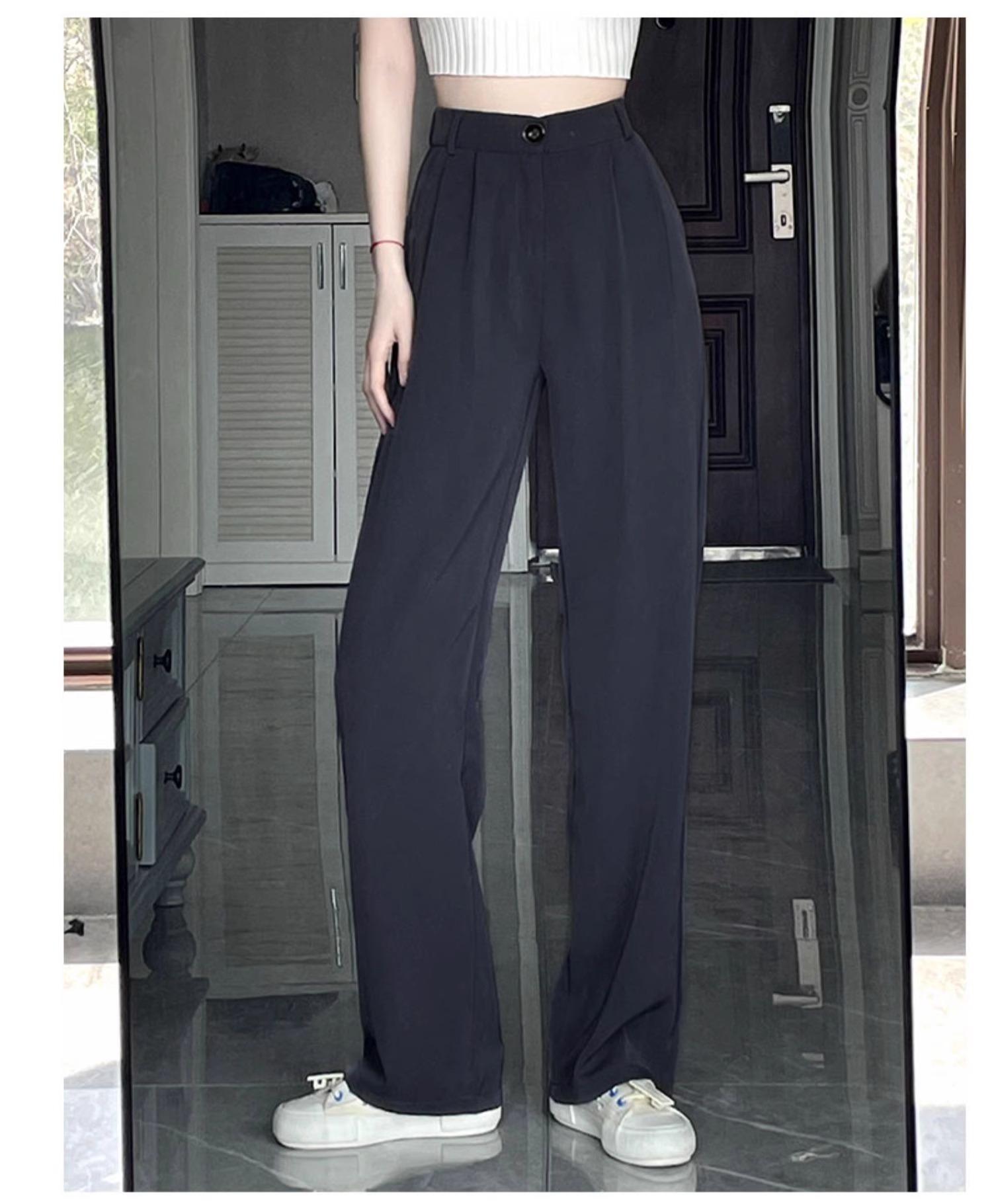 Pantalones de Pierna Ancha de Seda Helada para Mujer, Pantalones de Vestir Delgados de Verano con Caída Rectos Estrechos 2024 Petite Casual