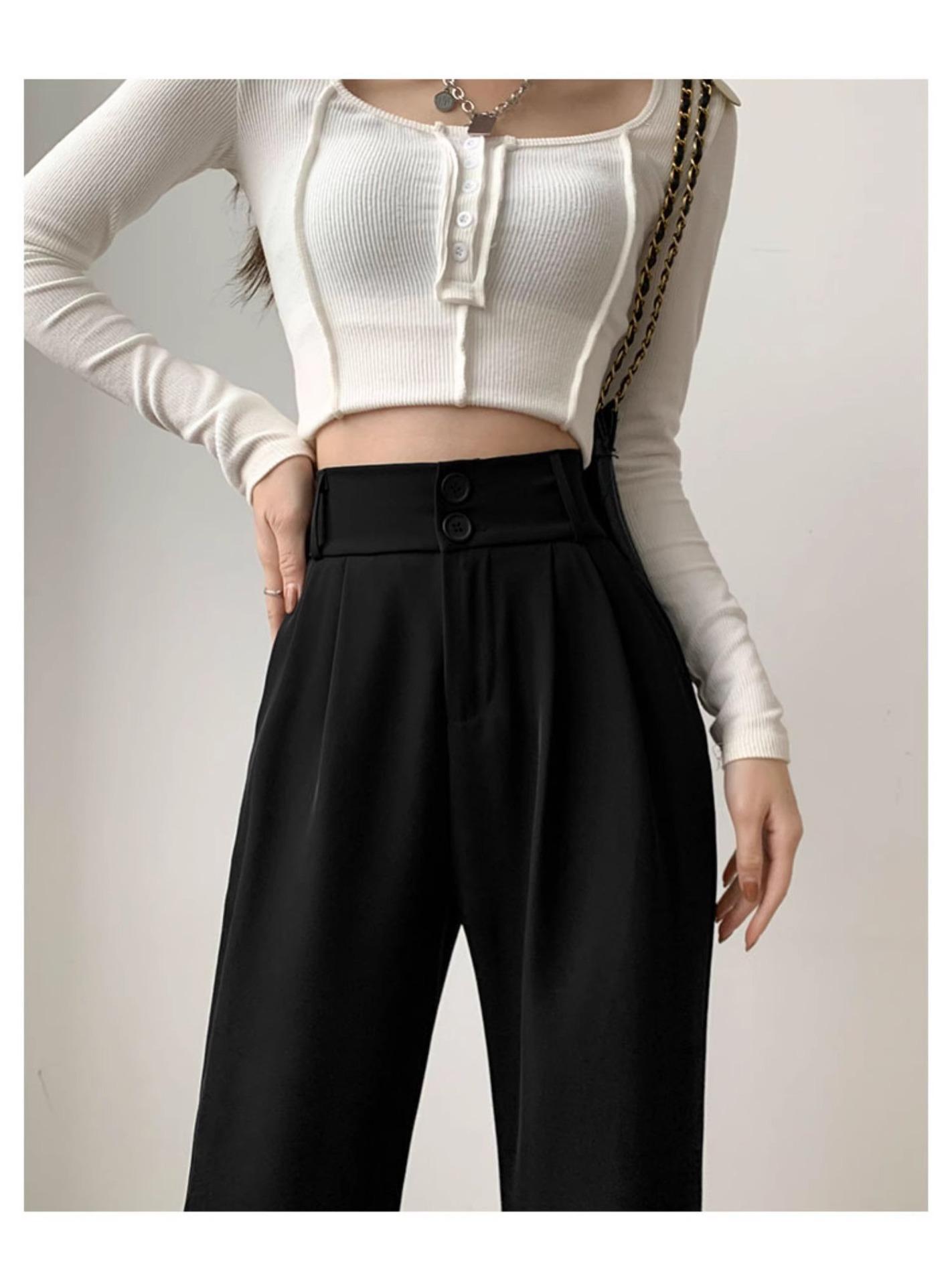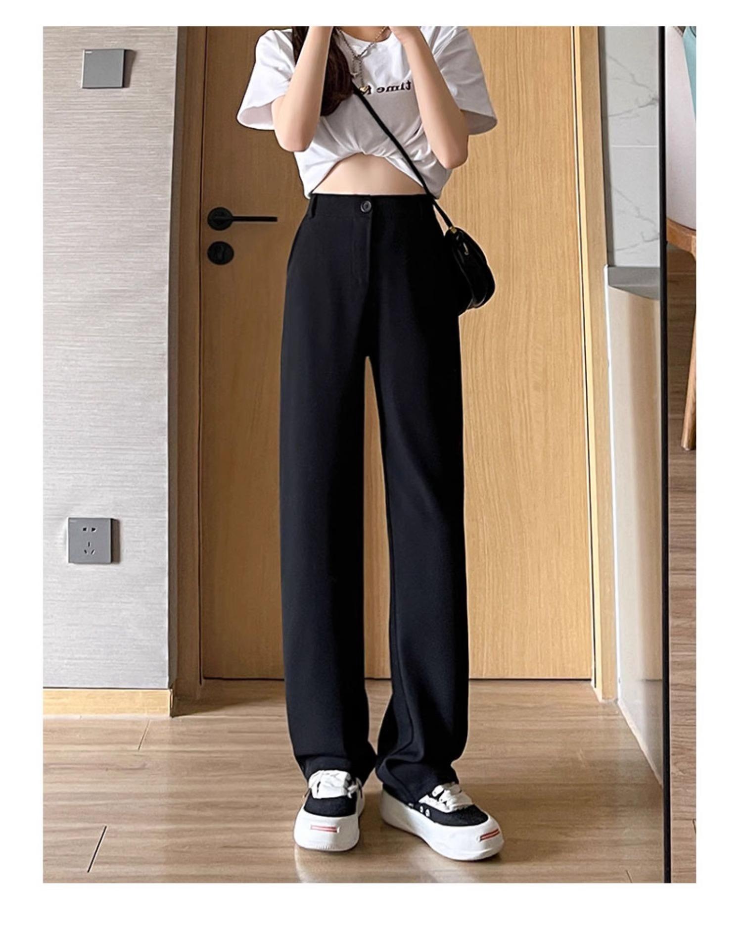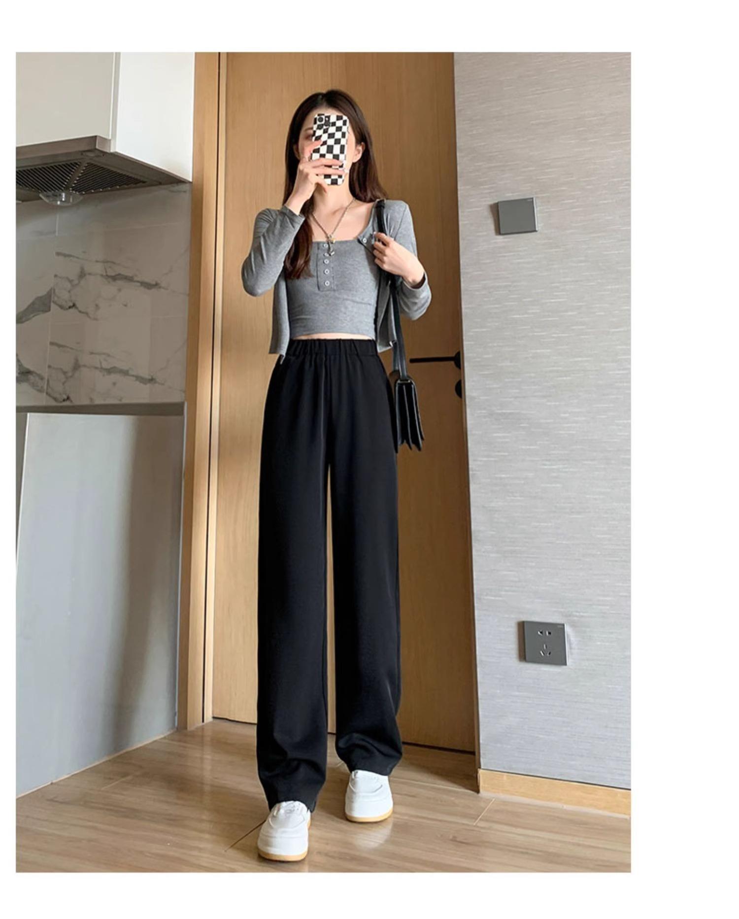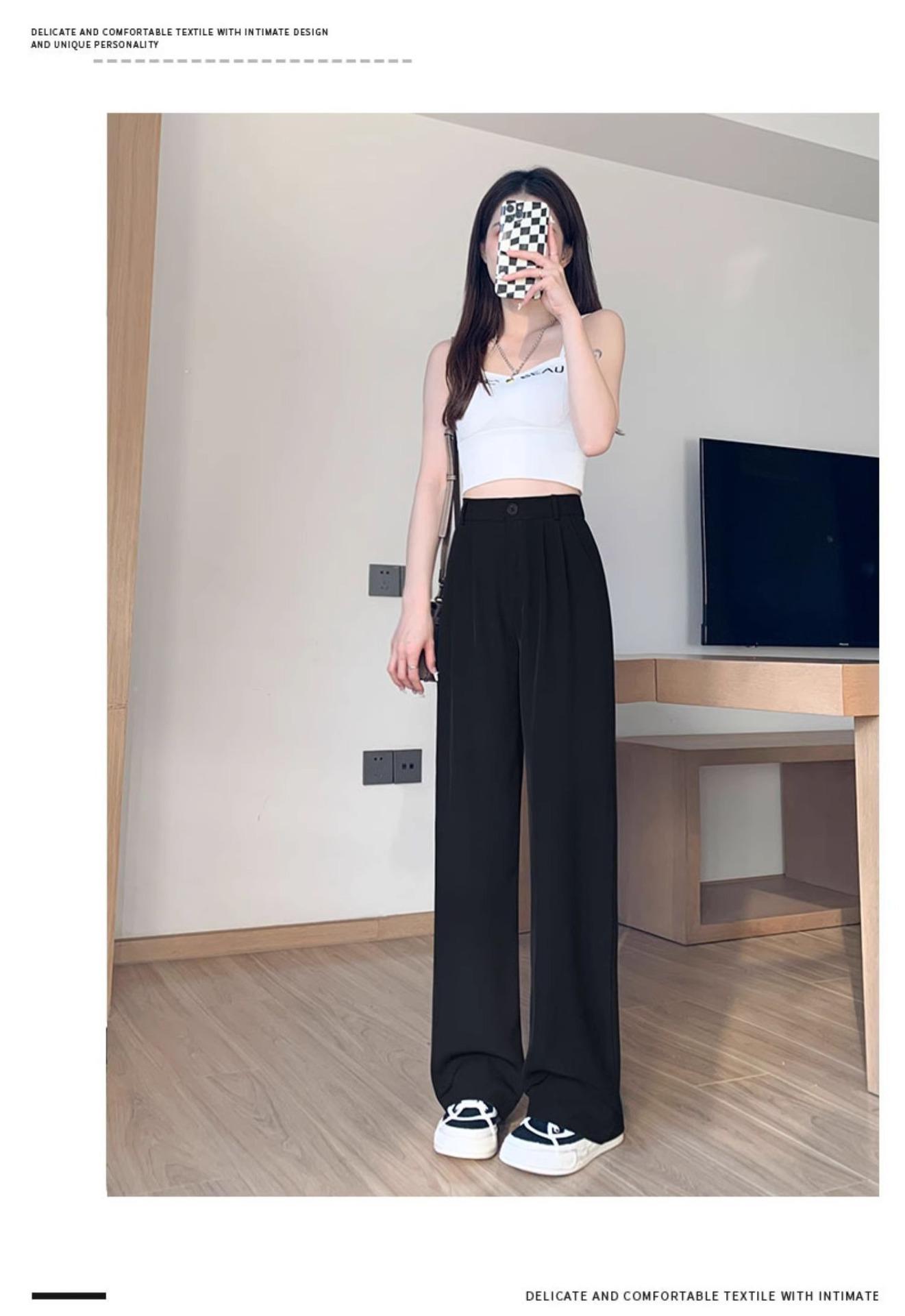 Pantalones de Pierna Ancha de Seda Helada para Mujer, Pantalones de Vestir Delgados de Verano con Caída Rectos Estrechos 2024 Petite Casual