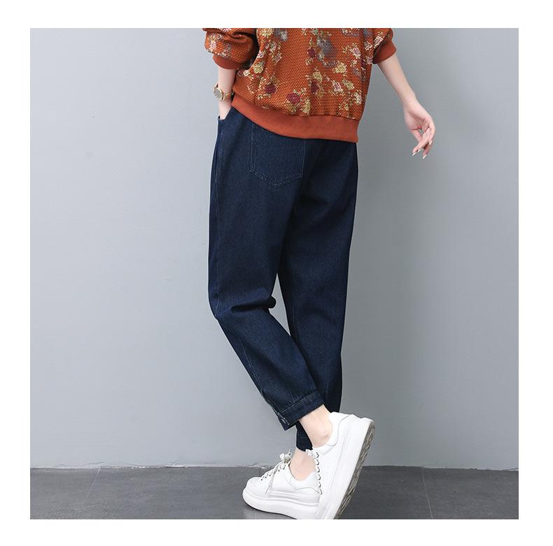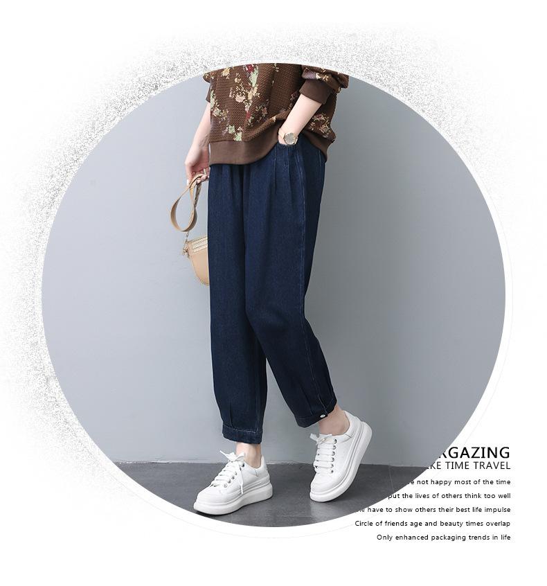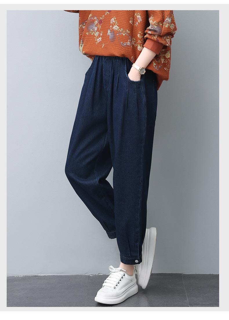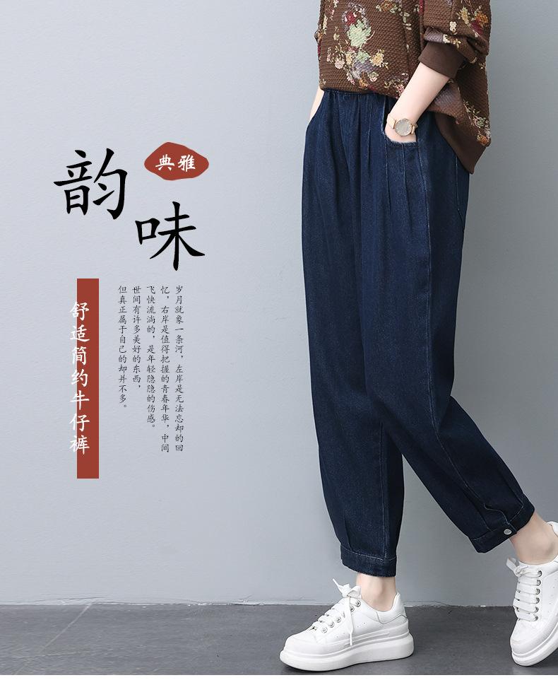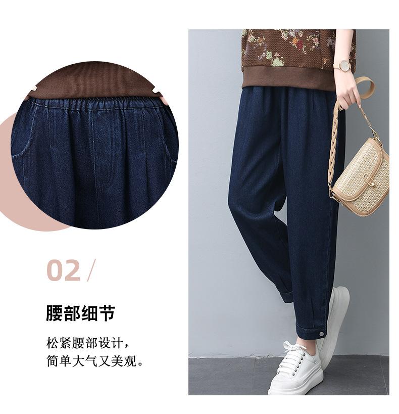 Pantalones vaqueros casuales de moda de primavera y otoño para madres 2024, nuevos pantalones finos de talla grande para mujeres de mediana edad con cintura suelta.