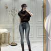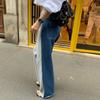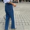Corea del Sur Dongdaemun Novedad para Mujer Pierna Larga Costuras Denim Elástico Cintura Pantalones Casuales